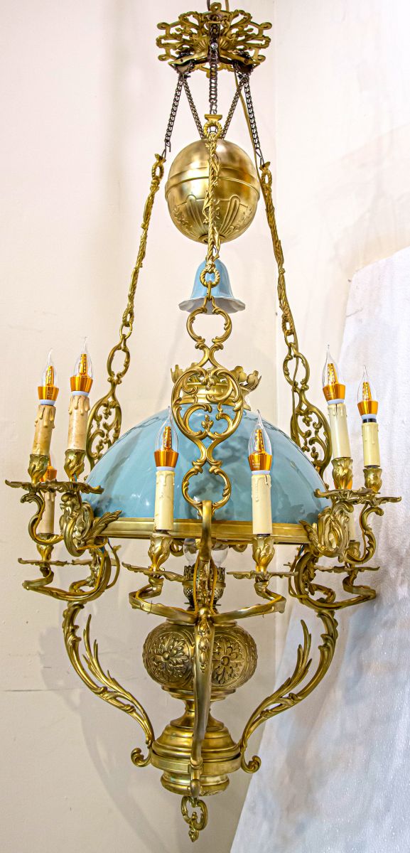 Nhắc đến những kiệt tác nghệ thuật chiếu sáng từ những thời xa xưa, đèn ba dây cổ xịnh chính là biểu tượng về sự sang trọng, quý phái. Trong số những chiếc đèn cổ hiếm hoi còn tồn tại đến ngày nay, chiếc đèn ba dây có chóa đồng đường kính 45 cm, cao 150 cm, xuất xứ Pháp, là một tác phẩm hiếm gặp, mang giá trị sưu tầm đặc biệt.