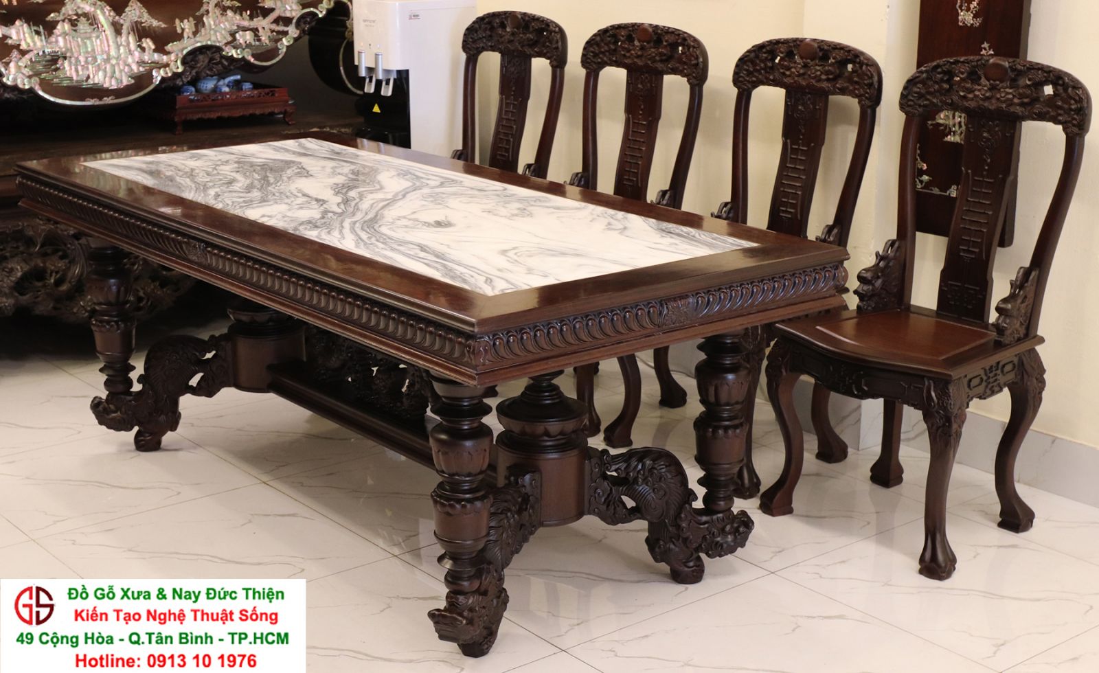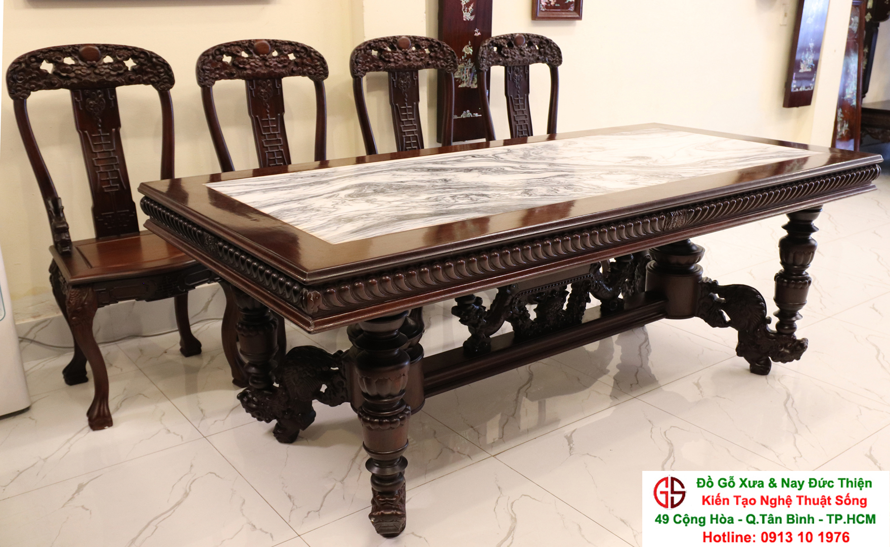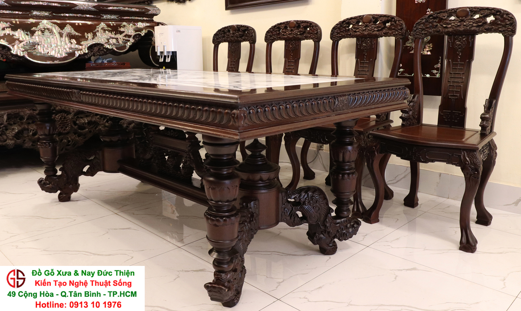 Bộ Bàn Ăn Gỗ Cẩm Nu Quý Hiếm - Phong Cách Pháp Sang Trọng