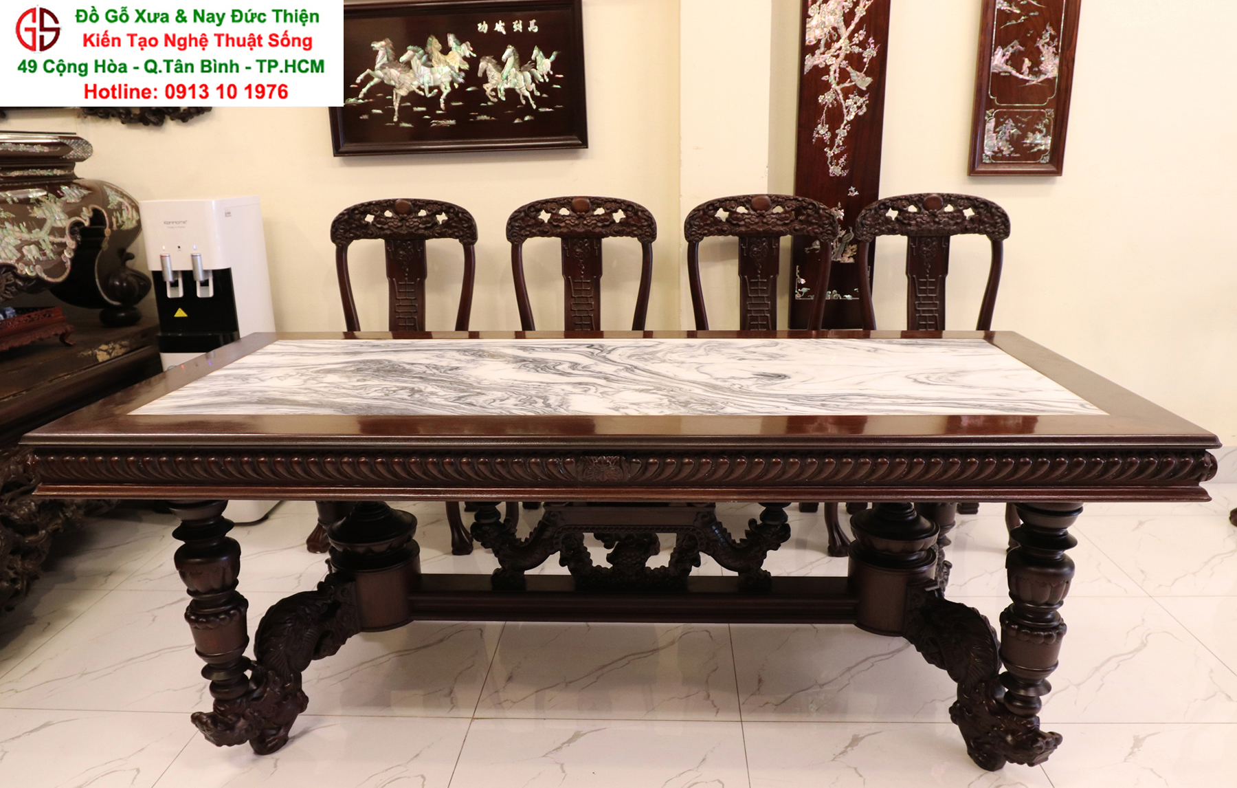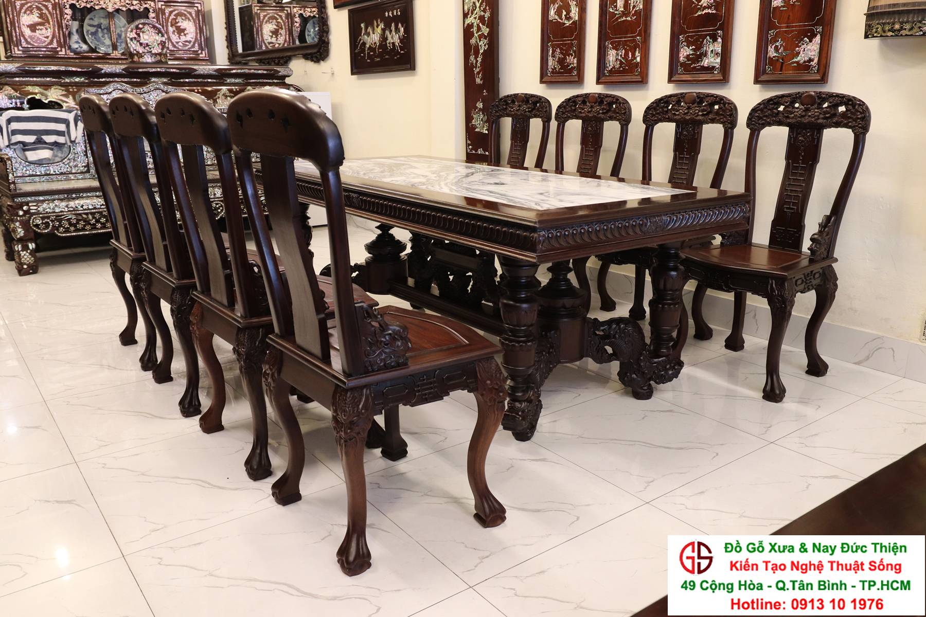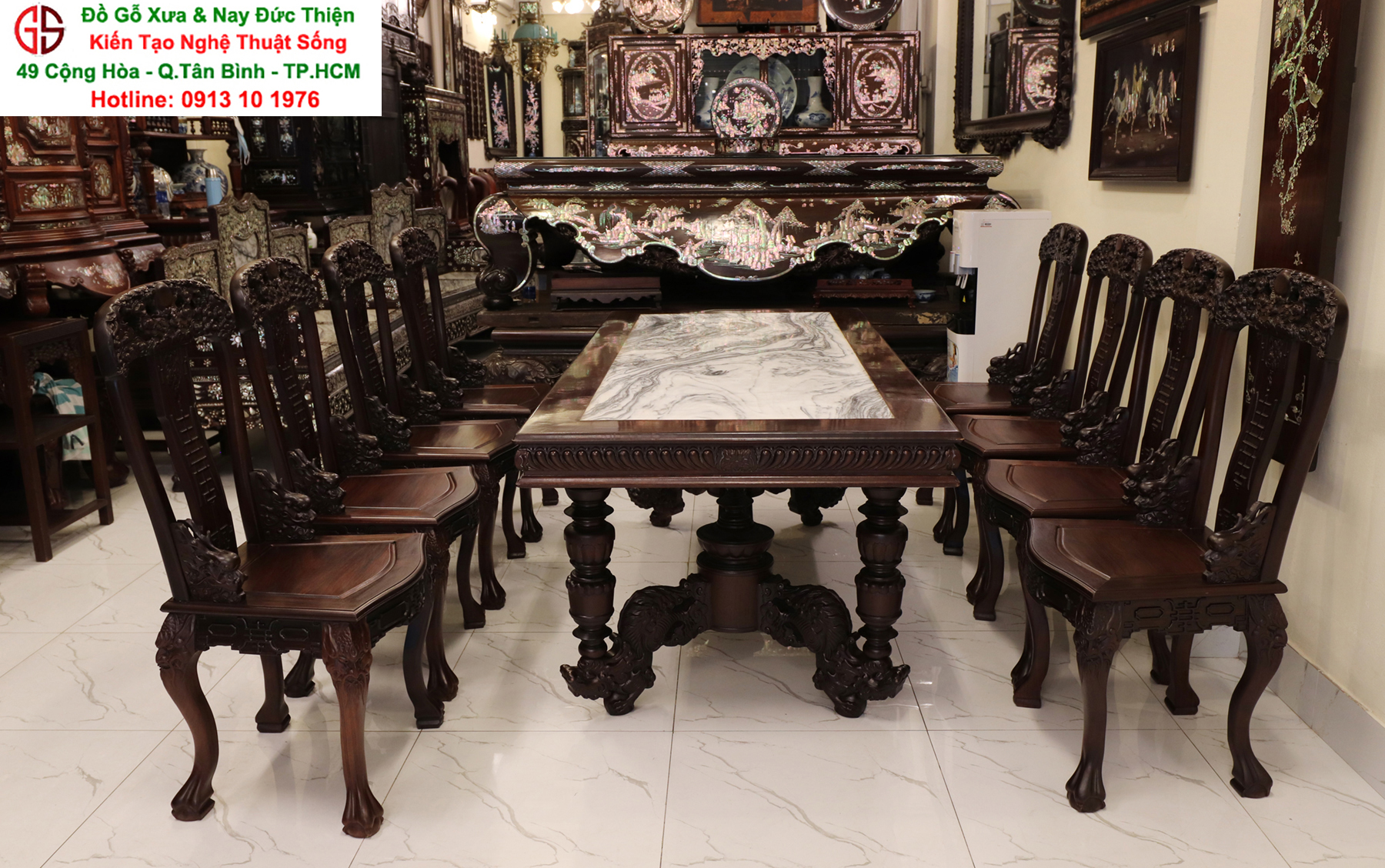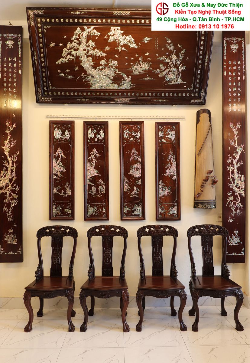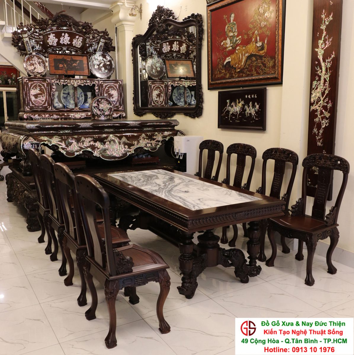 - Bàn ghế Louis, đôn trống gỗ trắc, bộ bàn ăn cẩn ốc, bàn ghế phương kỷ, bàn trung đường cẩn ốc xà cừ