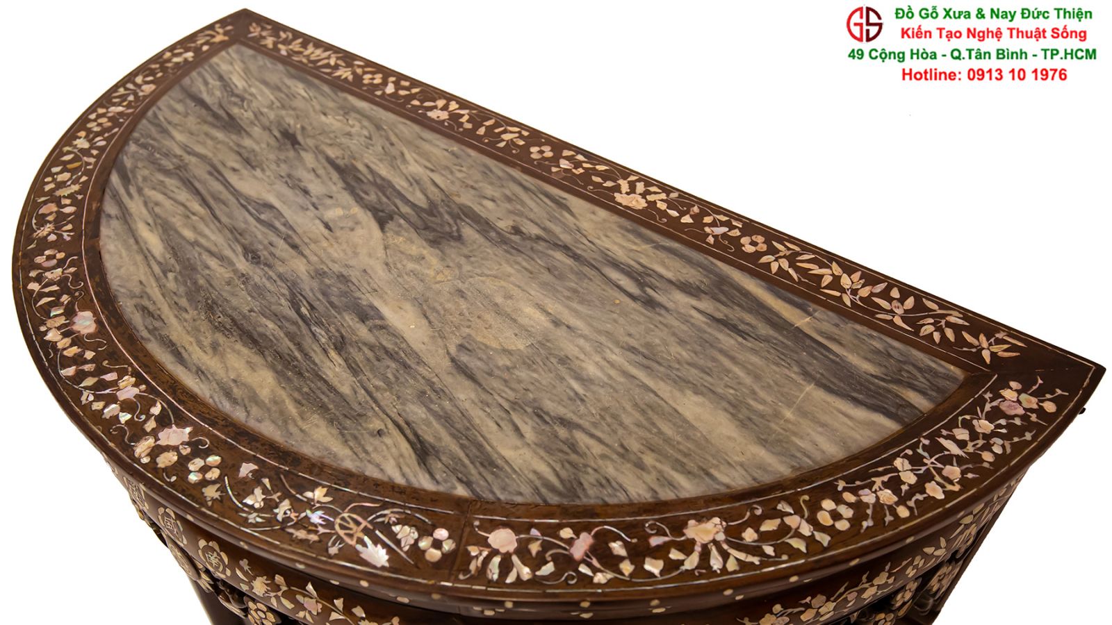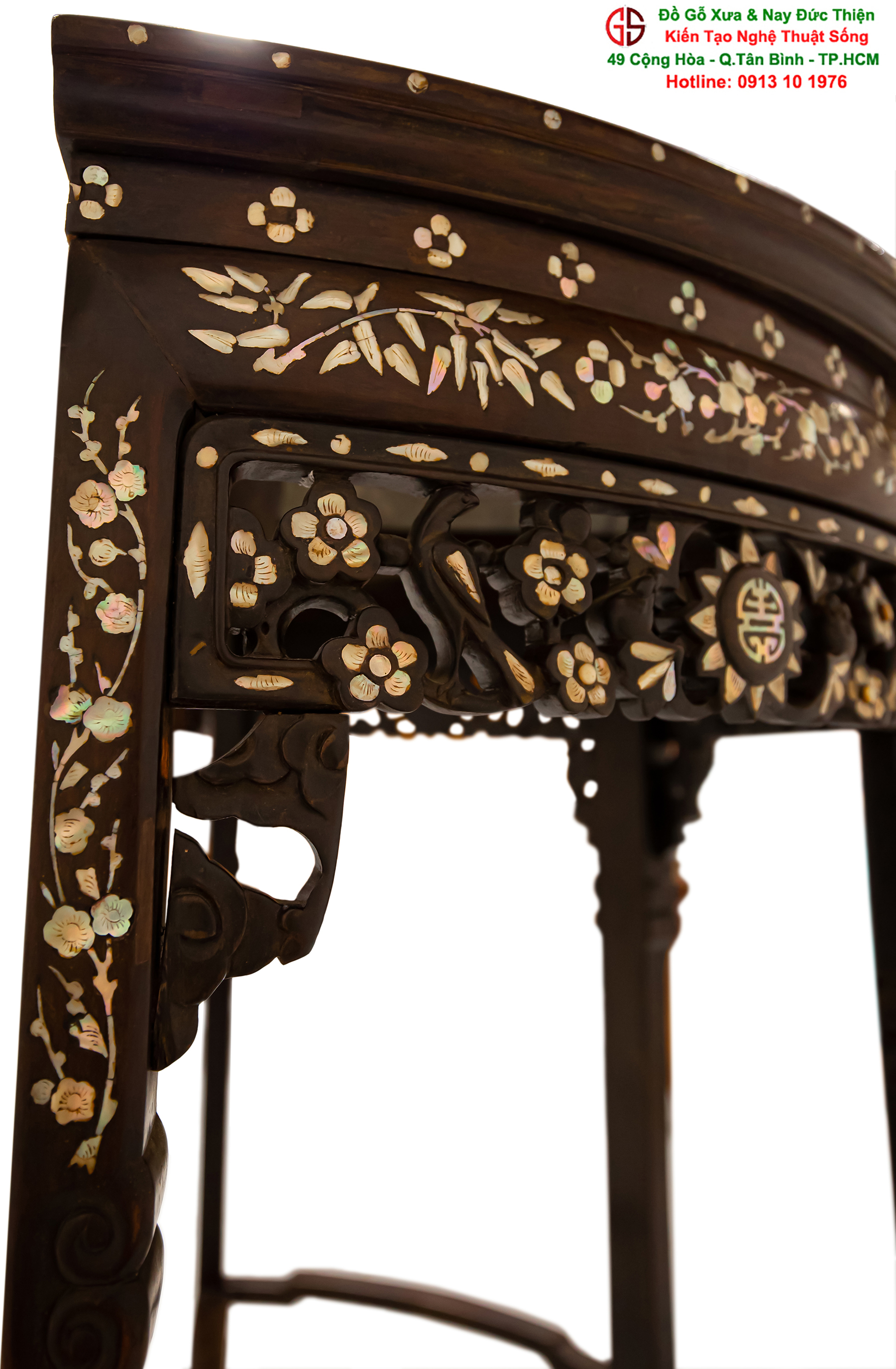 Nơi mua bán bàn bán nguyệt khảm ốc đẹp Bàn bán nguyêt khảm ốc đẹp tại quận Tân Bình