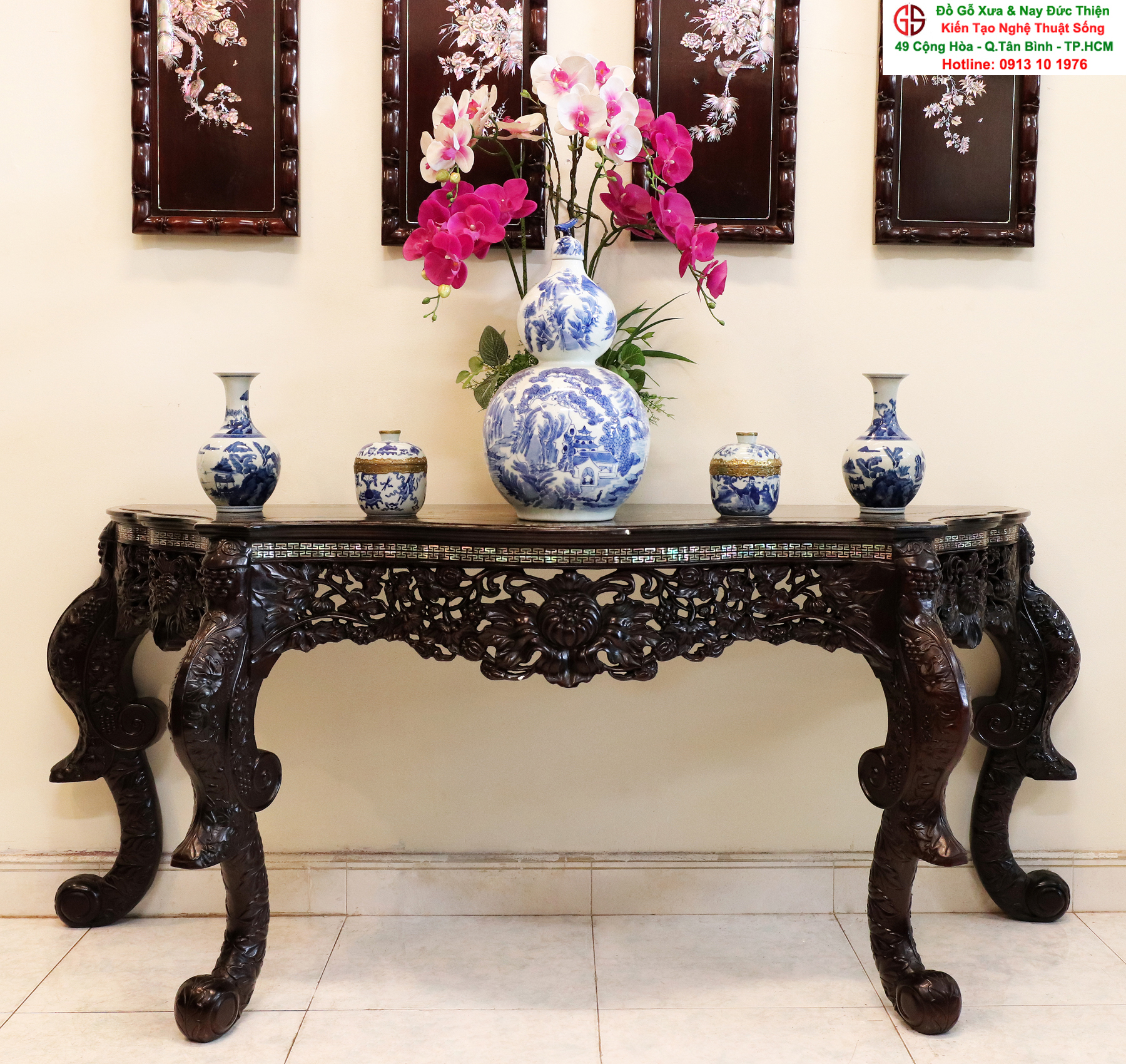 Tọa lạc ngay tại cửa ngõ trung tâm Sài Gòn - Đồ Gỗ Cao Cấp Xưa và Nay Đức Thiện - Số 49 Cộng Hòa, Phường 4, Quận Tân Bình, Tp.HCM là địa chỉ chuyên mua bán trao đổi các loại đồ cổ, đồ xưa, đồ cổ xưa, nội thất tủ bàn ghế đẹp tại TP.HCM ( Sài Gòn), Cần Thơ, Tiền Giang, Vĩnh Long, Đồng Tháp, Bạc Liêu, An Giang, Hậu Giang, Cà Mau, Trà Vinh, Bến Tre, Long An, Bình Dương, Bình Phước, Đồng Nai, Bình Định, Phú Yên, Vũng Tàu, Bình Thuận, Nha Trang, Huế, Đà Nẵng, Hà Nội, Hải Phòng, Quảng Ninh và trên toàn quốc .
