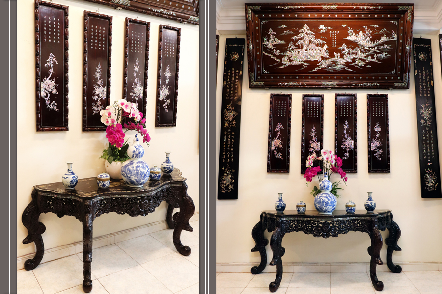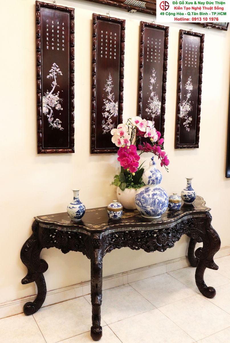 - Bàn ghế Louis, đôn trống gỗ trắc, bộ bàn ăn cẩn ốc, bàn ghế phương kỷ, bàn trung đường cẩn ốc xà cừ