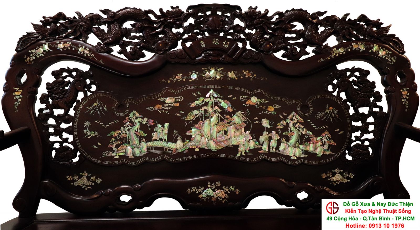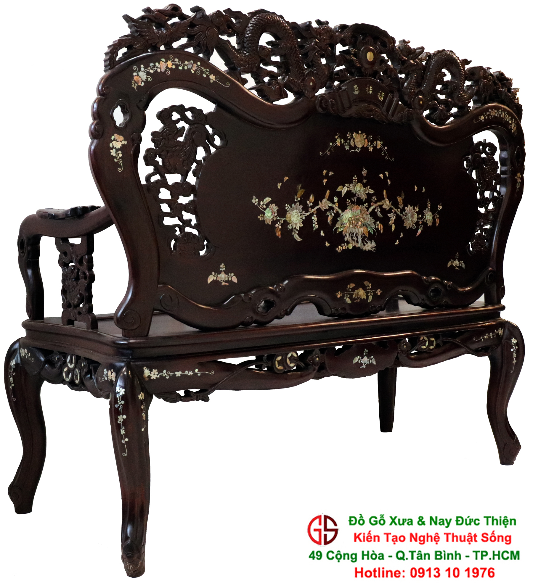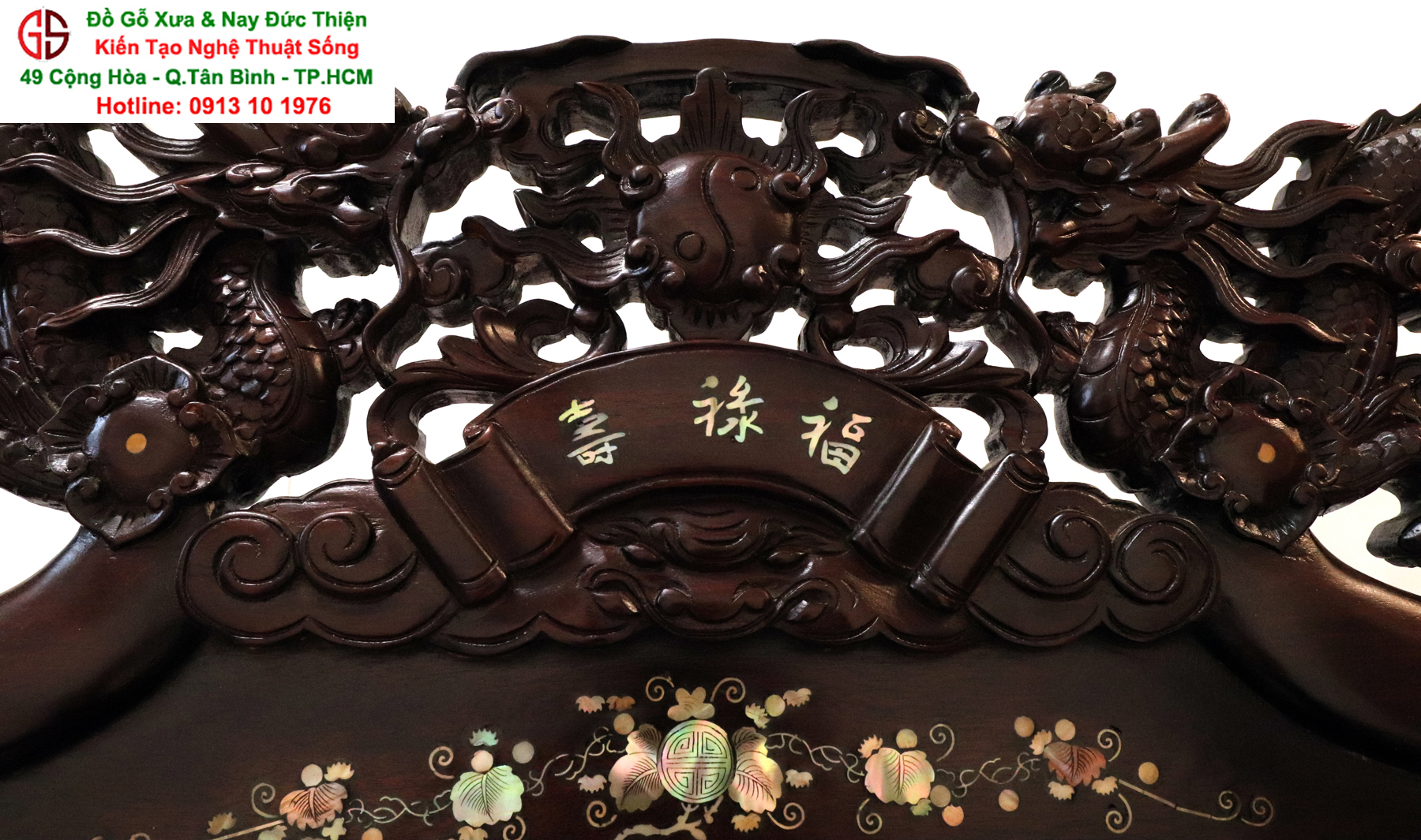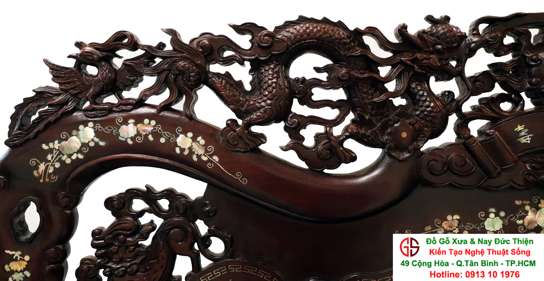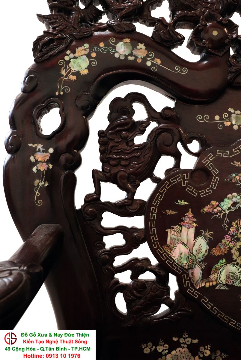 Bộ ghế gồm 9 món với hình tượng chủ đạo là rồng được chạm khảm cầu kỳ, tinh tế, qua bàn tay của người nghệ nhân tài hoa xứ Huế, gỗ đã được thổi hồn vào đó. Hàng trăm năm sau, nó trở thành những tuyệt tác để đời mà ai đó được hữu duyên sở hữu có quyền tự hào với đời sau.