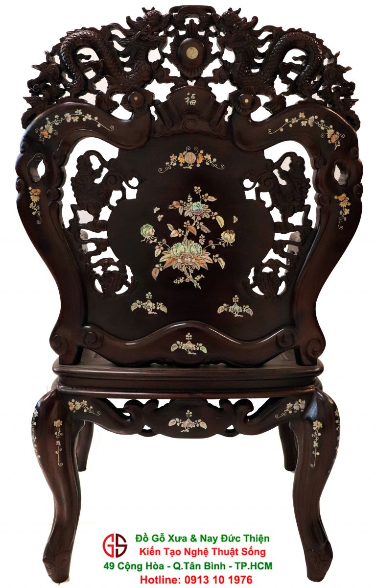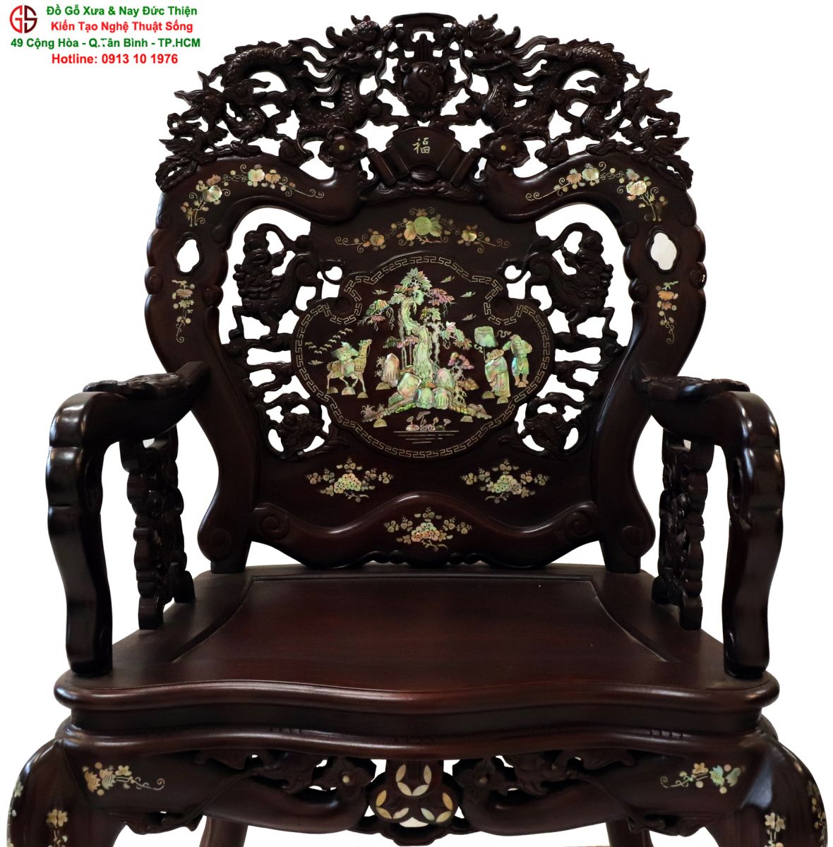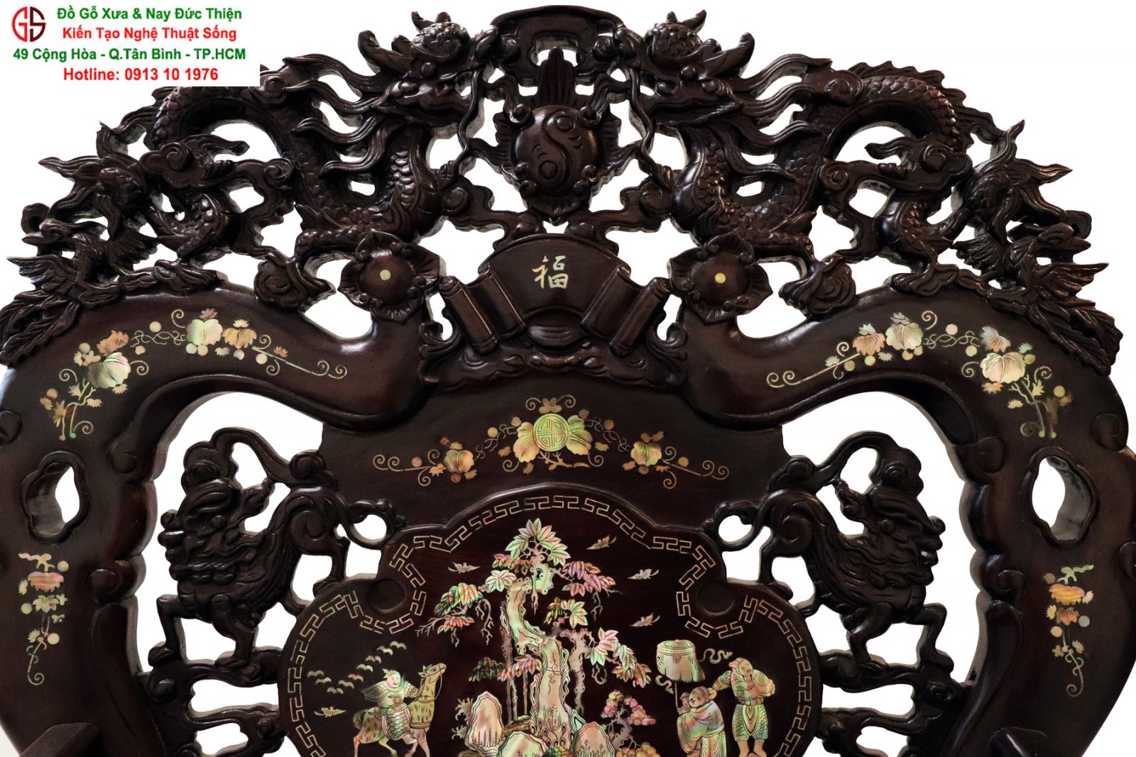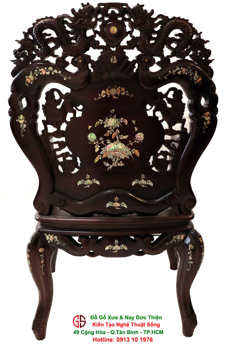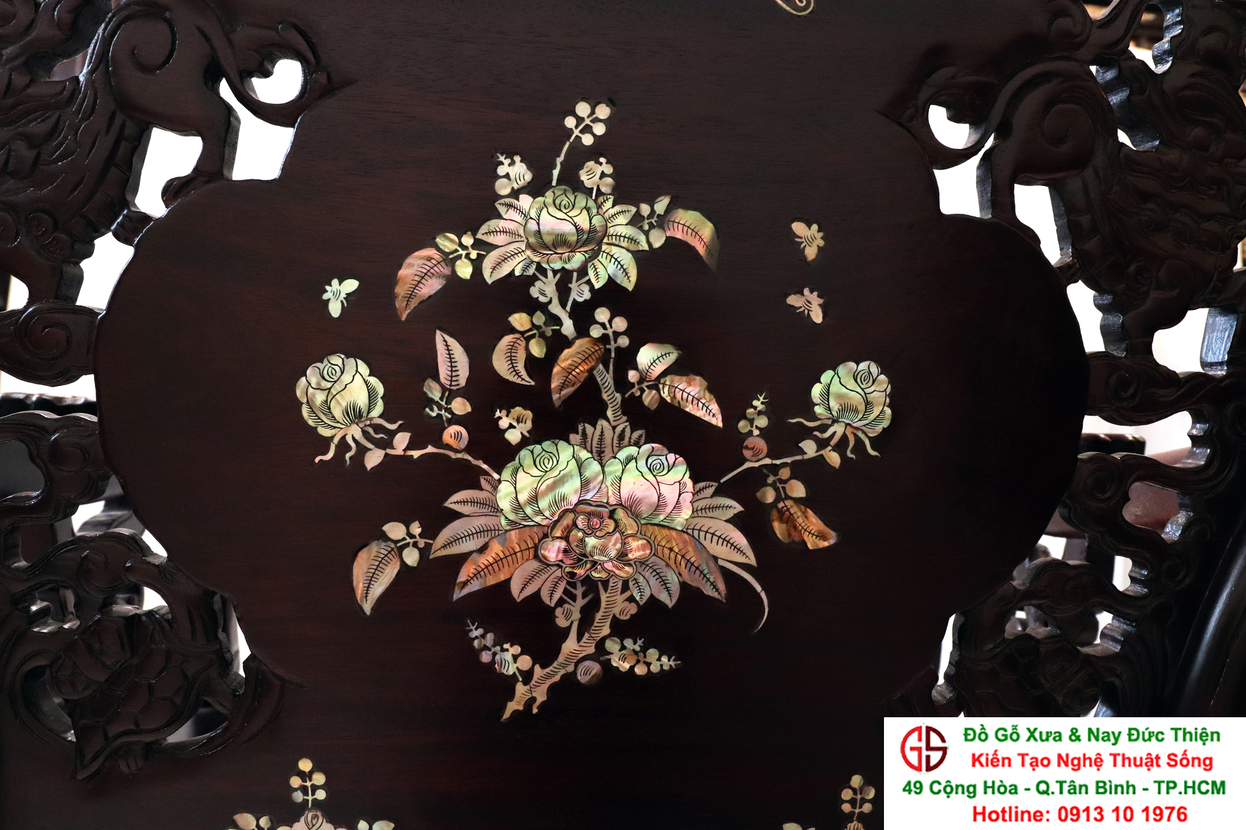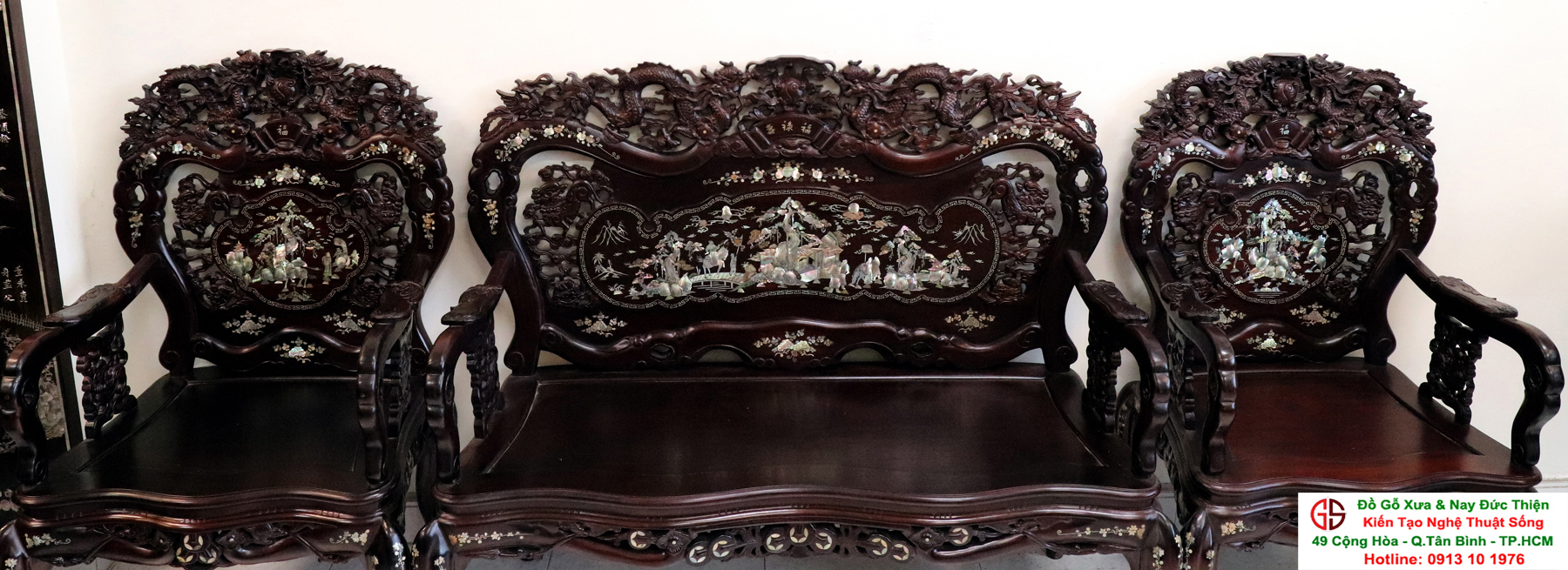 Bộ ghế gồm 9 món với hình tượng chủ đạo là rồng được chạm khảm cầu kỳ, tinh tế, qua bàn tay của người nghệ nhân tài hoa xứ Huế, gỗ đã được thổi hồn vào đó. Hàng trăm năm sau, nó trở thành những tuyệt tác để đời mà ai đó được hữu duyên sở hữu có quyền tự hào với đời sau.