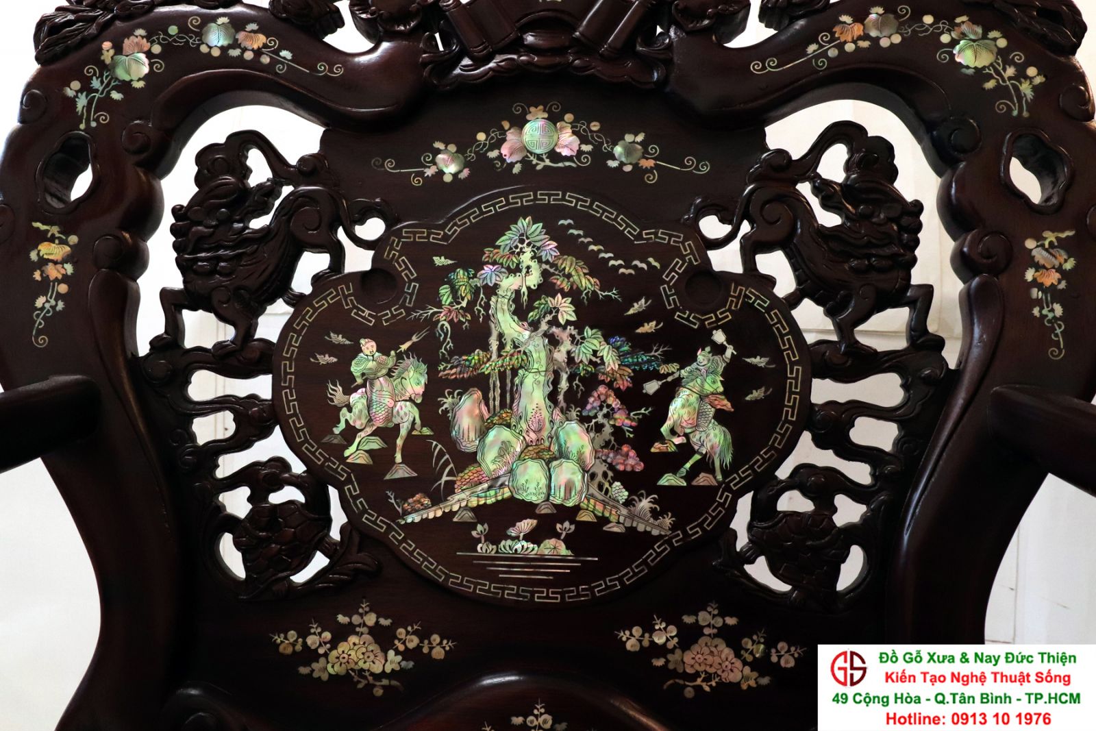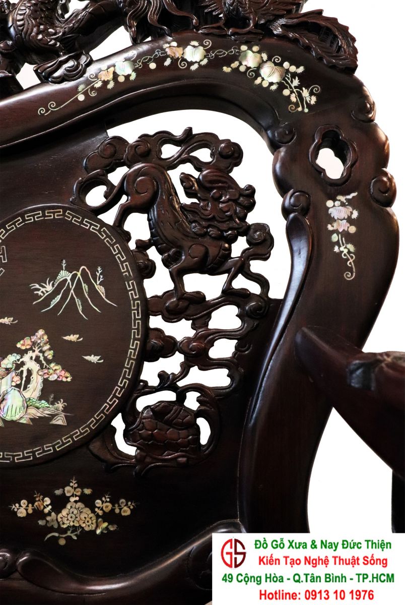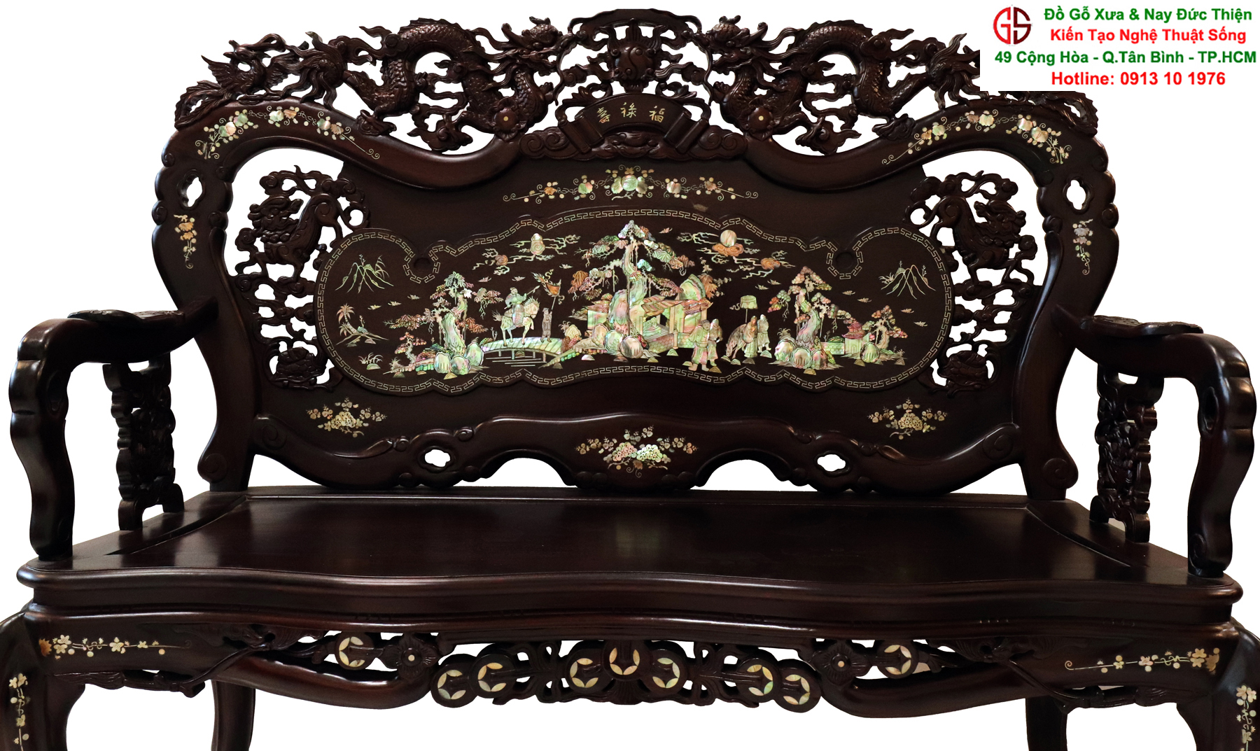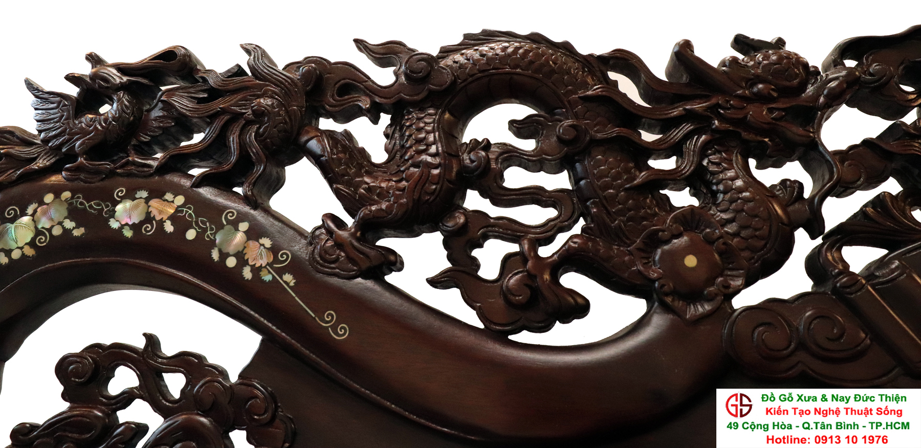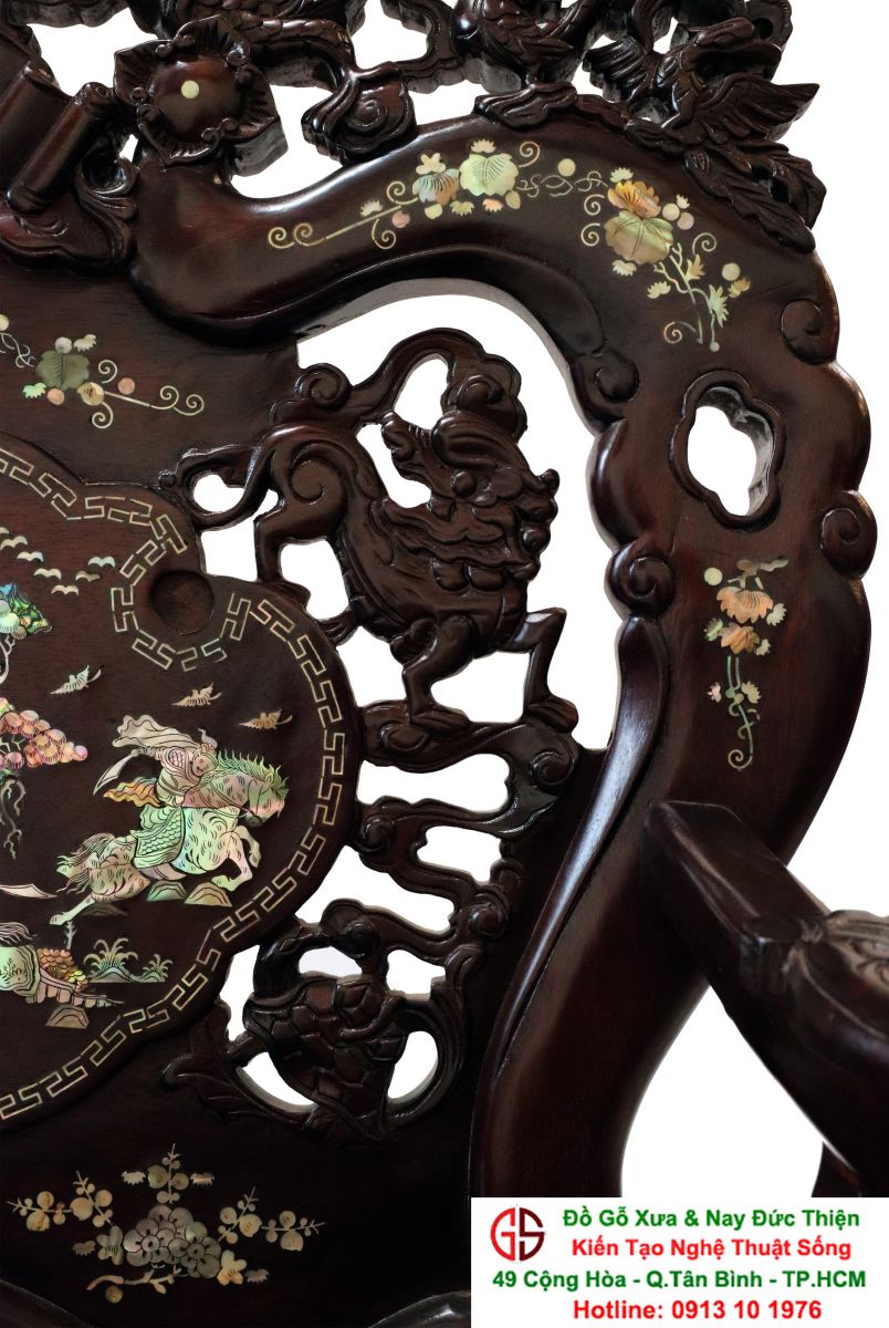 Bộ ghế gồm 9 món với hình tượng chủ đạo là rồng được chạm khảm cầu kỳ, tinh tế, qua bàn tay của người nghệ nhân tài hoa xứ Huế, gỗ đã được thổi hồn vào đó. Hàng trăm năm sau, nó trở thành những tuyệt tác để đời mà ai đó được hữu duyên sở hữu có quyền tự hào với đời sau.