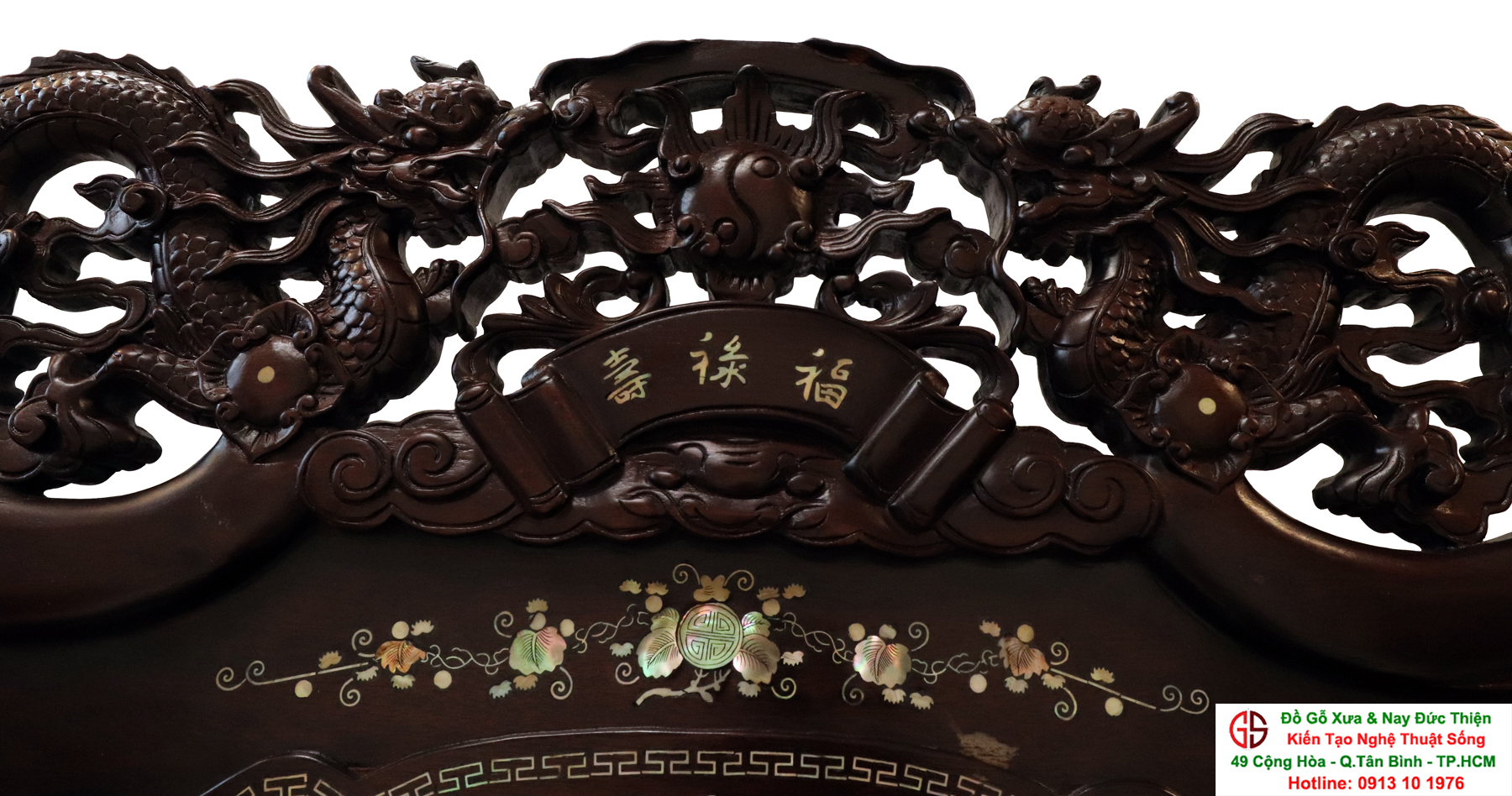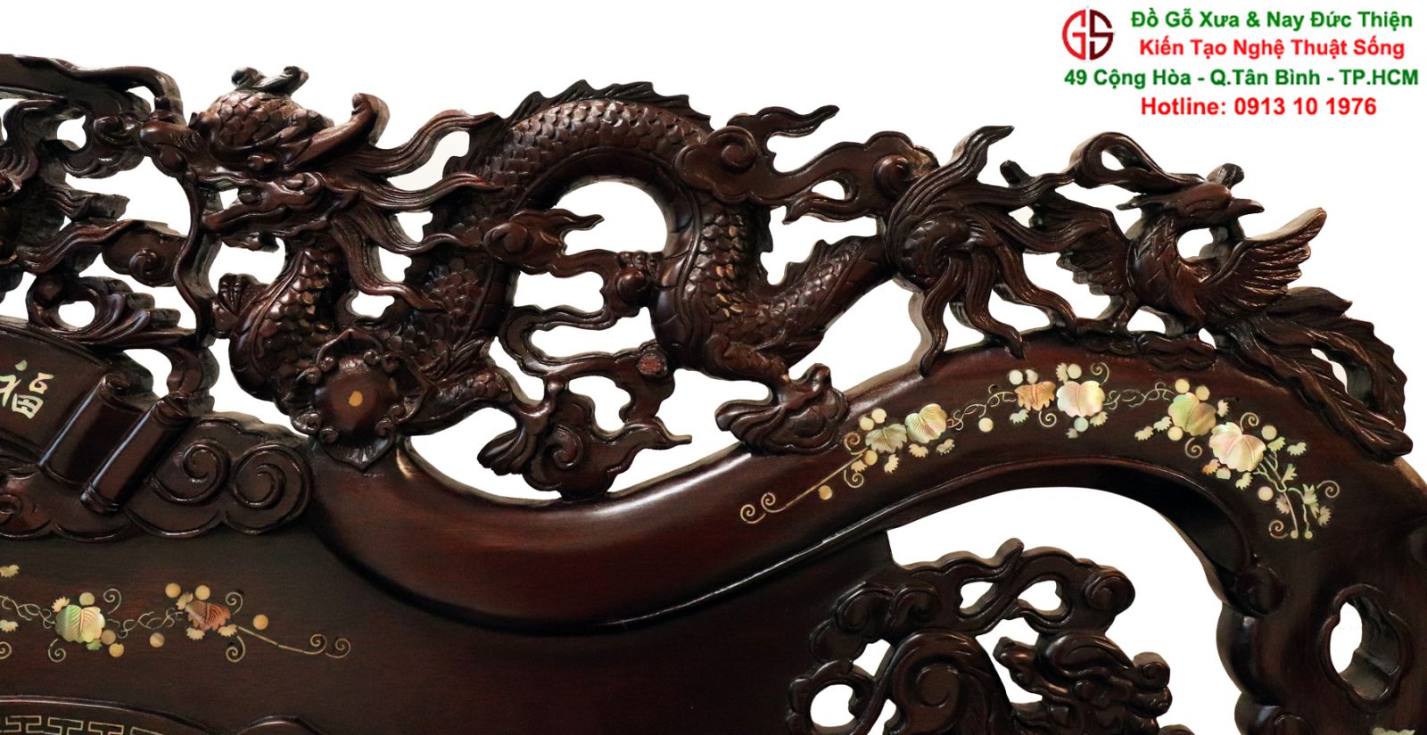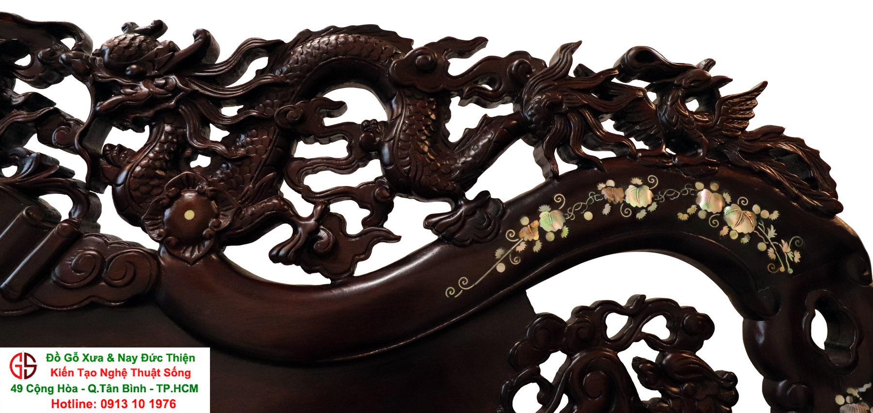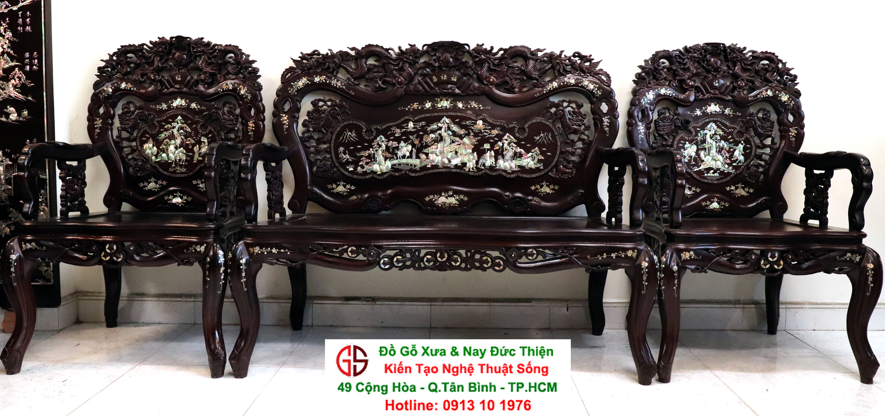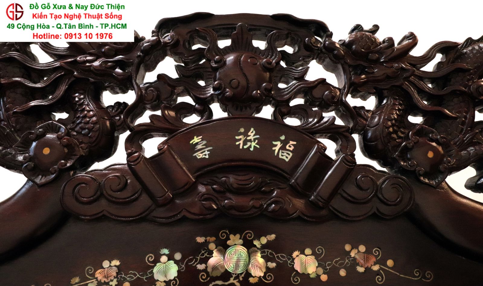 Bộ ghế gồm 9 món với hình tượng chủ đạo là rồng được chạm khảm cầu kỳ, tinh tế, qua bàn tay của người nghệ nhân tài hoa xứ Huế, gỗ đã được thổi hồn vào đó. Hàng trăm năm sau, nó trở thành những tuyệt tác để đời mà ai đó được hữu duyên sở hữu có quyền tự hào với đời sau.