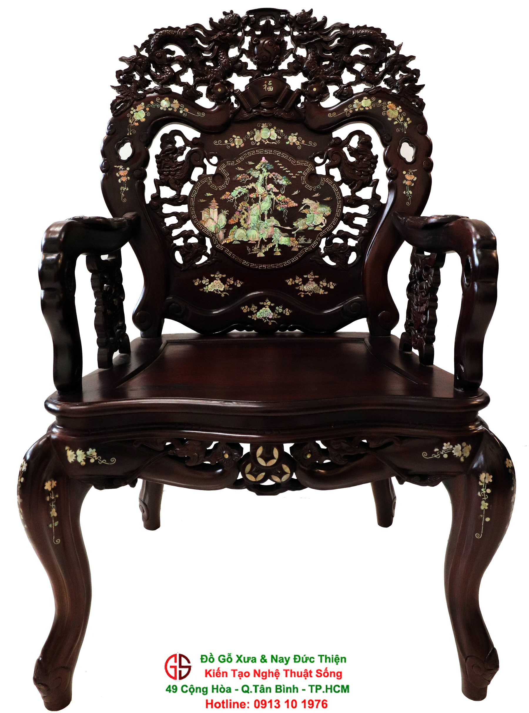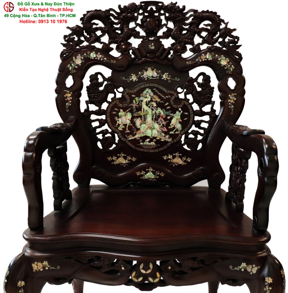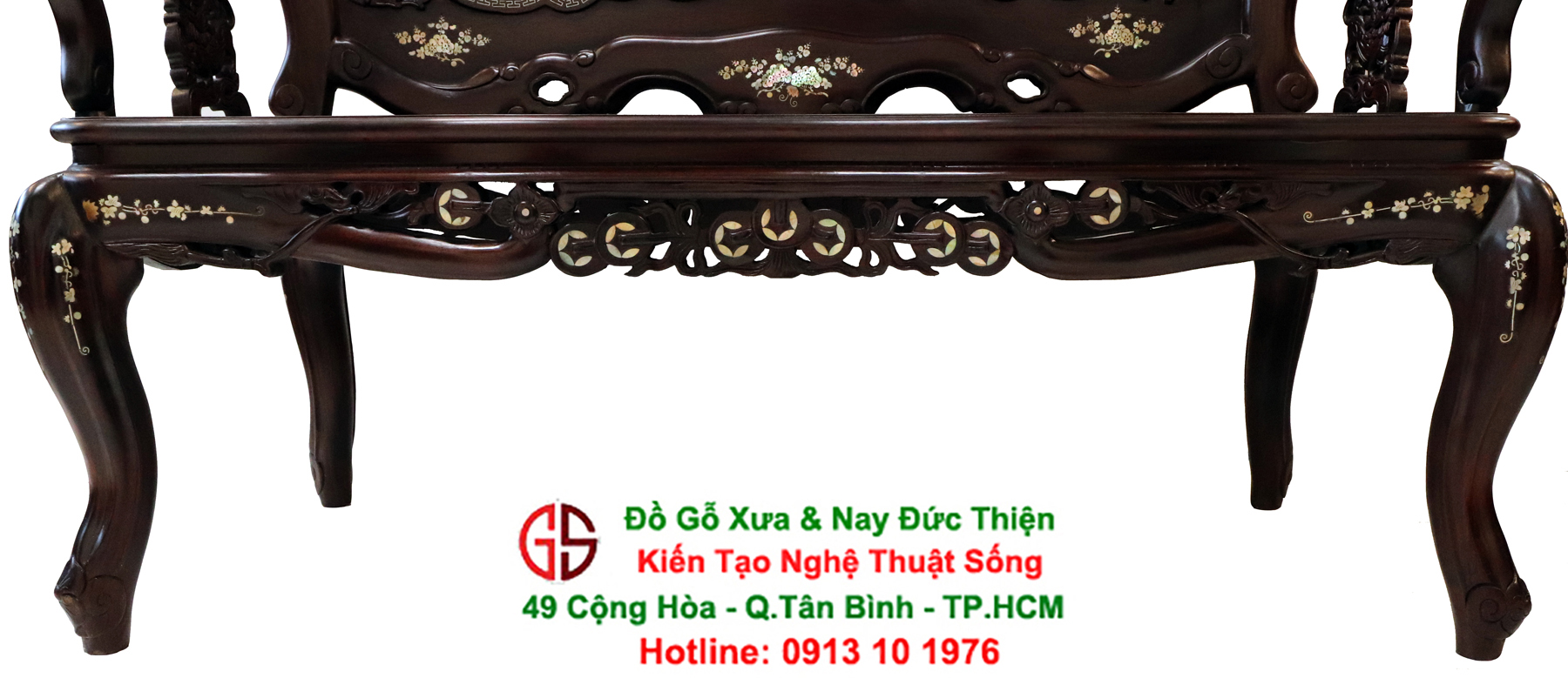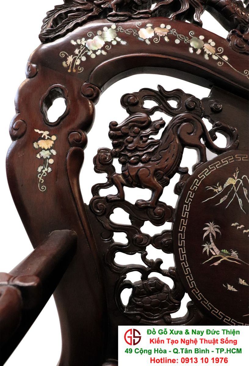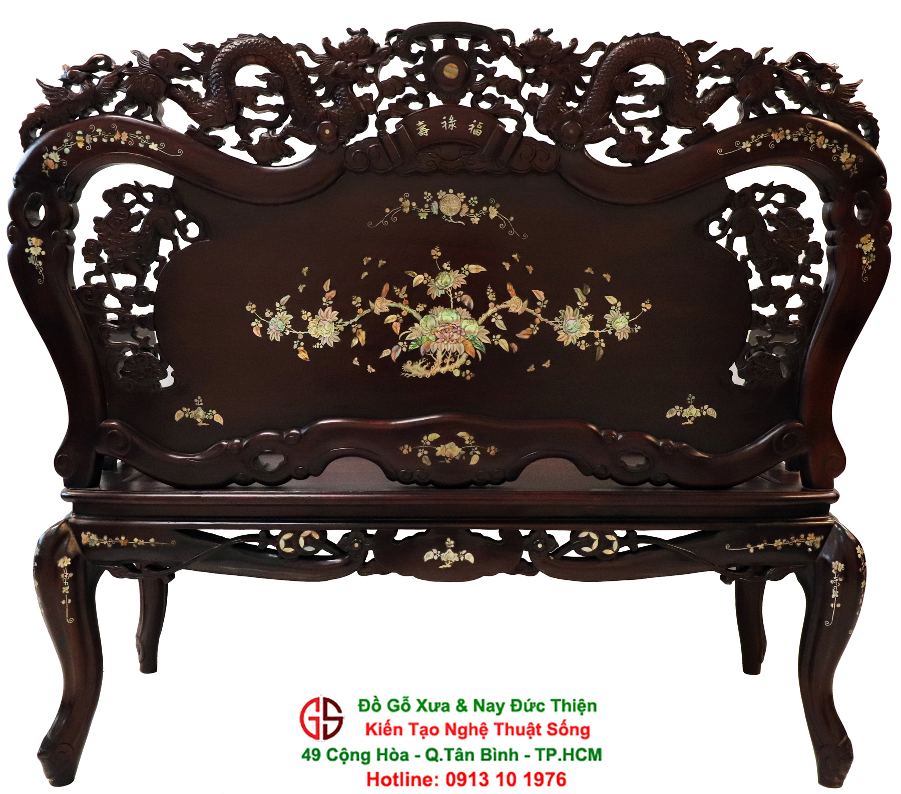 Bộ ghế gồm 9 món với hình tượng chủ đạo là rồng được chạm khảm cầu kỳ, tinh tế, qua bàn tay của người nghệ nhân tài hoa xứ Huế, gỗ đã được thổi hồn vào đó. Hàng trăm năm sau, nó trở thành những tuyệt tác để đời mà ai đó được hữu duyên sở hữu có quyền tự hào với đời sau.