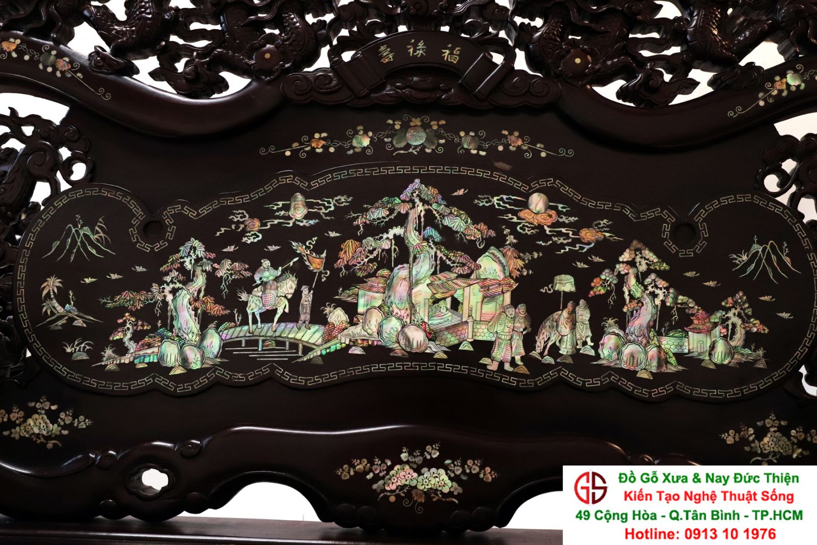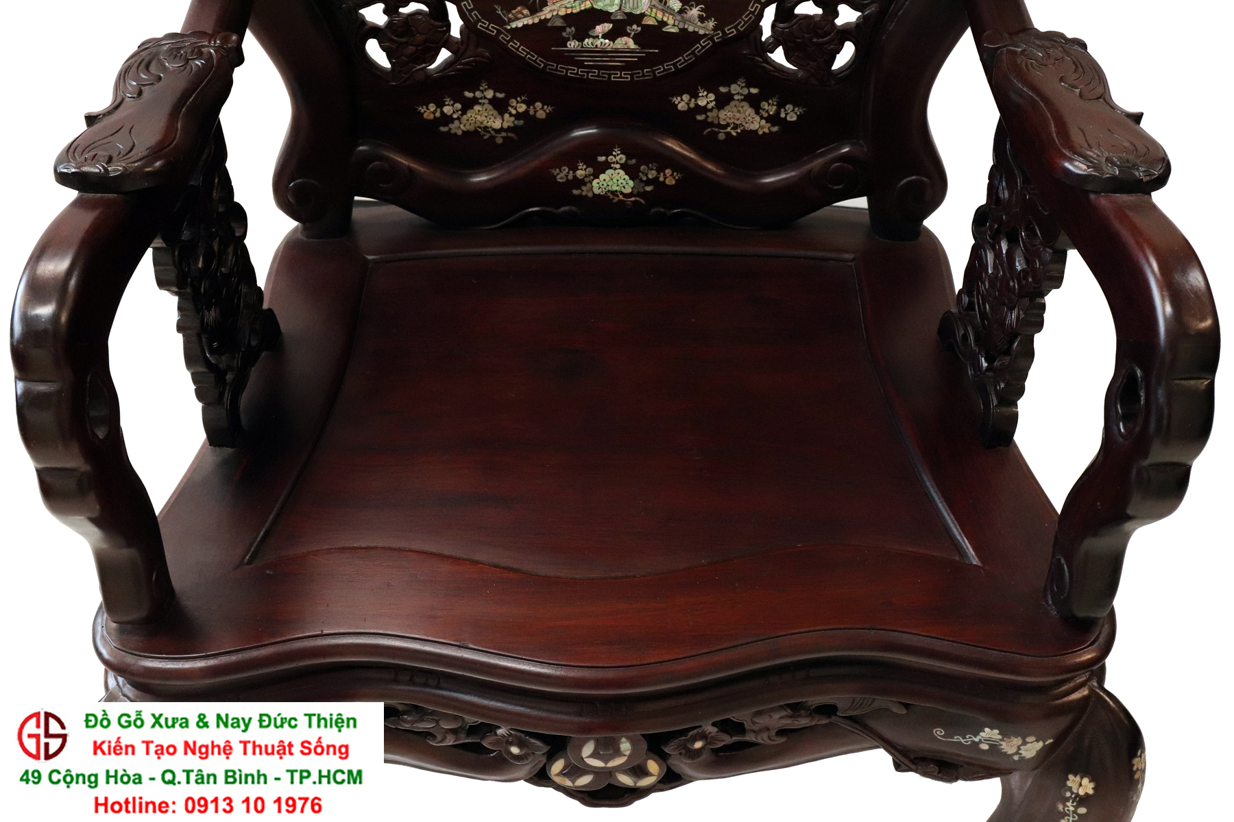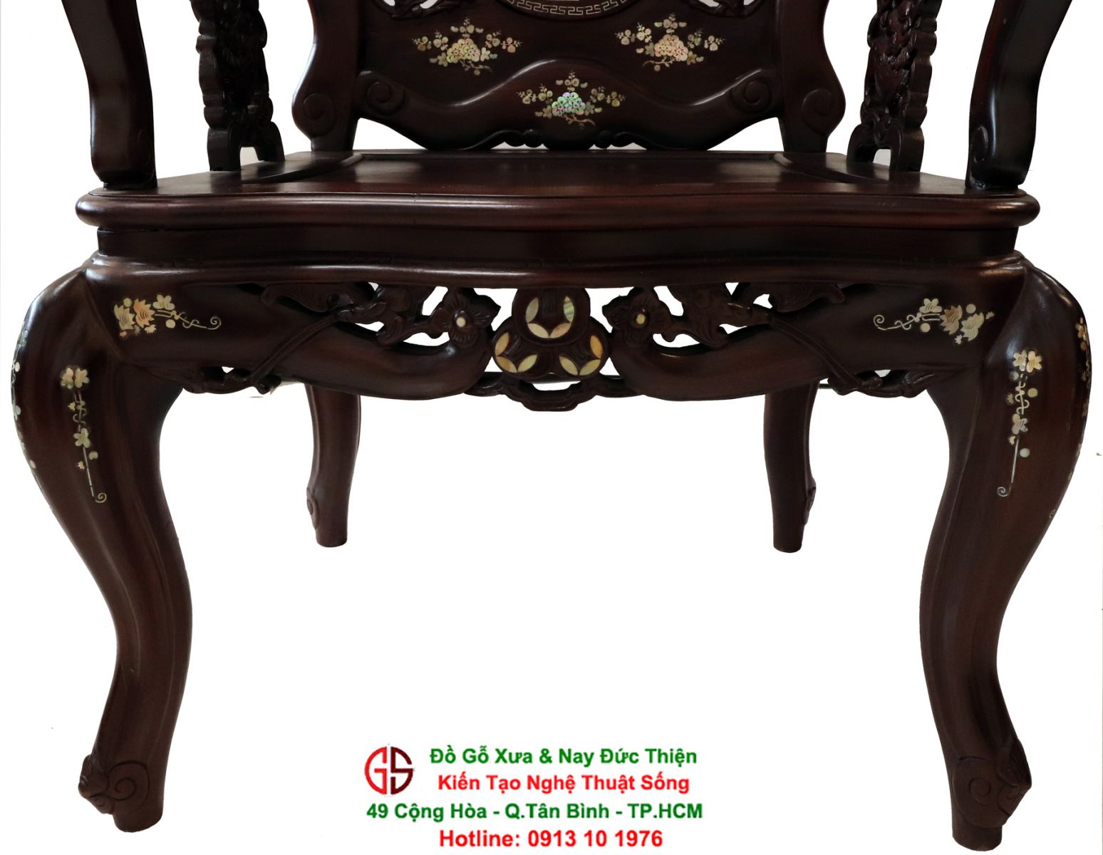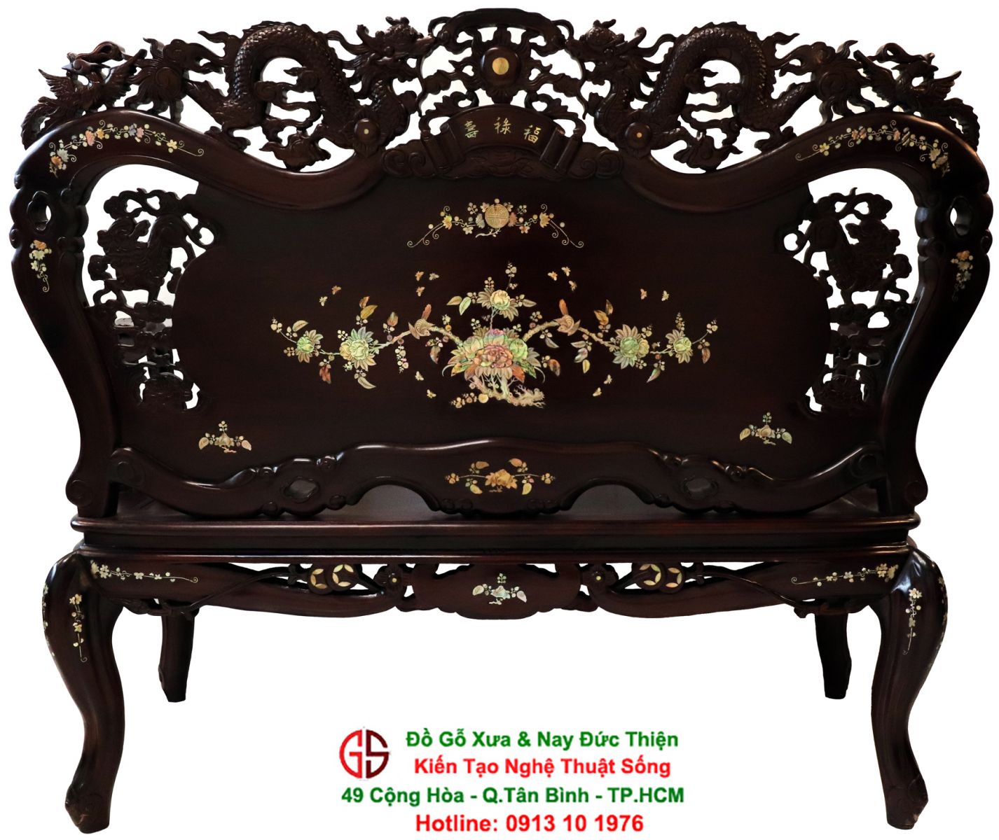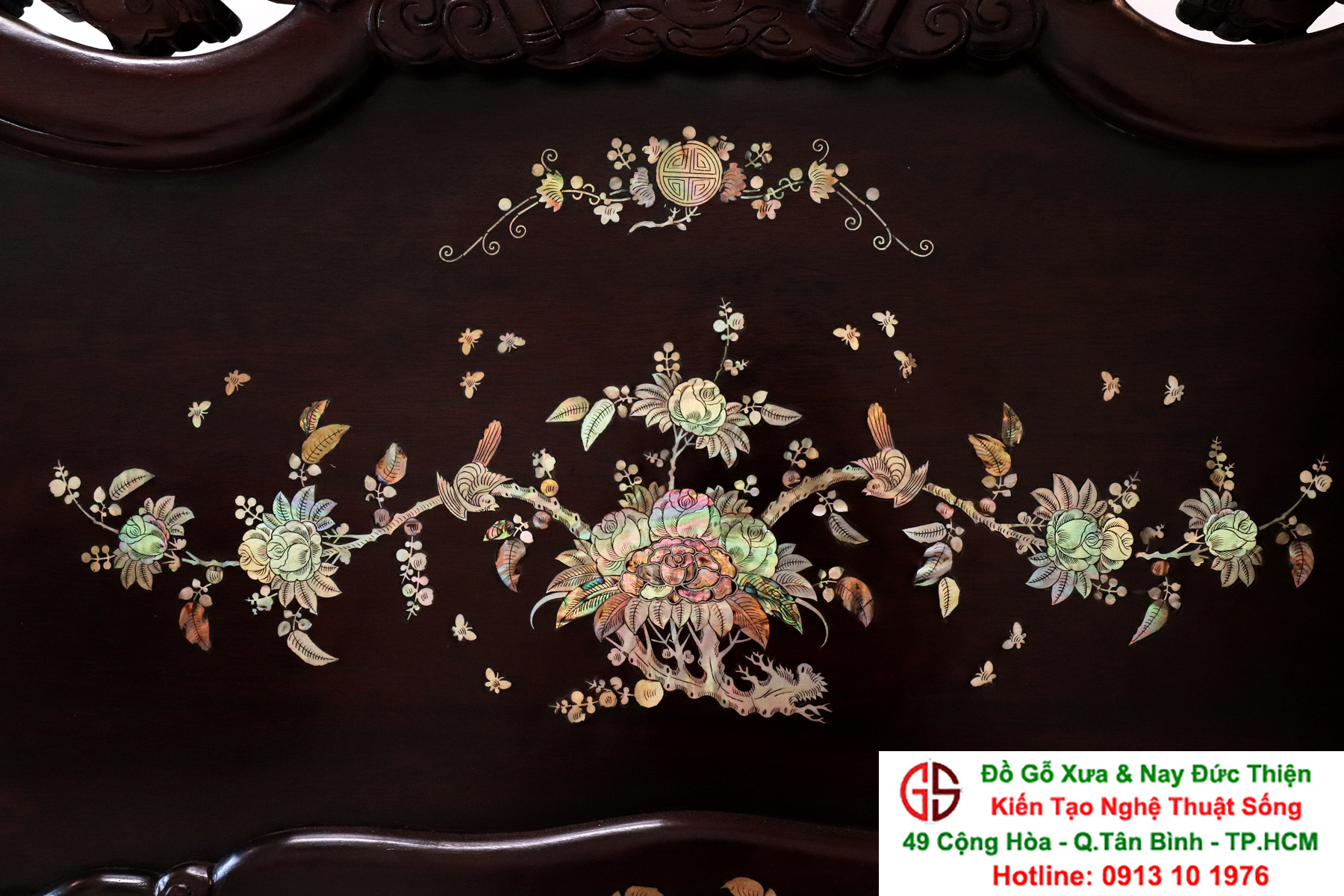 Bộ ghế gồm 9 món với hình tượng chủ đạo là rồng được chạm khảm cầu kỳ, tinh tế, qua bàn tay của người nghệ nhân tài hoa xứ Huế, gỗ đã được thổi hồn vào đó. Hàng trăm năm sau, nó trở thành những tuyệt tác để đời mà ai đó được hữu duyên sở hữu có quyền tự hào với đời sau.