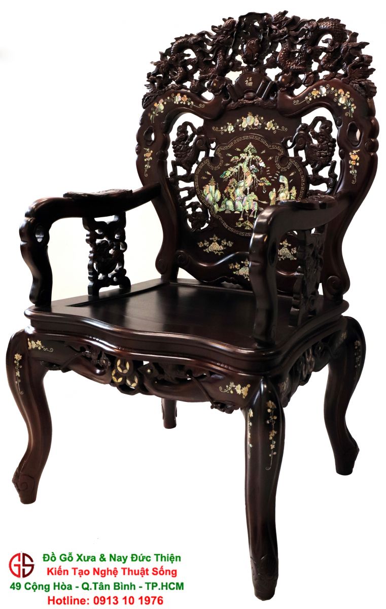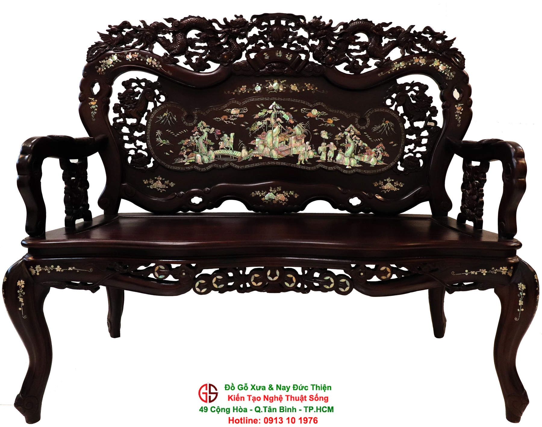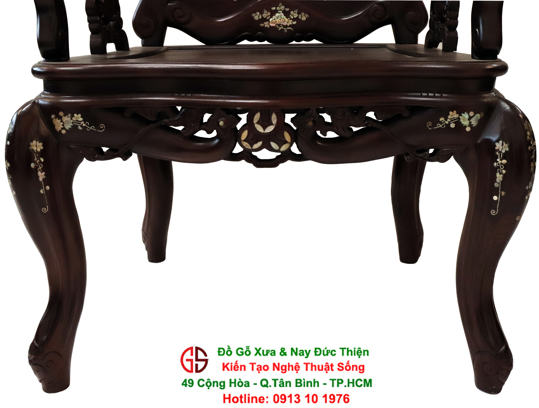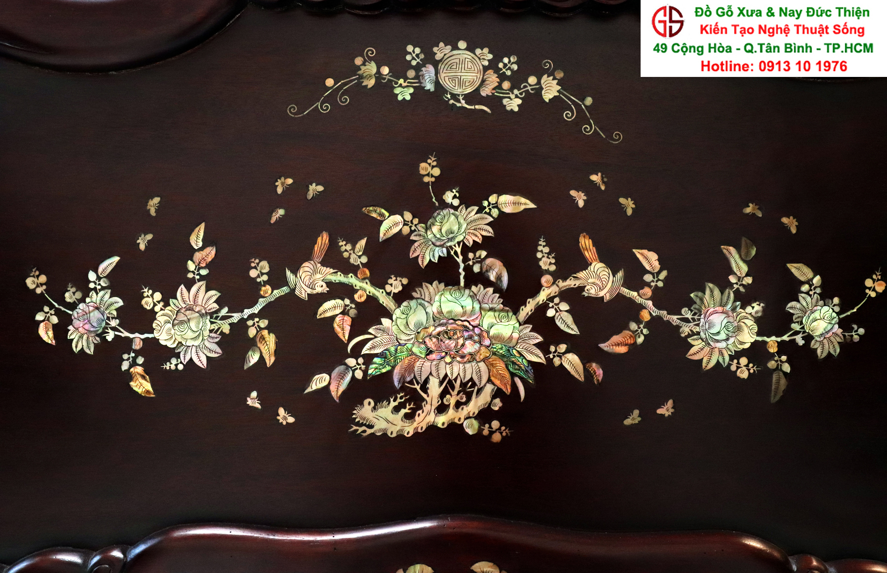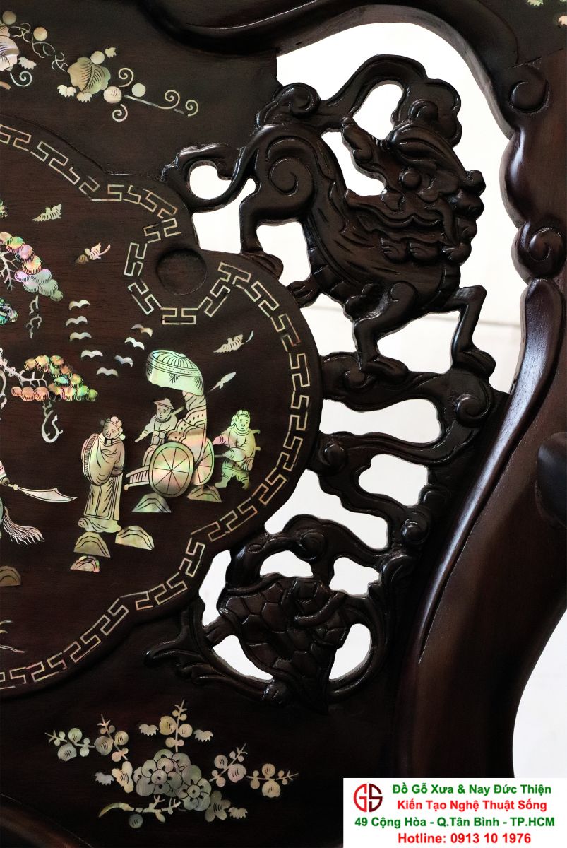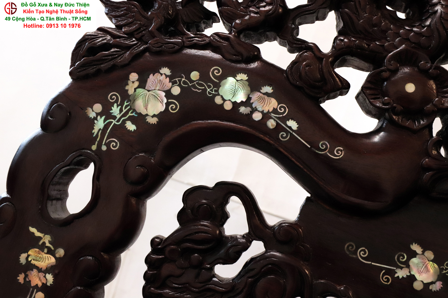 Bộ ghế gồm 9 món với hình tượng chủ đạo là rồng được chạm khảm cầu kỳ, tinh tế, qua bàn tay của người nghệ nhân tài hoa xứ Huế, gỗ đã được thổi hồn vào đó. Hàng trăm năm sau, nó trở thành những tuyệt tác để đời mà ai đó được hữu duyên sở hữu có quyền tự hào với đời sau.