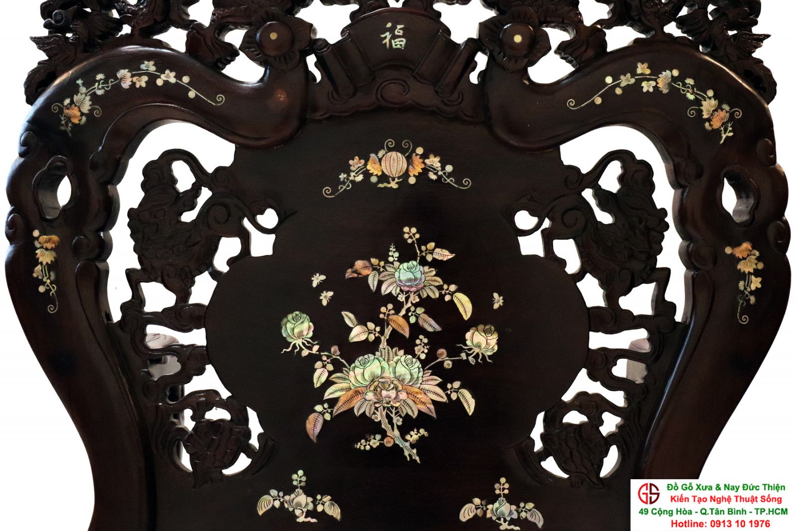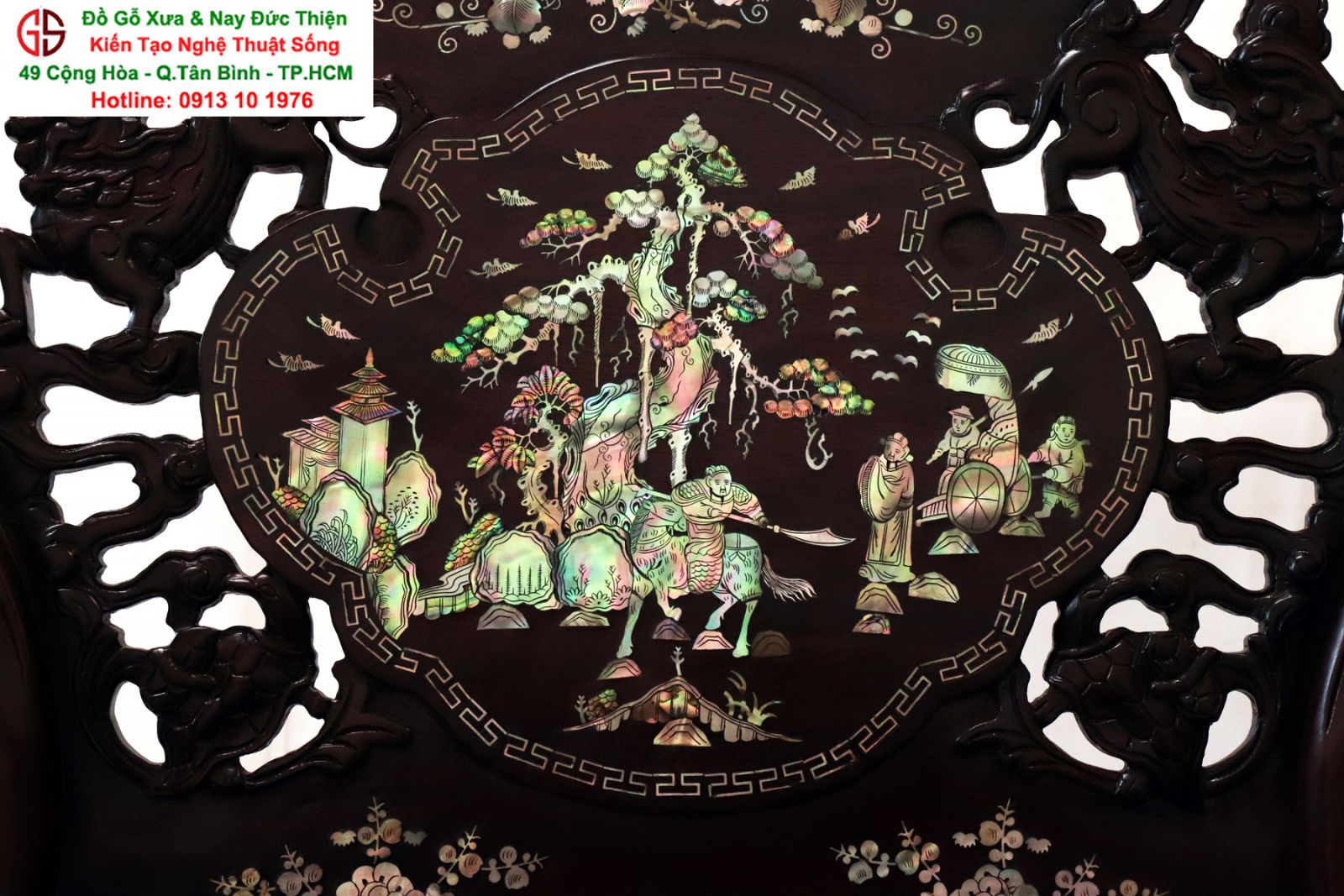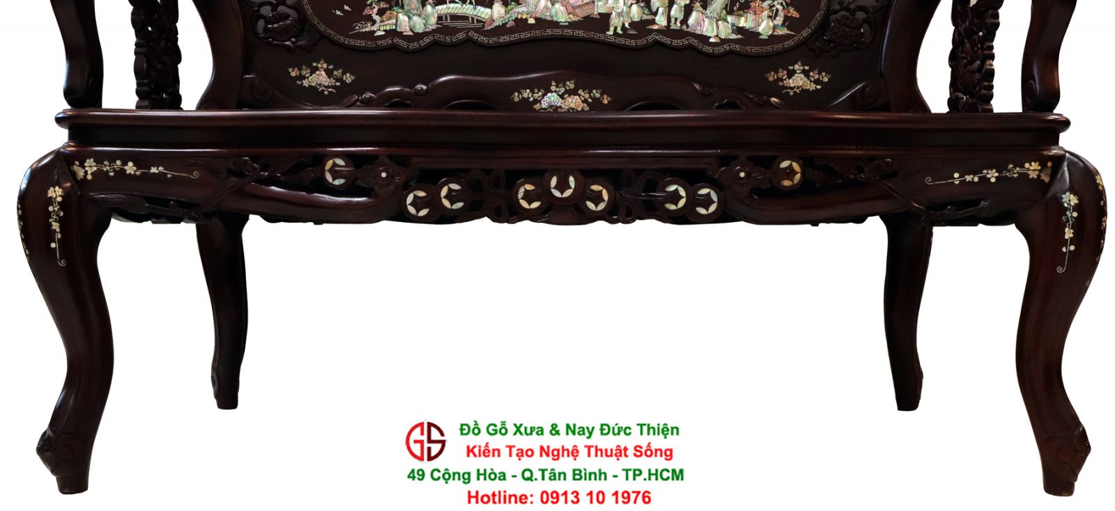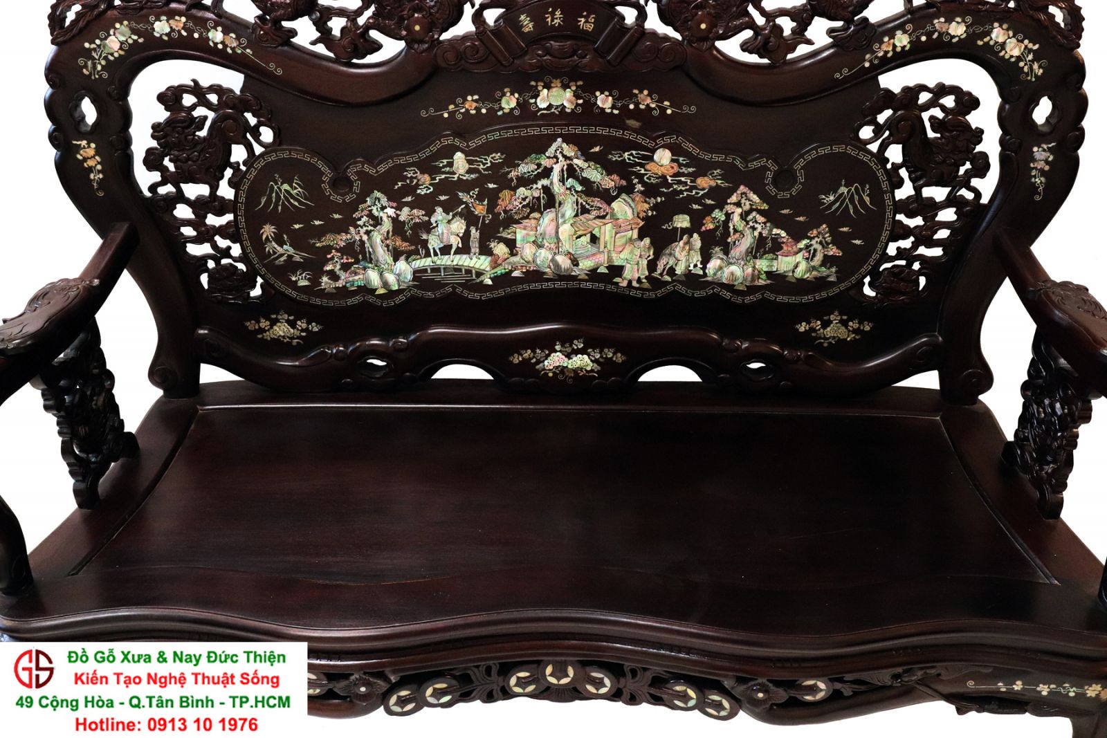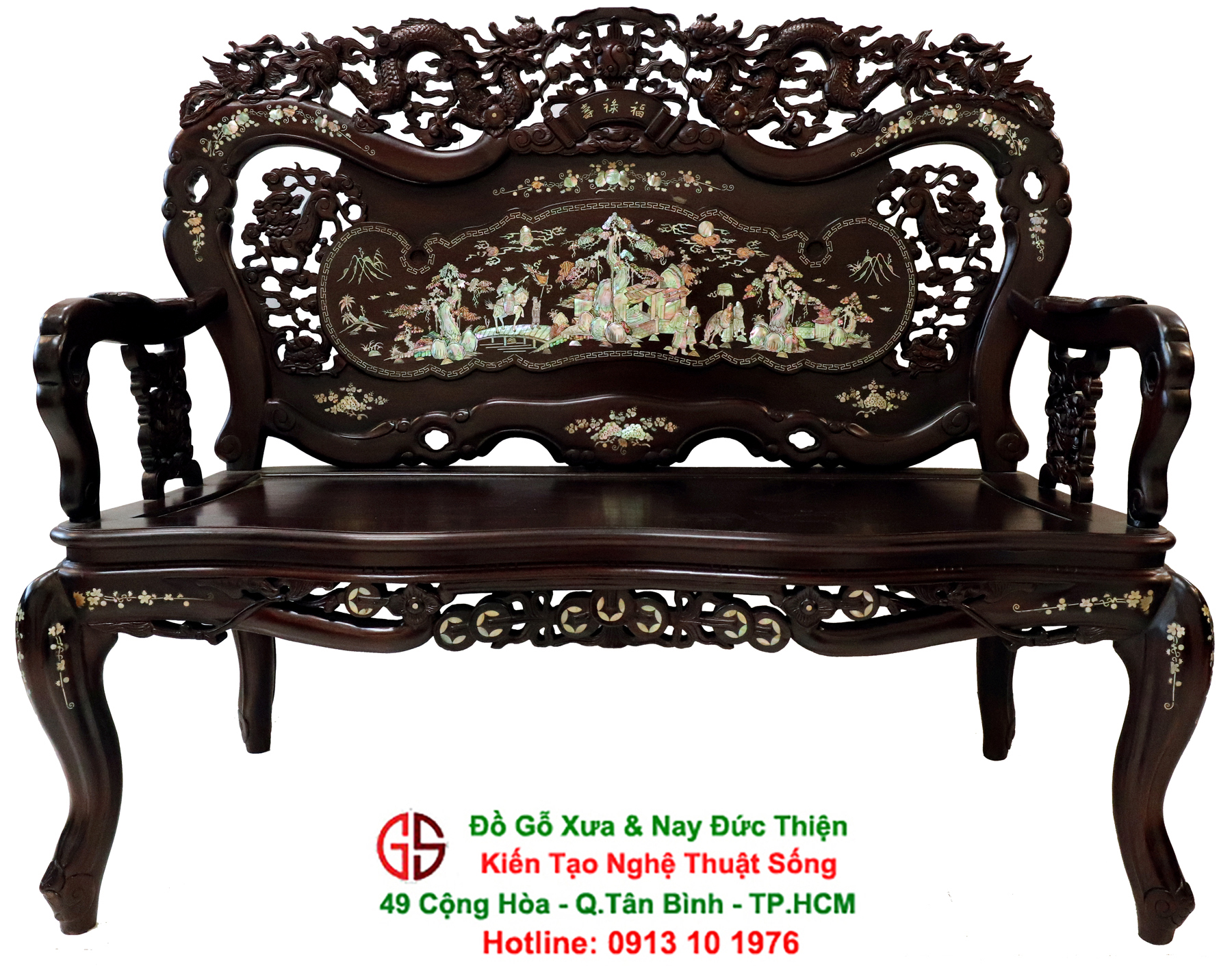 Bộ ghế gồm 9 món với hình tượng chủ đạo là rồng được chạm khảm cầu kỳ, tinh tế, qua bàn tay của người nghệ nhân tài hoa xứ Huế, gỗ đã được thổi hồn vào đó. Hàng trăm năm sau, nó trở thành những tuyệt tác để đời mà ai đó được hữu duyên sở hữu có quyền tự hào với đời sau.