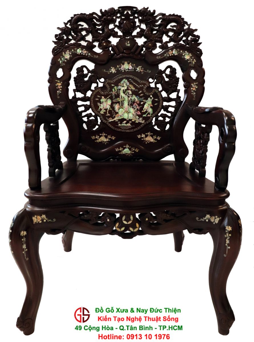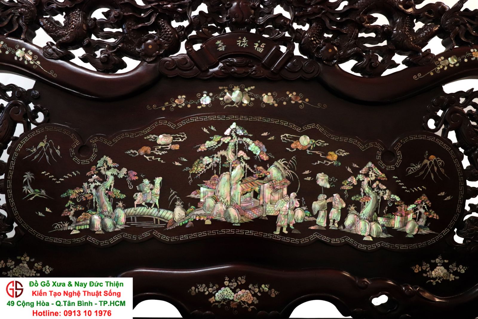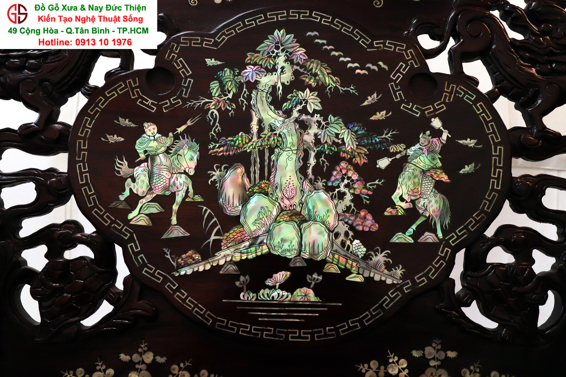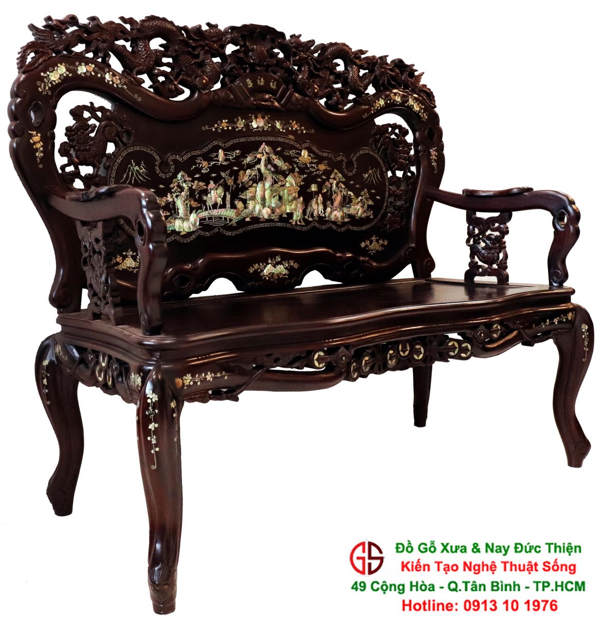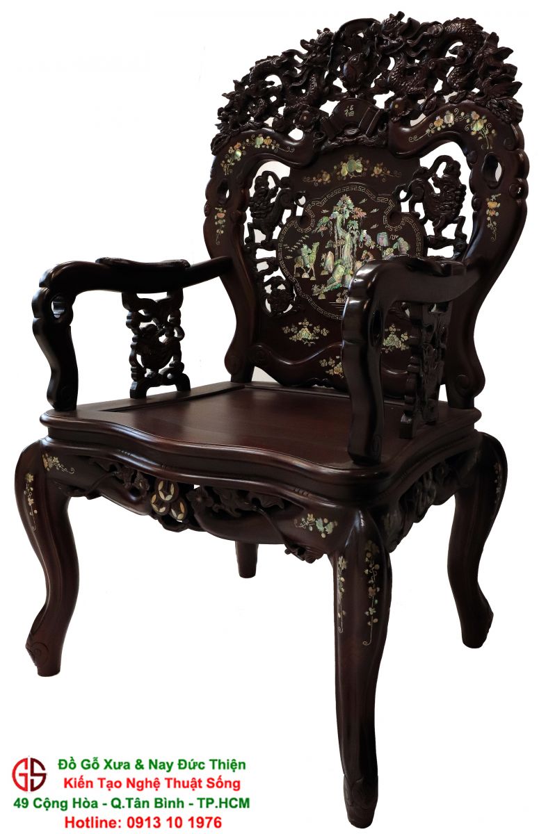 Bộ ghế gồm 9 món với hình tượng chủ đạo là rồng được chạm khảm cầu kỳ, tinh tế, qua bàn tay của người nghệ nhân tài hoa xứ Huế, gỗ đã được thổi hồn vào đó. Hàng trăm năm sau, nó trở thành những tuyệt tác để đời mà ai đó được hữu duyên sở hữu có quyền tự hào với đời sau.