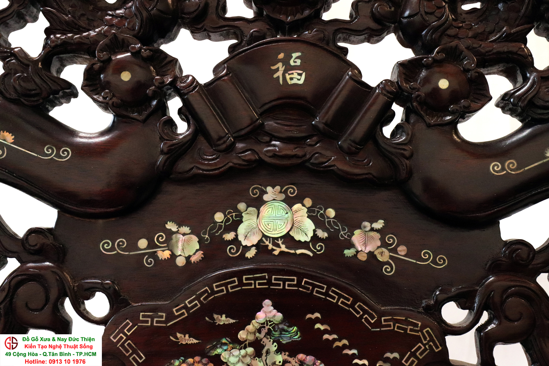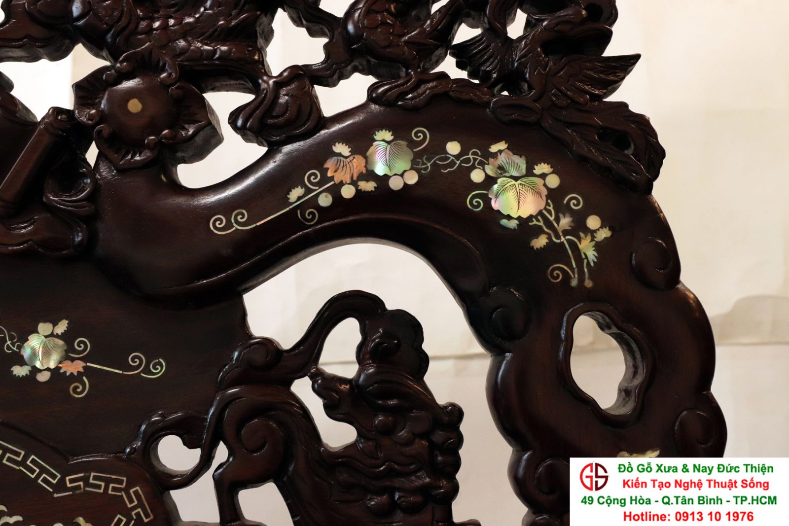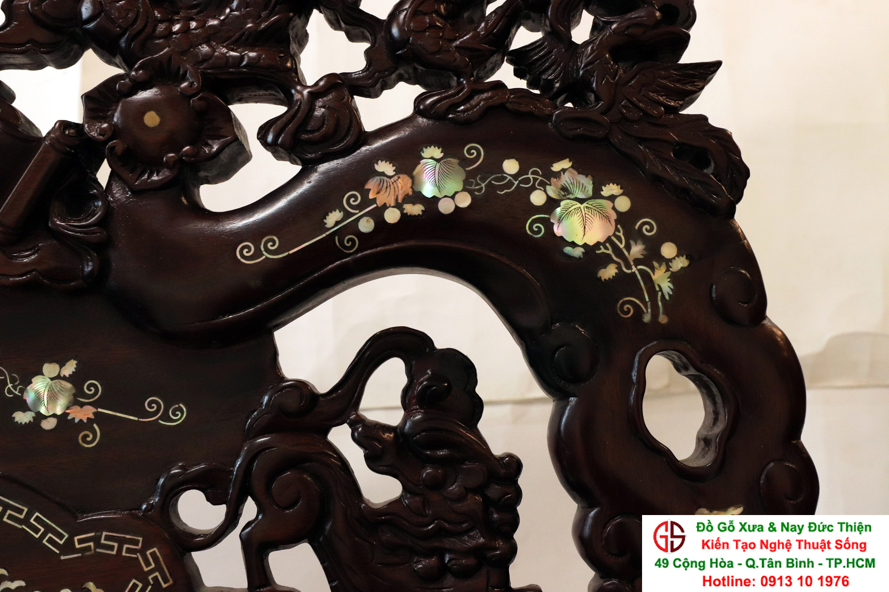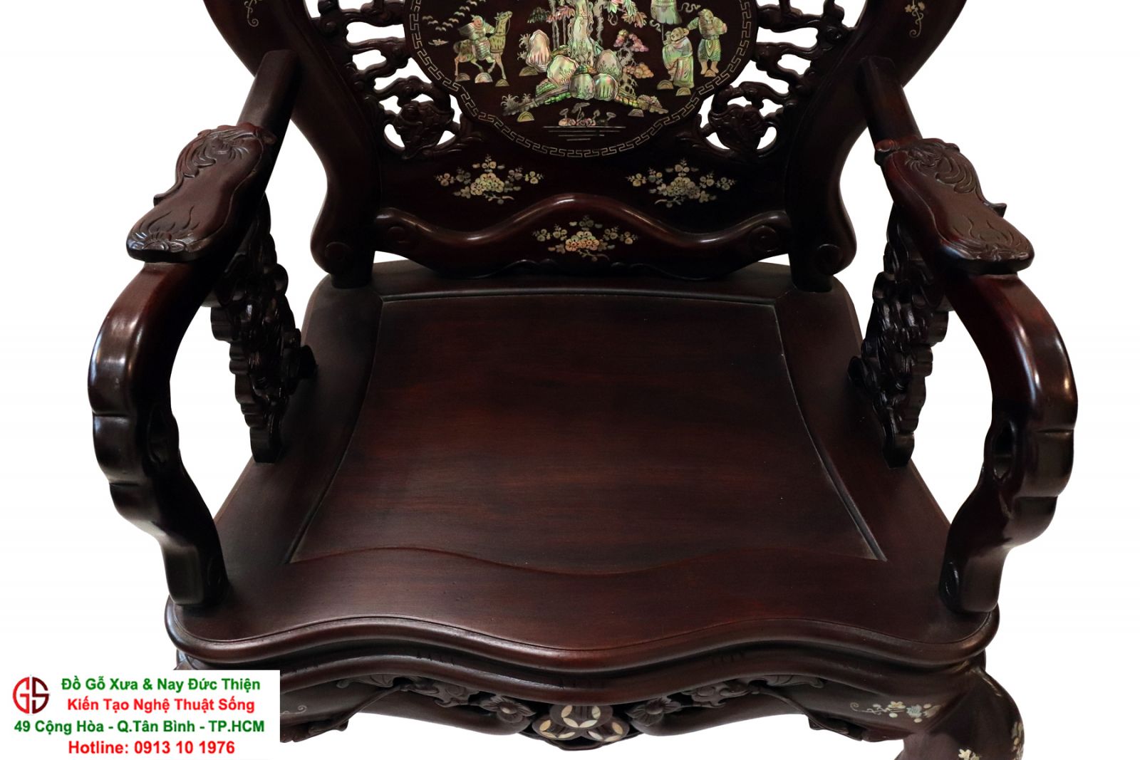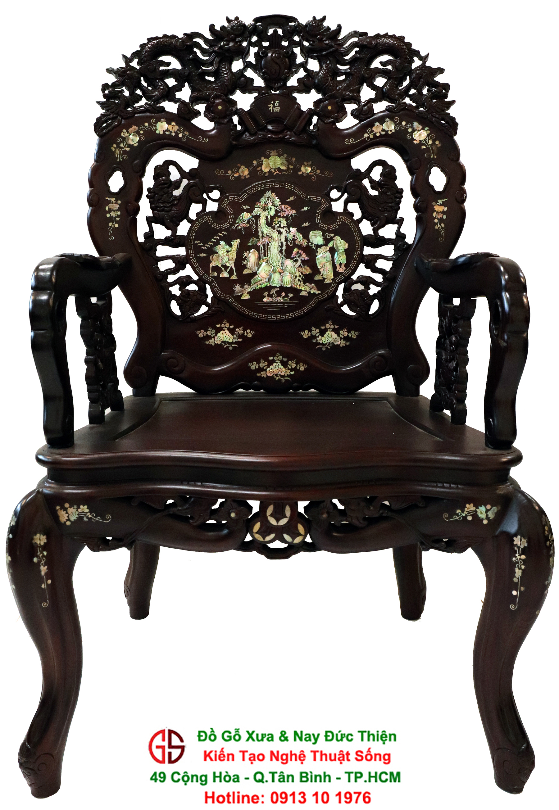 Bộ ghế gồm 9 món với hình tượng chủ đạo là rồng được chạm khảm cầu kỳ, tinh tế, qua bàn tay của người nghệ nhân tài hoa xứ Huế, gỗ đã được thổi hồn vào đó. Hàng trăm năm sau, nó trở thành những tuyệt tác để đời mà ai đó được hữu duyên sở hữu có quyền tự hào với đời sau.