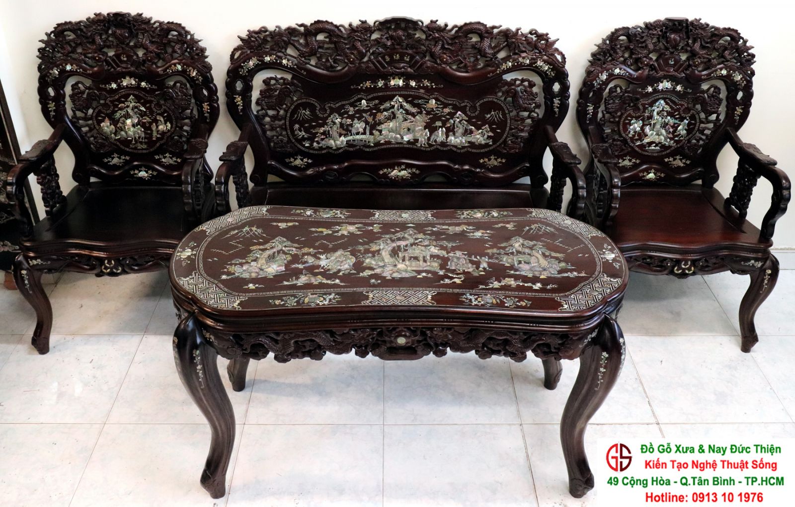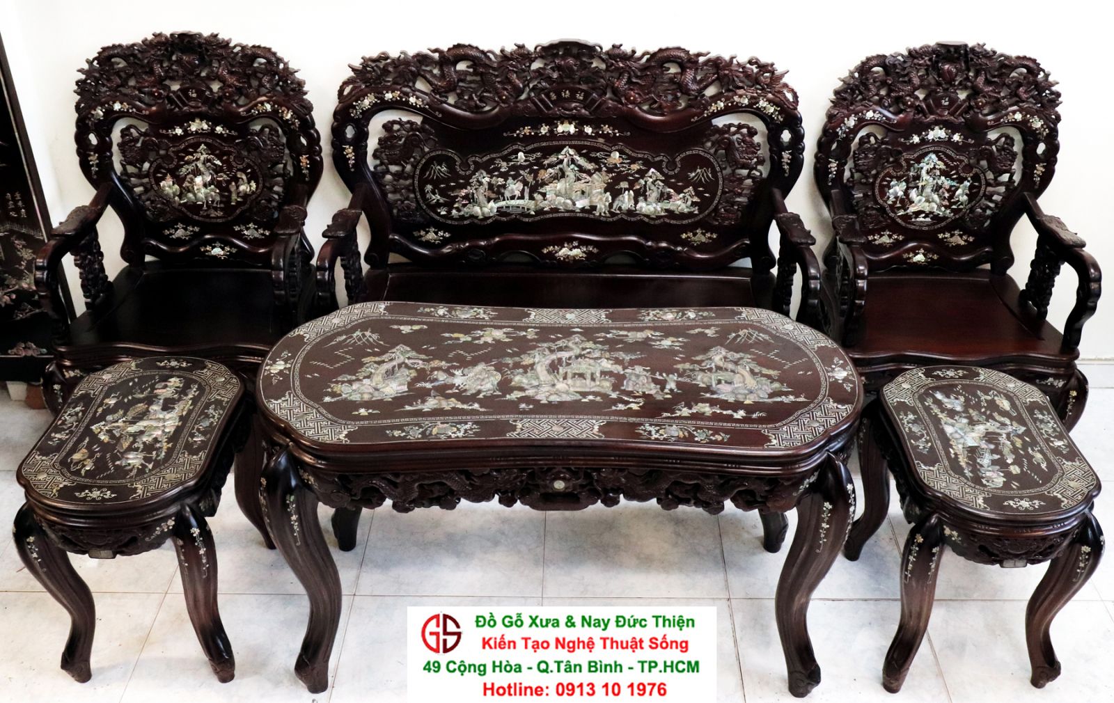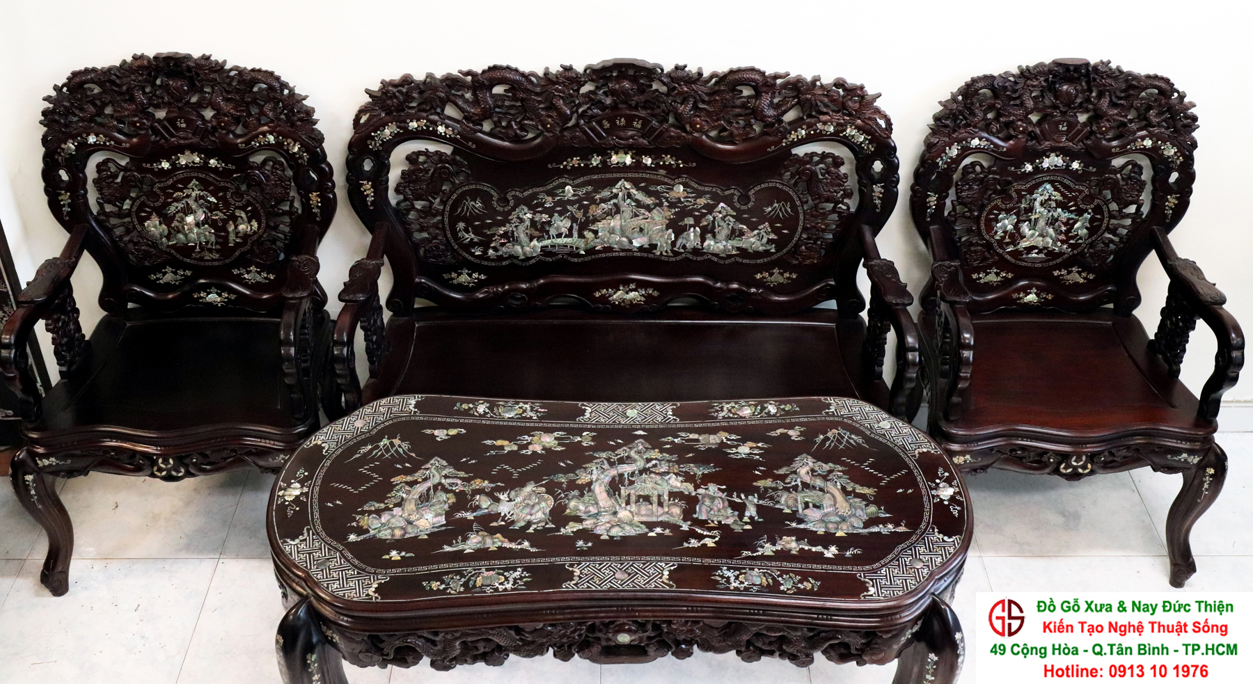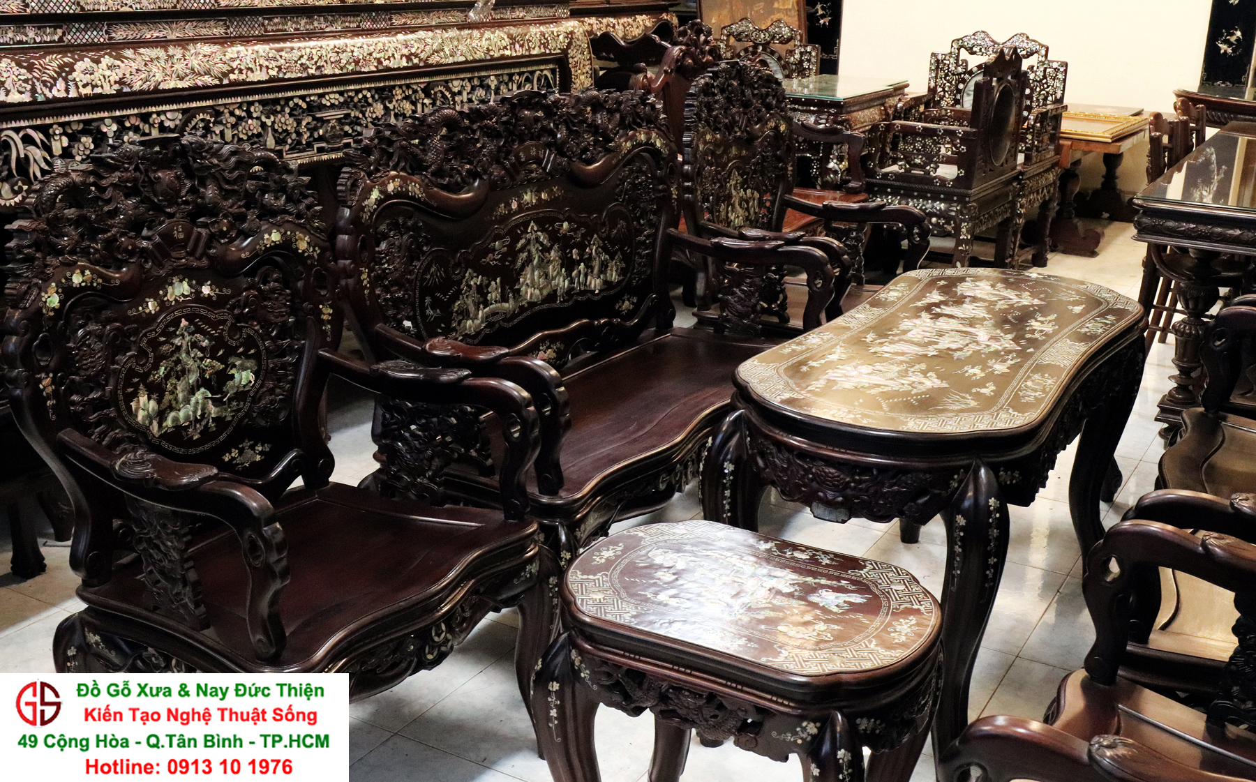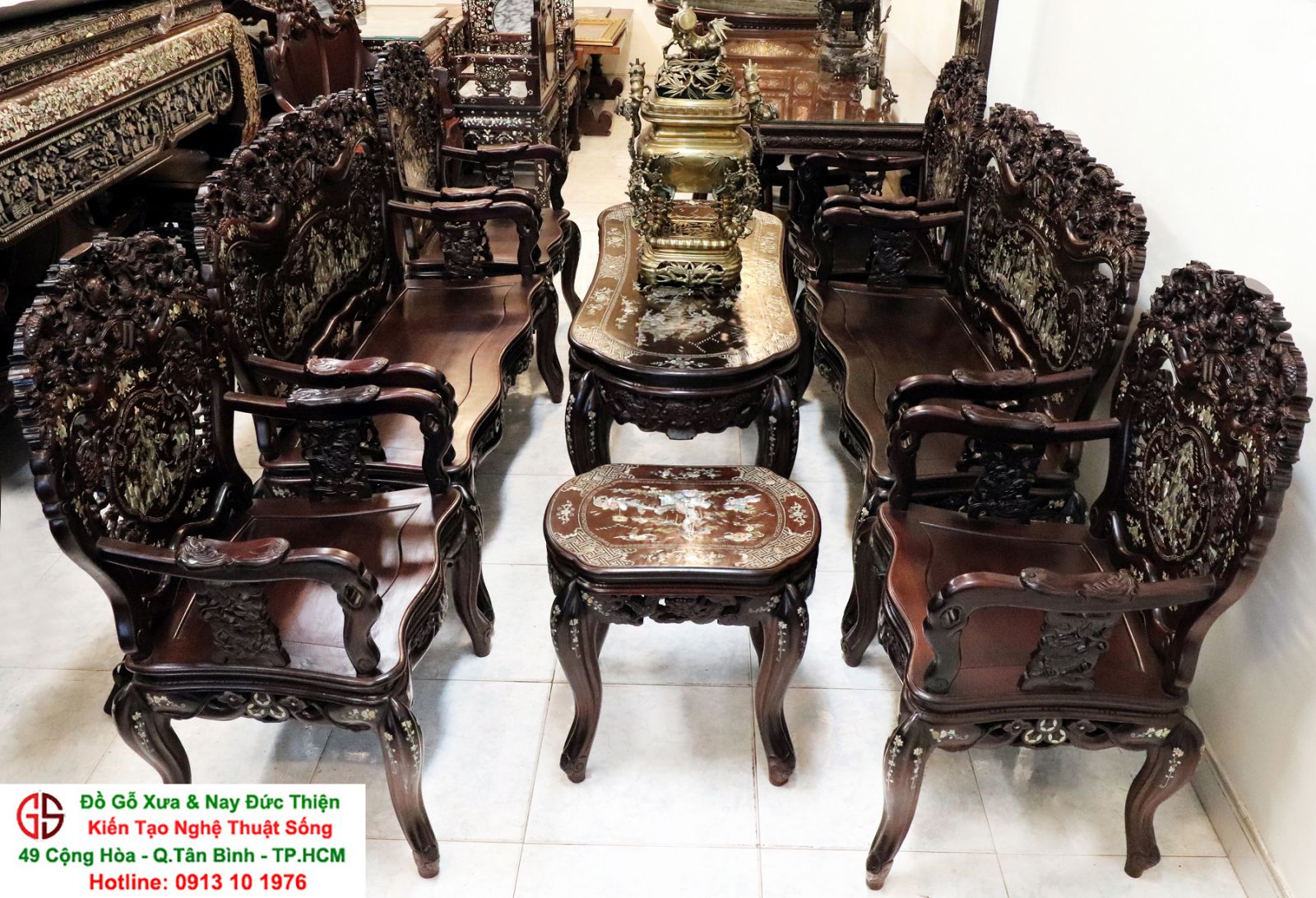 - Bàn ghế Louis, đôn trống gỗ trắc, bộ bàn ăn cẩn ốc, bàn ghế phương kỷ, bàn trung đường cẩn ốc xà cừ
