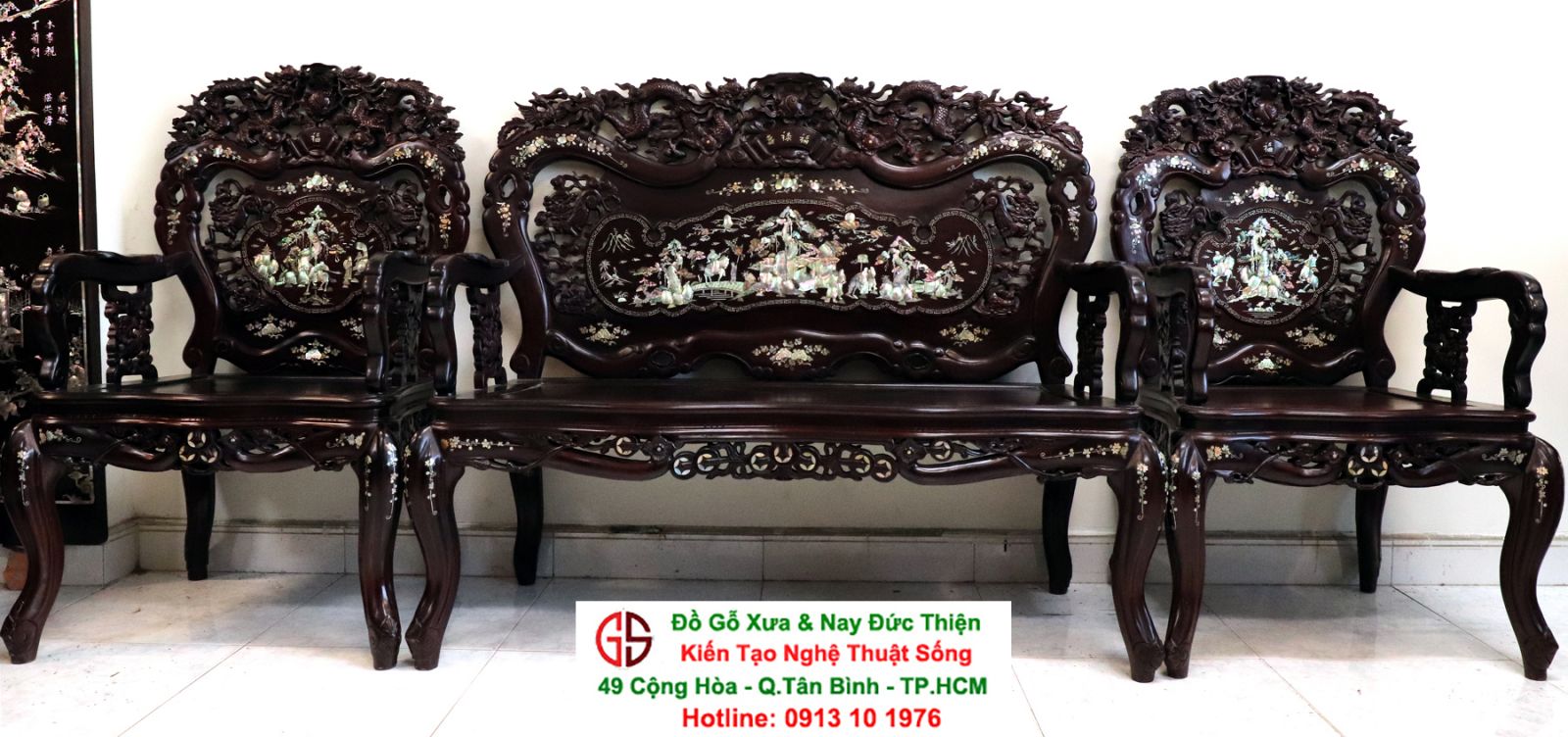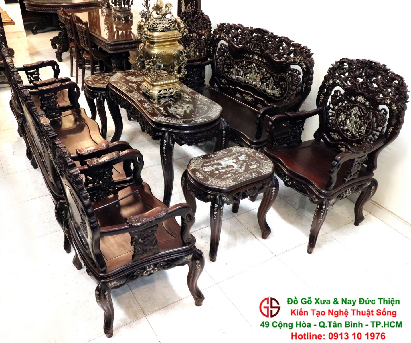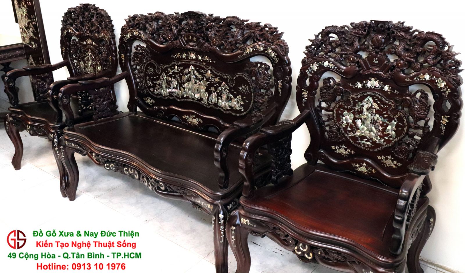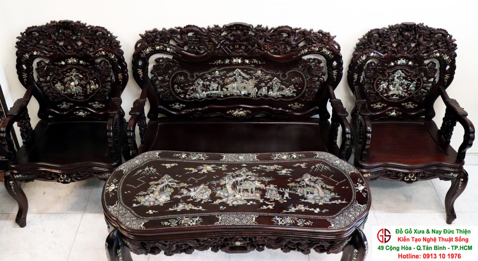 - Bàn ghế Louis, đôn trống gỗ trắc, bộ bàn ăn cẩn ốc, bàn ghế phương kỷ, bàn trung đường cẩn ốc xà cừ