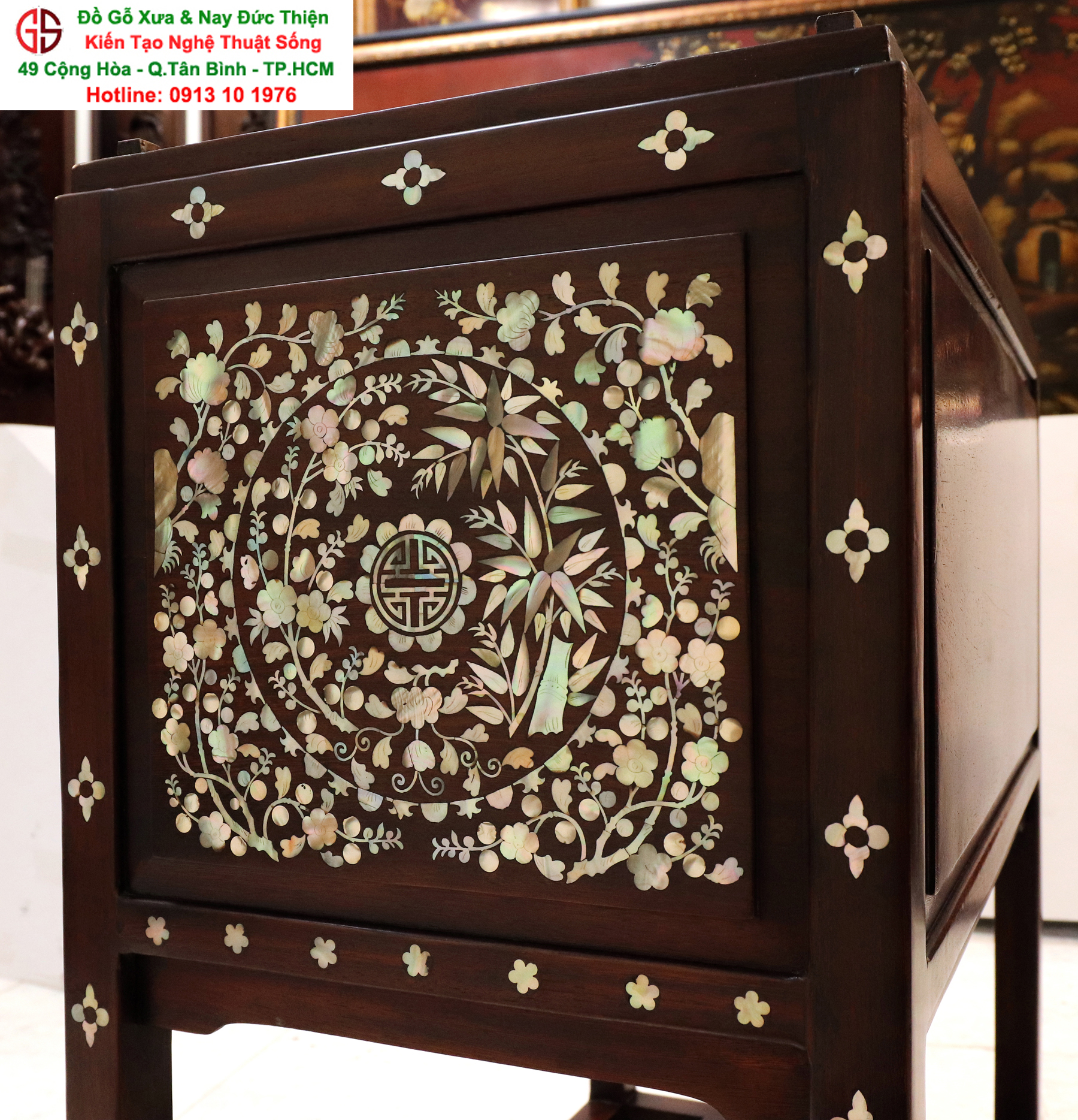 - Bàn ghế Louis, đôn trống gỗ trắc, bộ bàn ăn cẩn ốc, bàn ghế phương kỷ, bàn trung đường cẩn ốc xà cừ