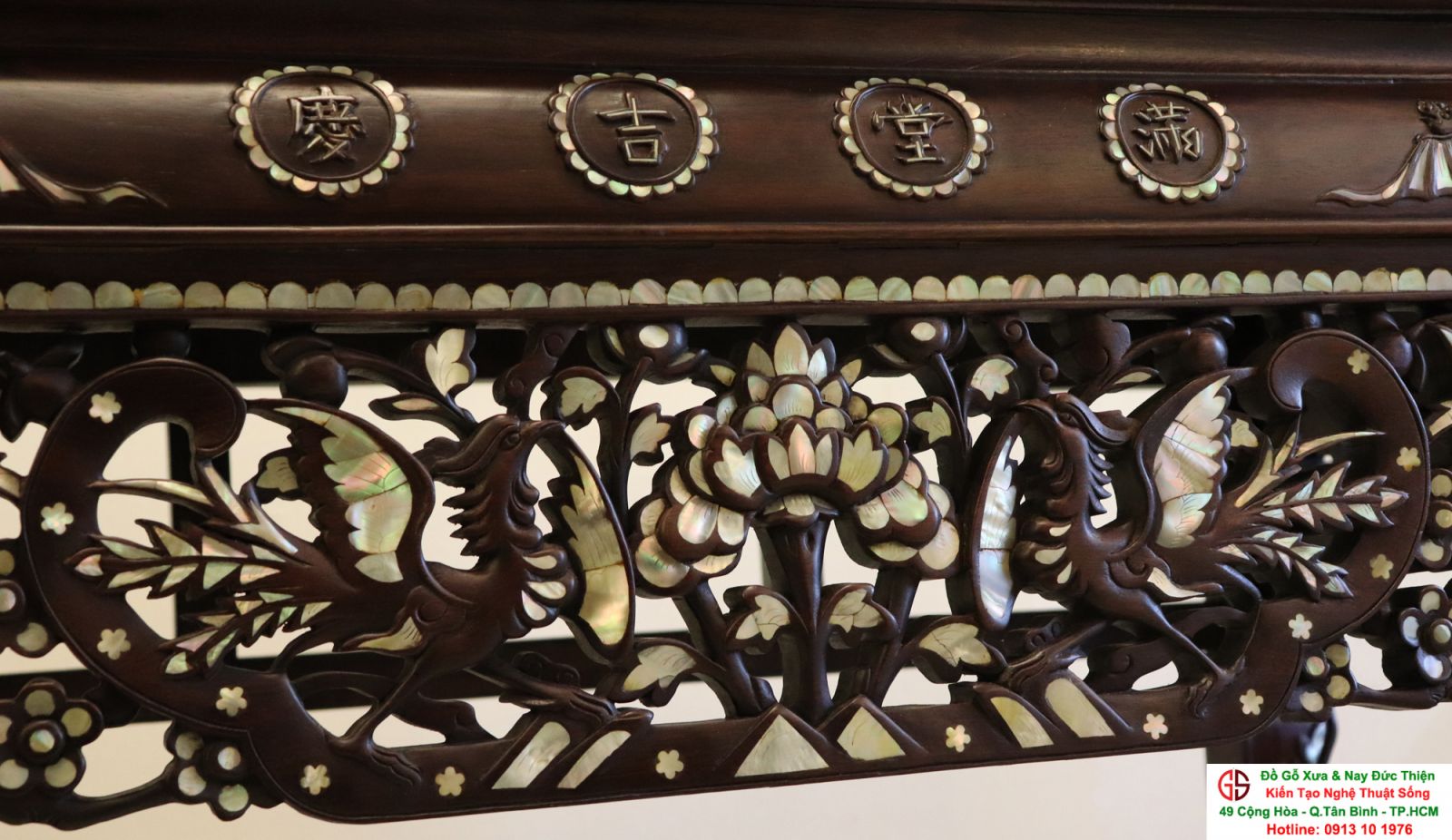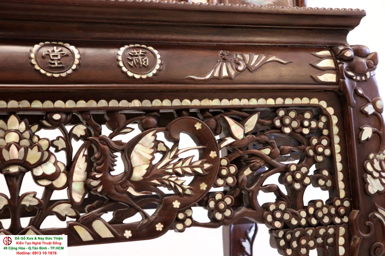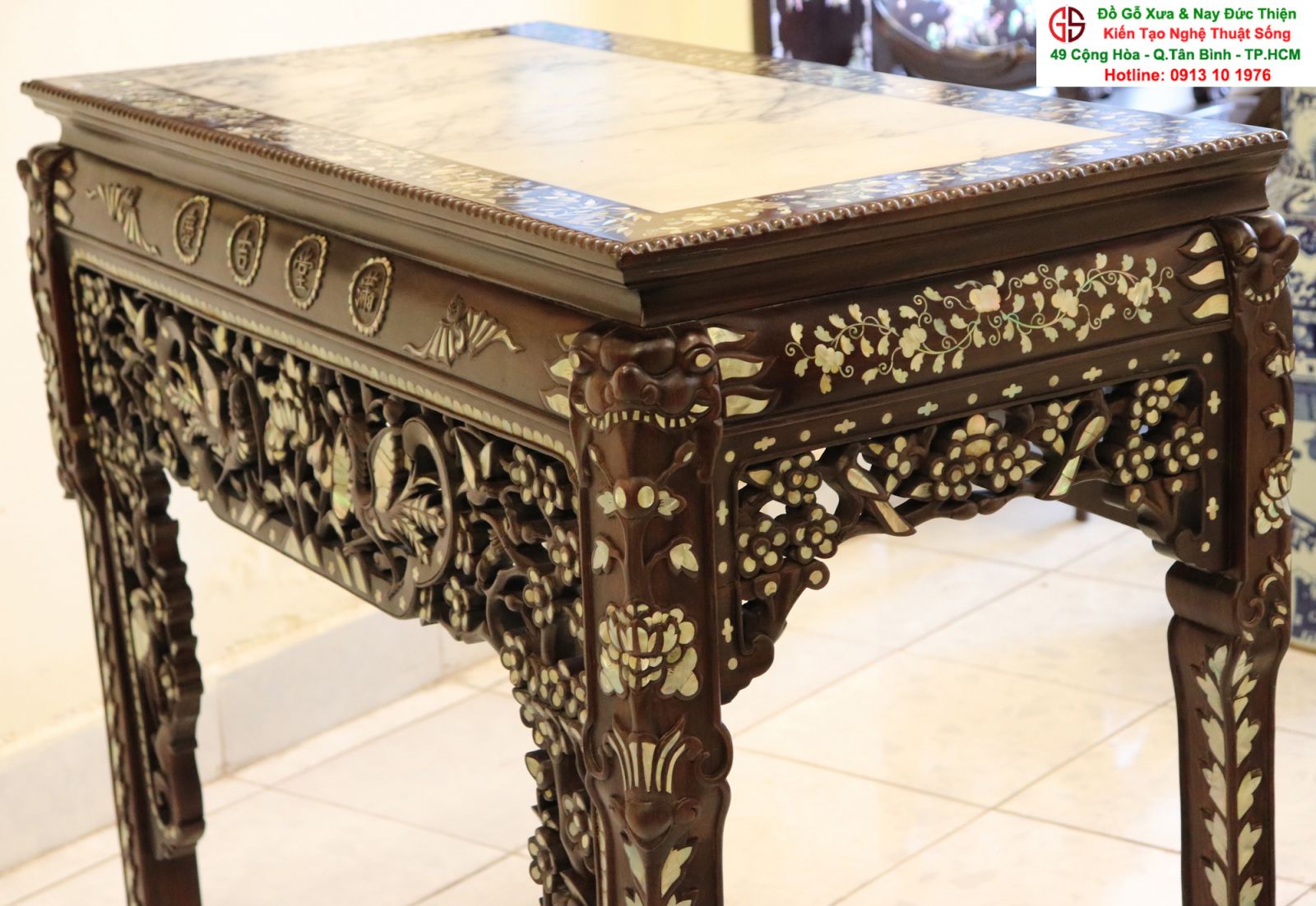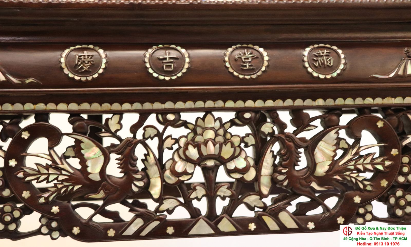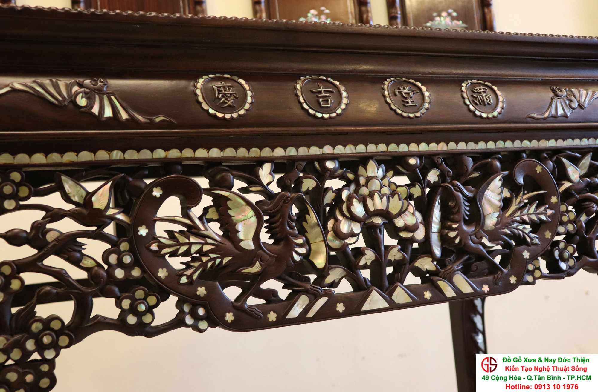 - Bàn ghế Louis, đôn trống gỗ trắc, bộ bàn ăn cẩn ốc, bàn ghế phương kỷ, bàn trung đường cẩn ốc xà cừ