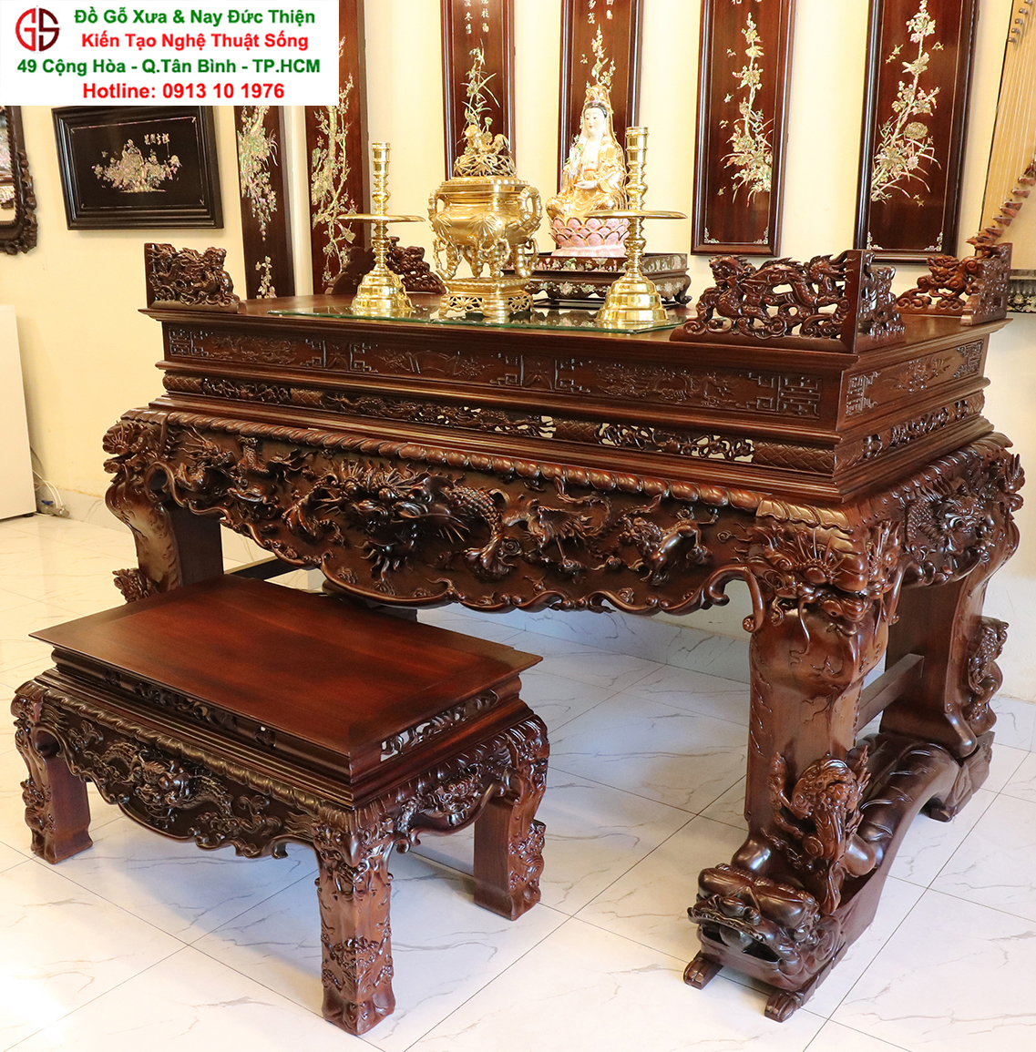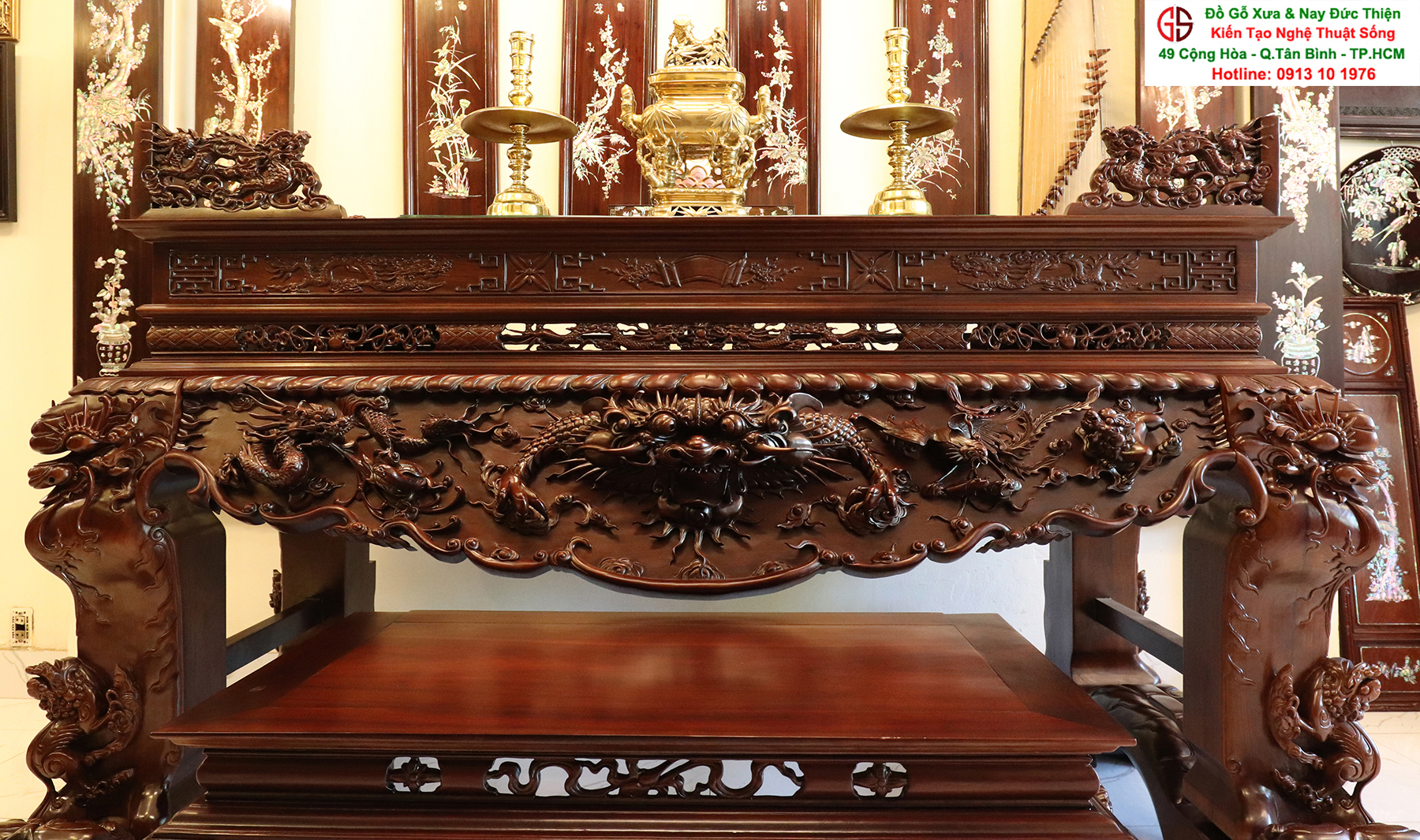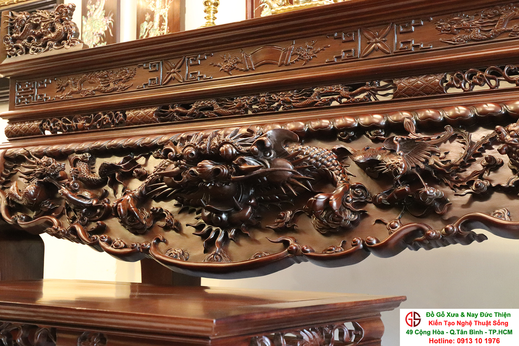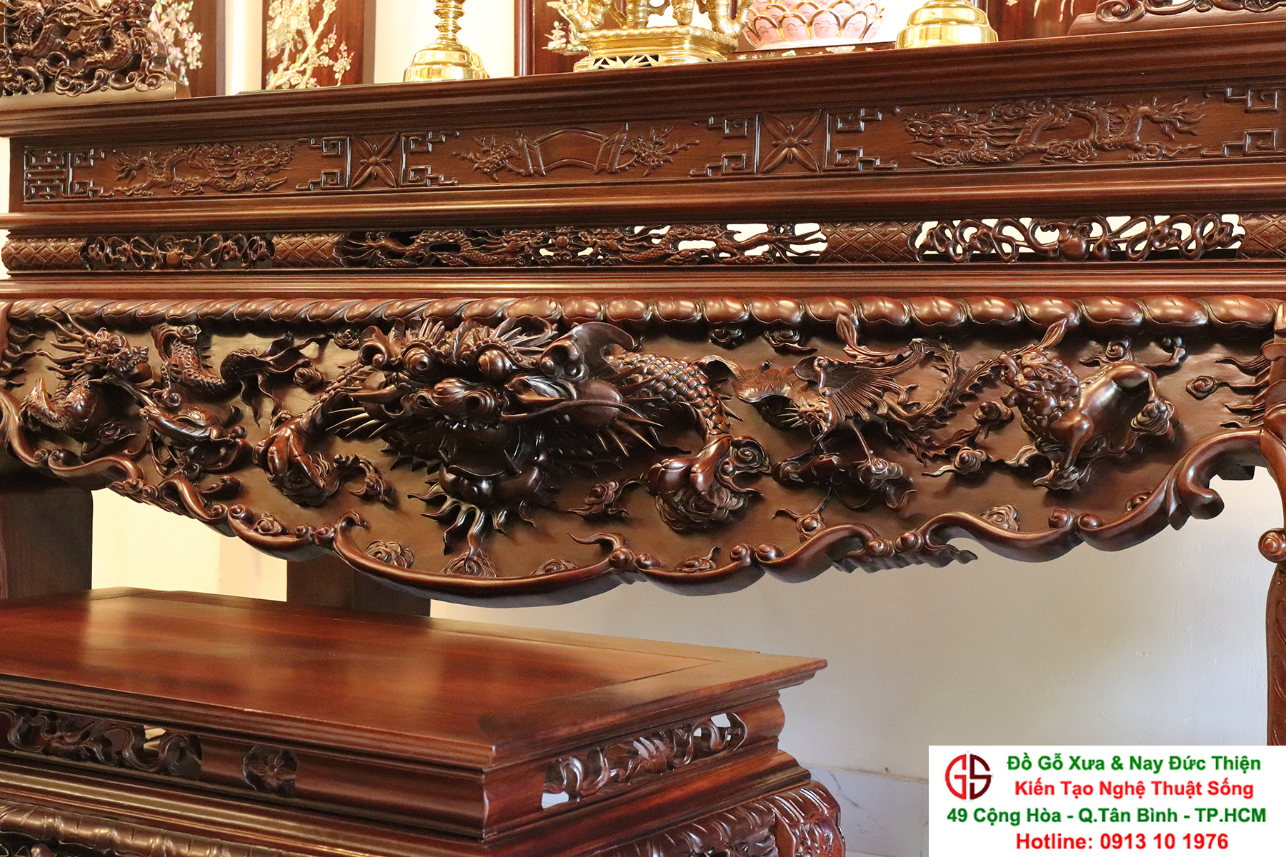 Bàn thờ tứ linh đục chạm đẹp tại Sài Gòn,nơi mua bán bàn thờ đục chạm đẹp tại quận Tân Bình