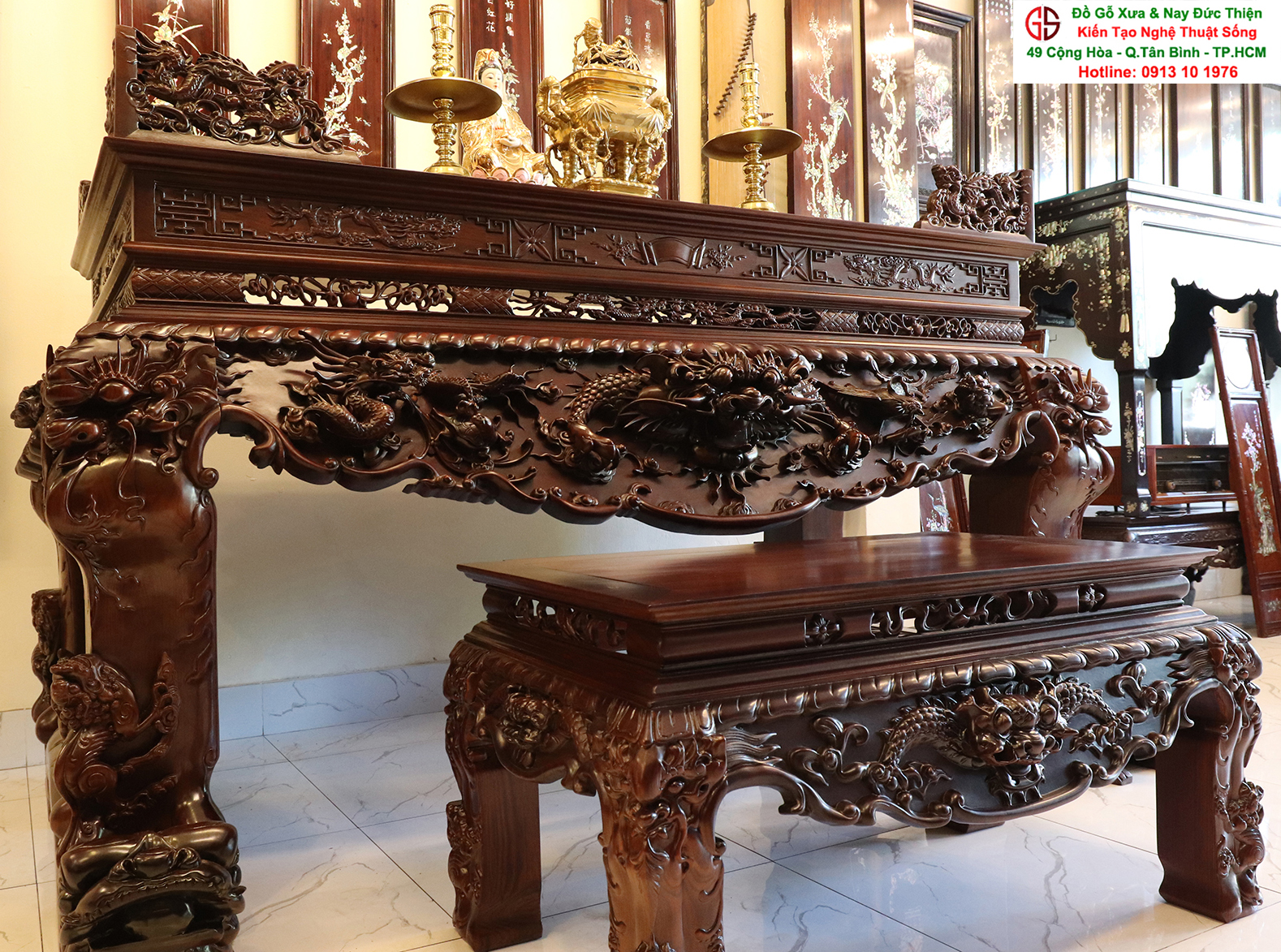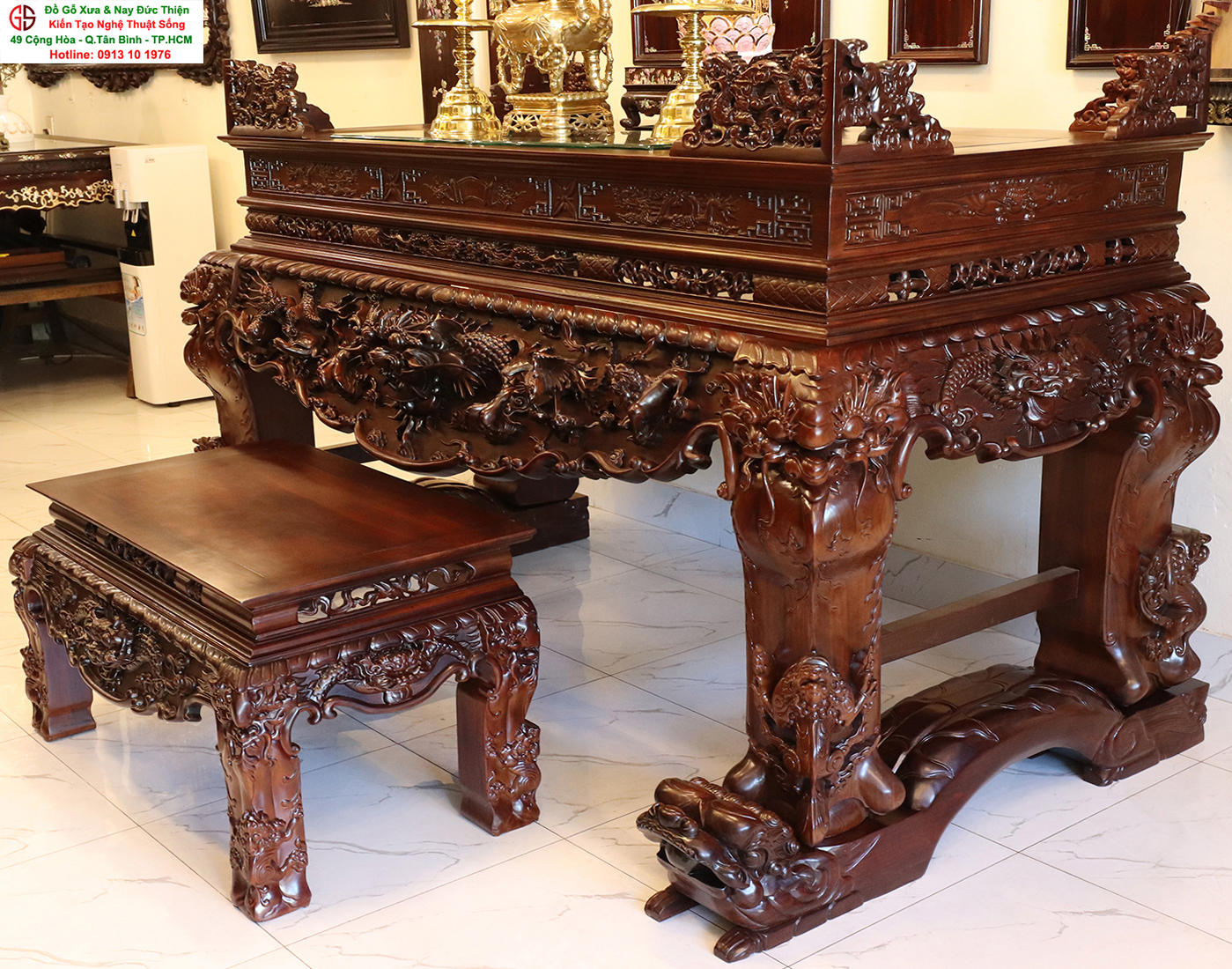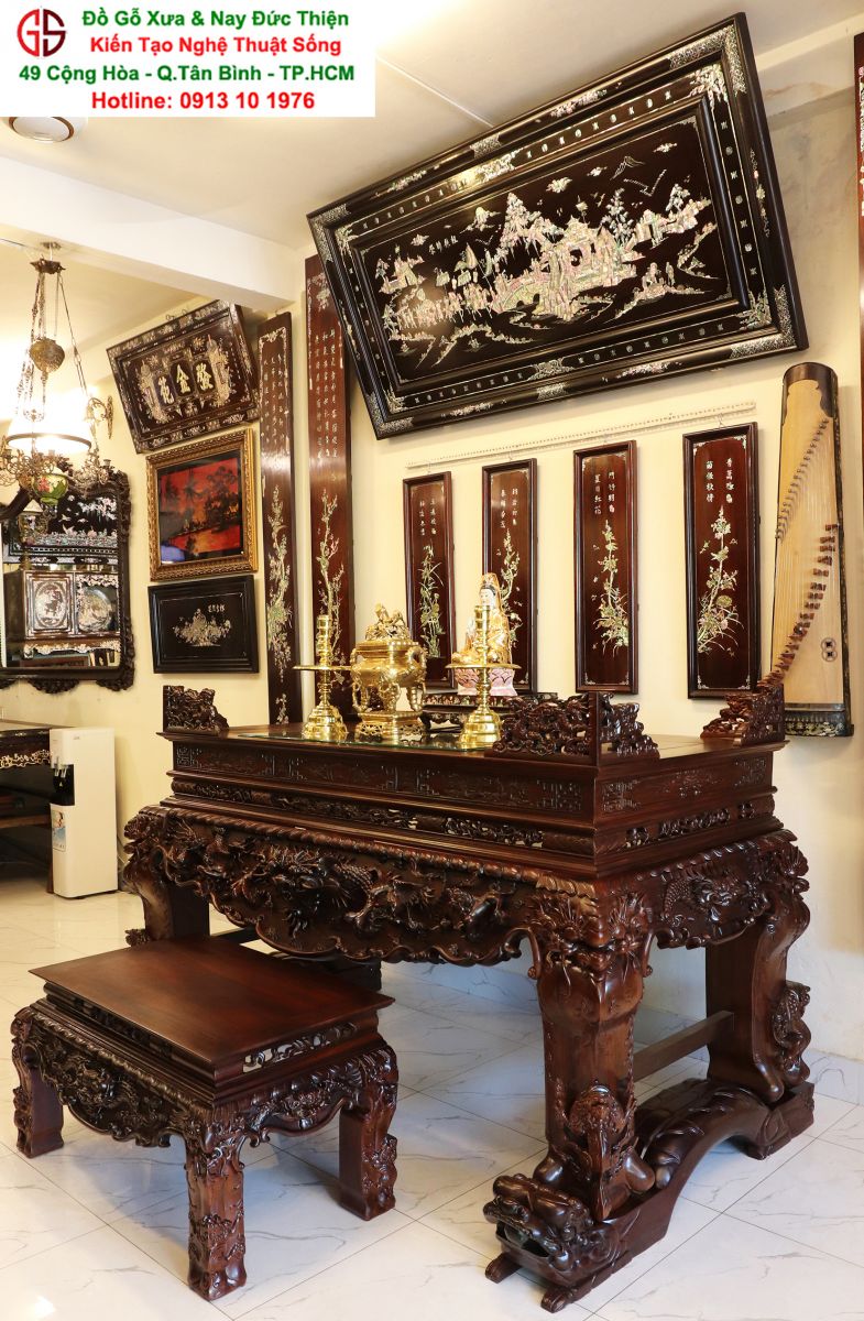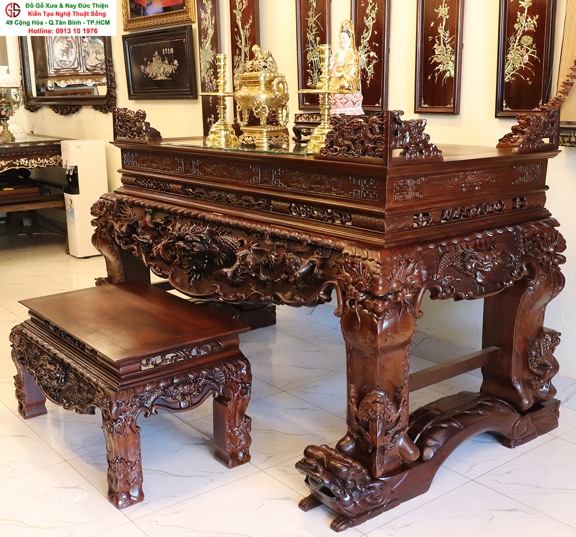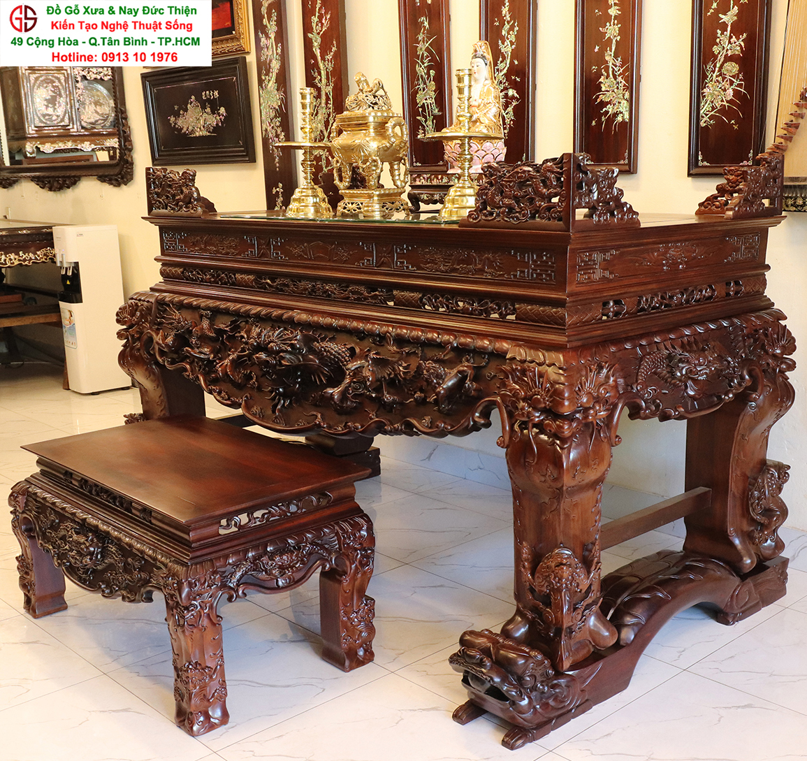 Bàn thờ tứ linh đục chạm đẹp tại Sài Gòn,nơi mua bán bàn thờ đục chạm đẹp tại quận Tân Bình