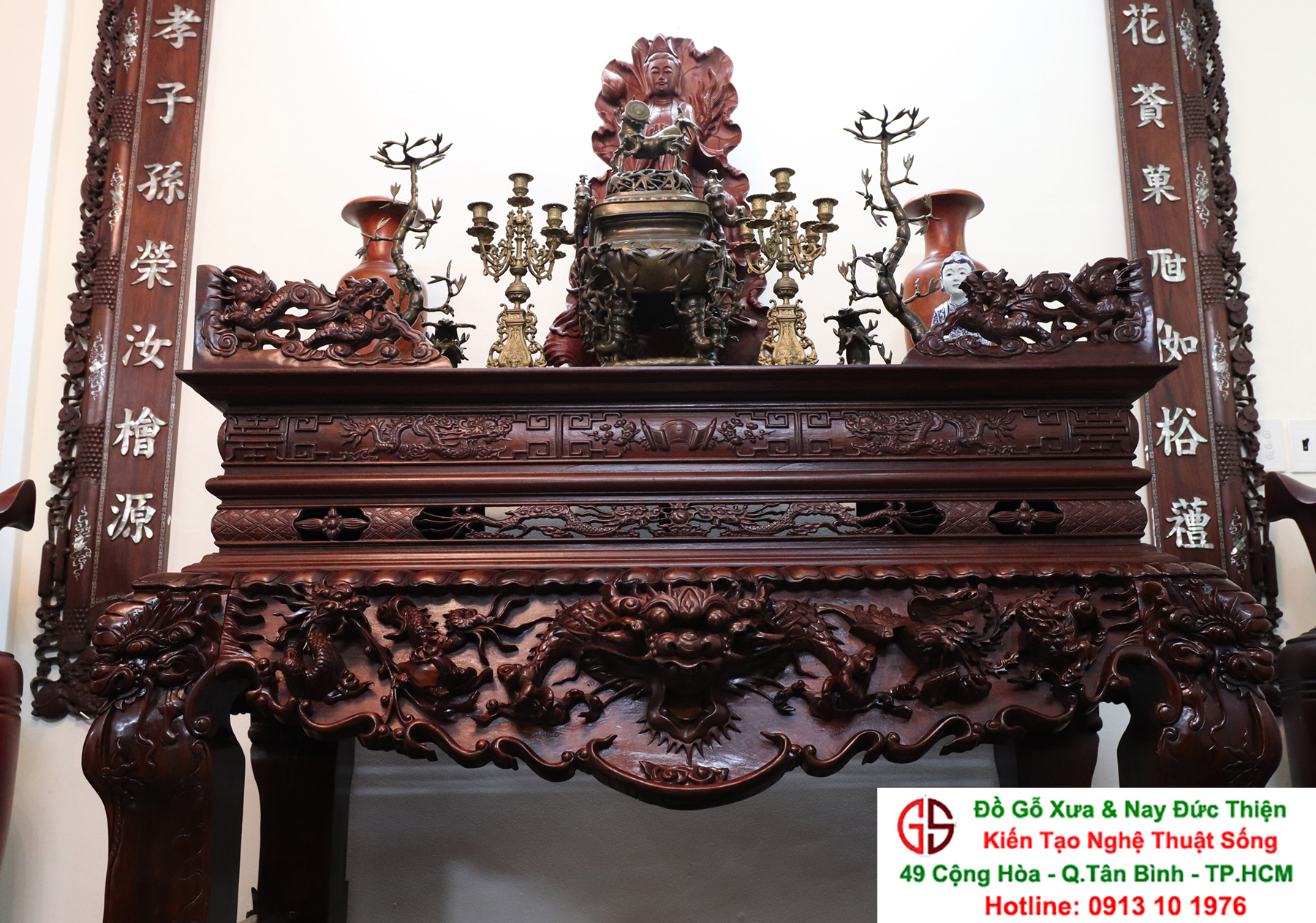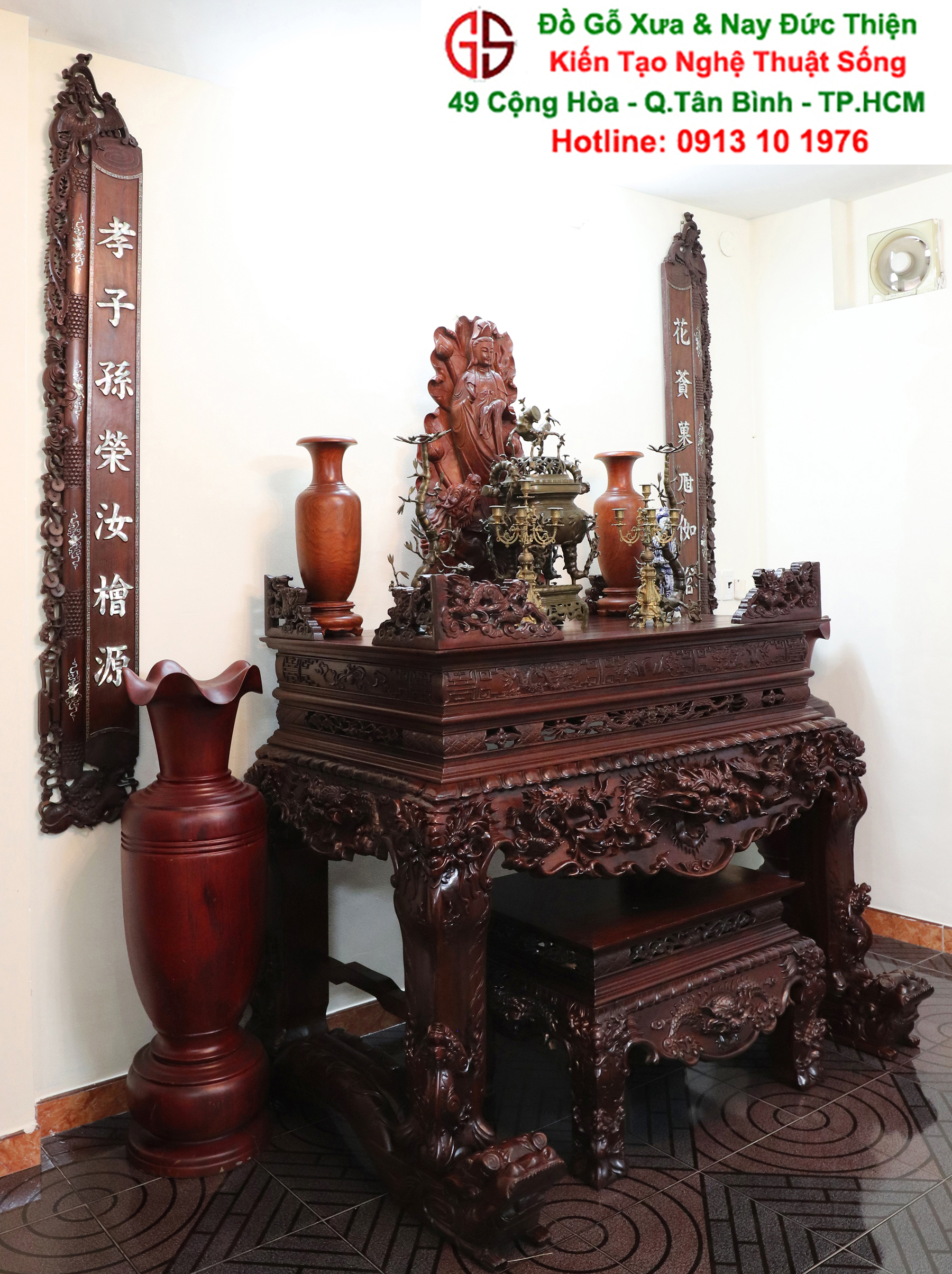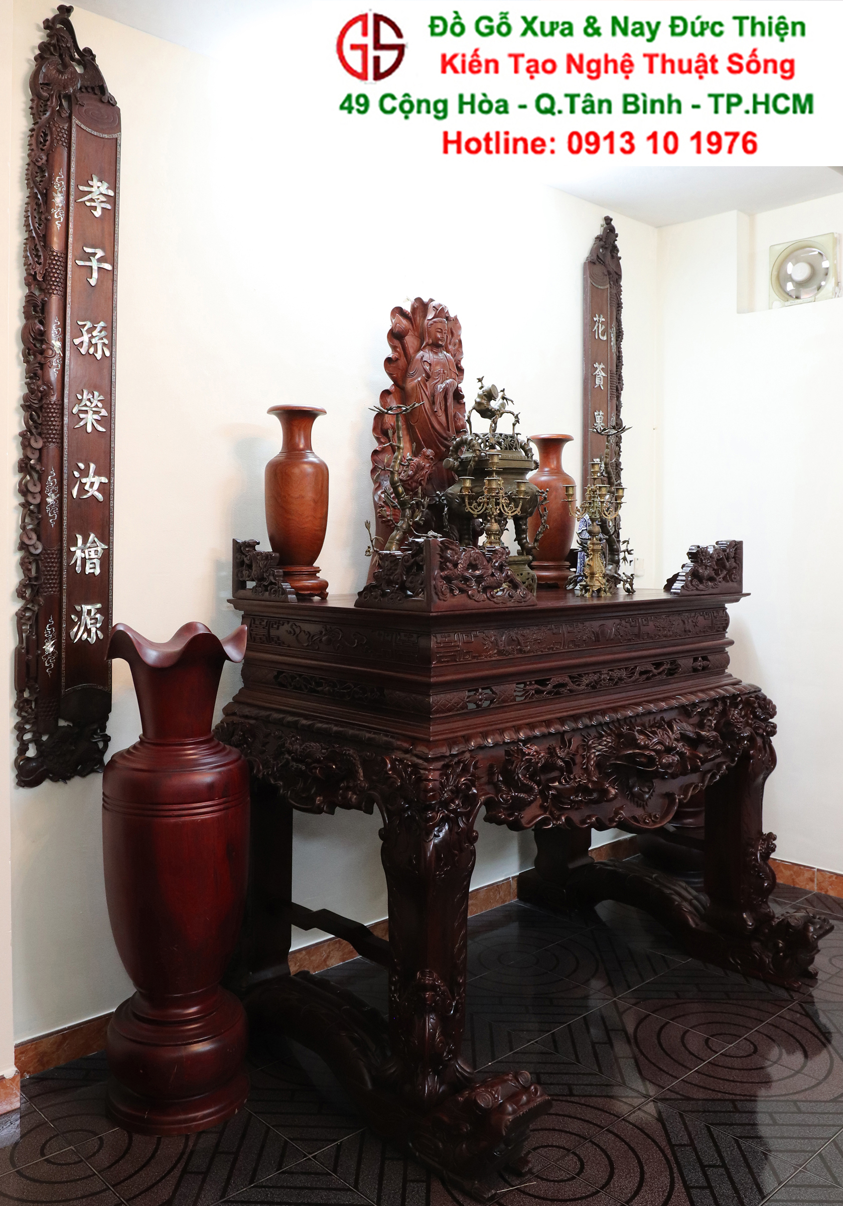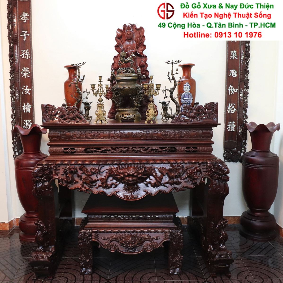 - Đồ Thờ: Bàn thờ, bàn tứ linh, nghi thờ, đại tự thờ, tủ thờ đẹp, tủ thờ cẩn xà cừ, tủ thờ cẩm lai, tủ thờ gò công, tủ thờ 13 chám, tủ thờ nhị thập tứ hiếu.