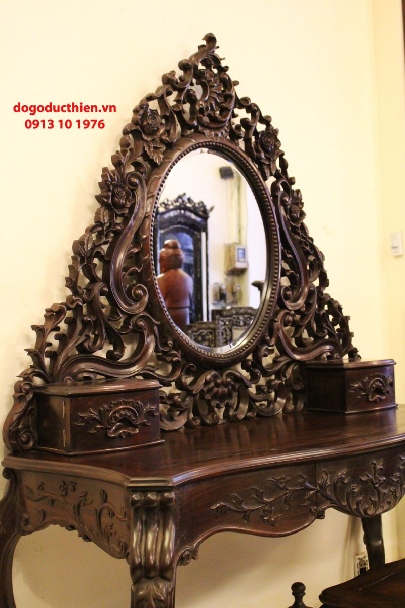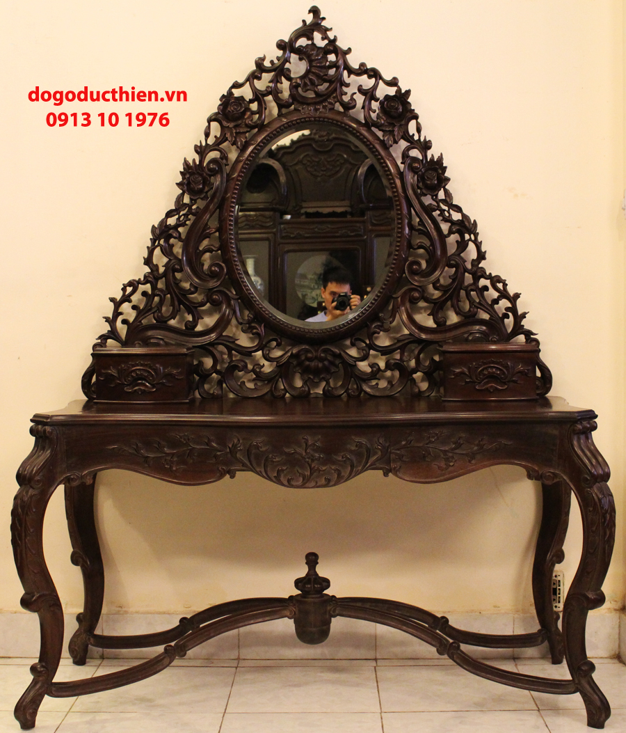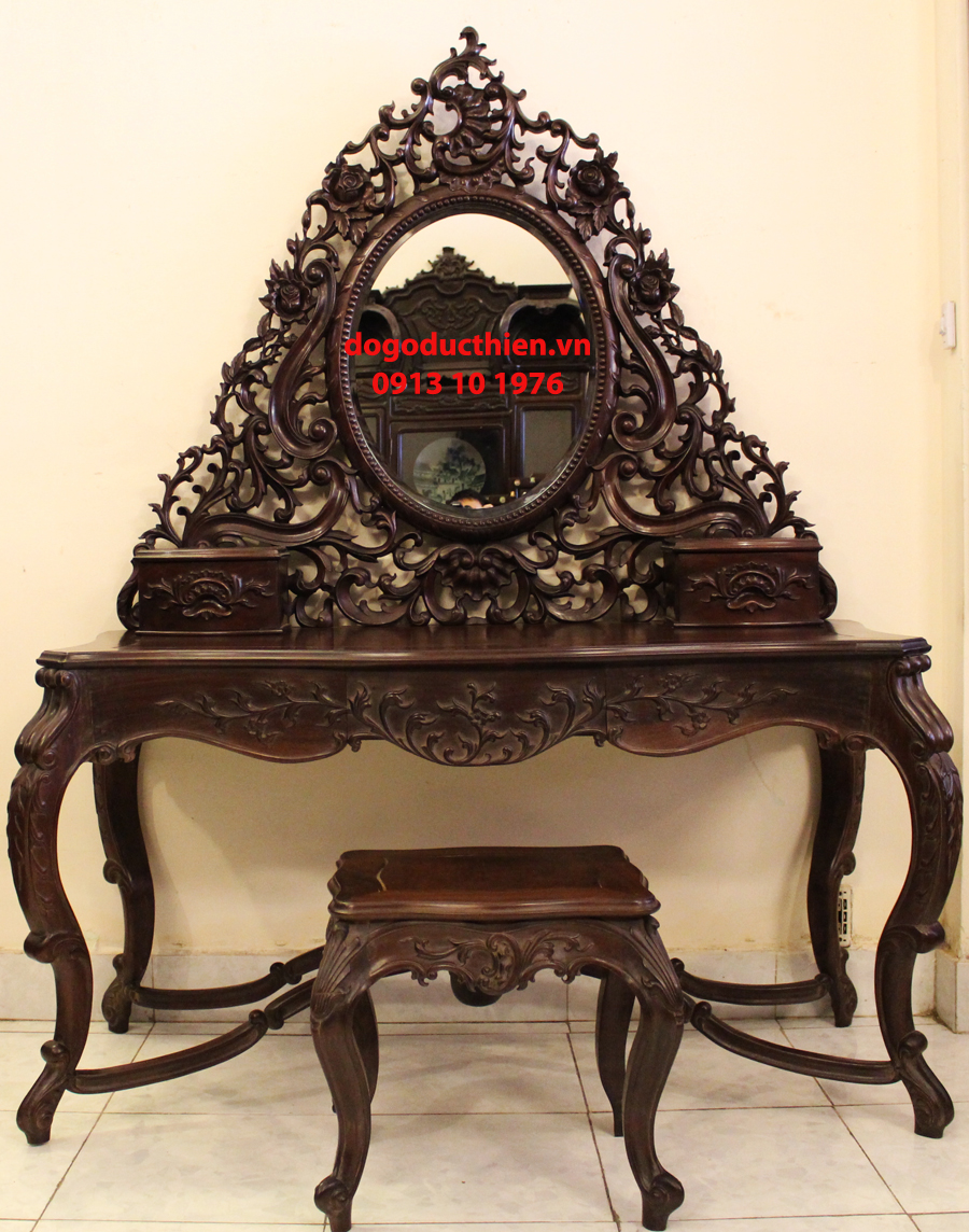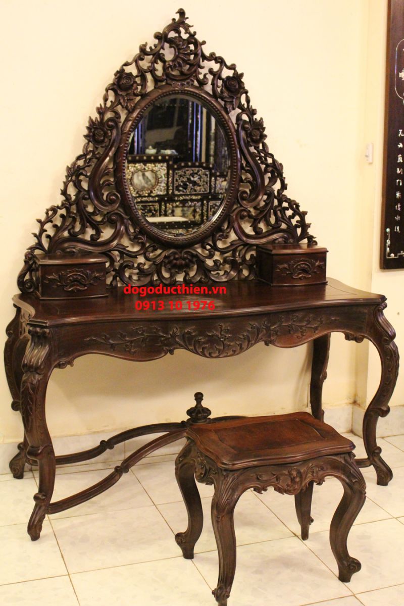 Được đánh giá là một trong số ít những chiếc bàn phấn trang điểm theo phong cách Louis Pháp, cầu kỳ, sang trọng bậc nhất từ xưa tới nay