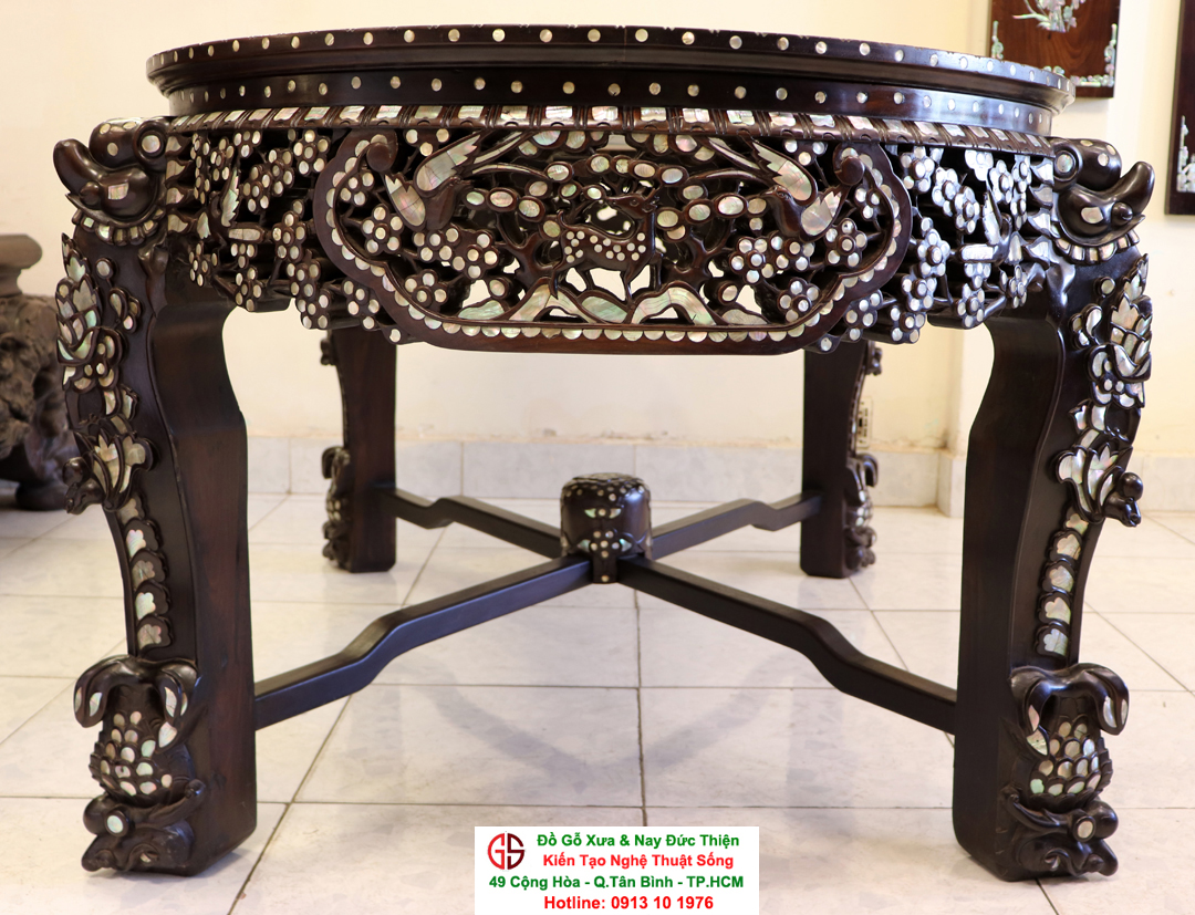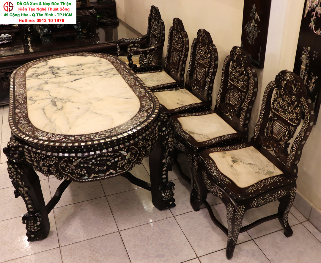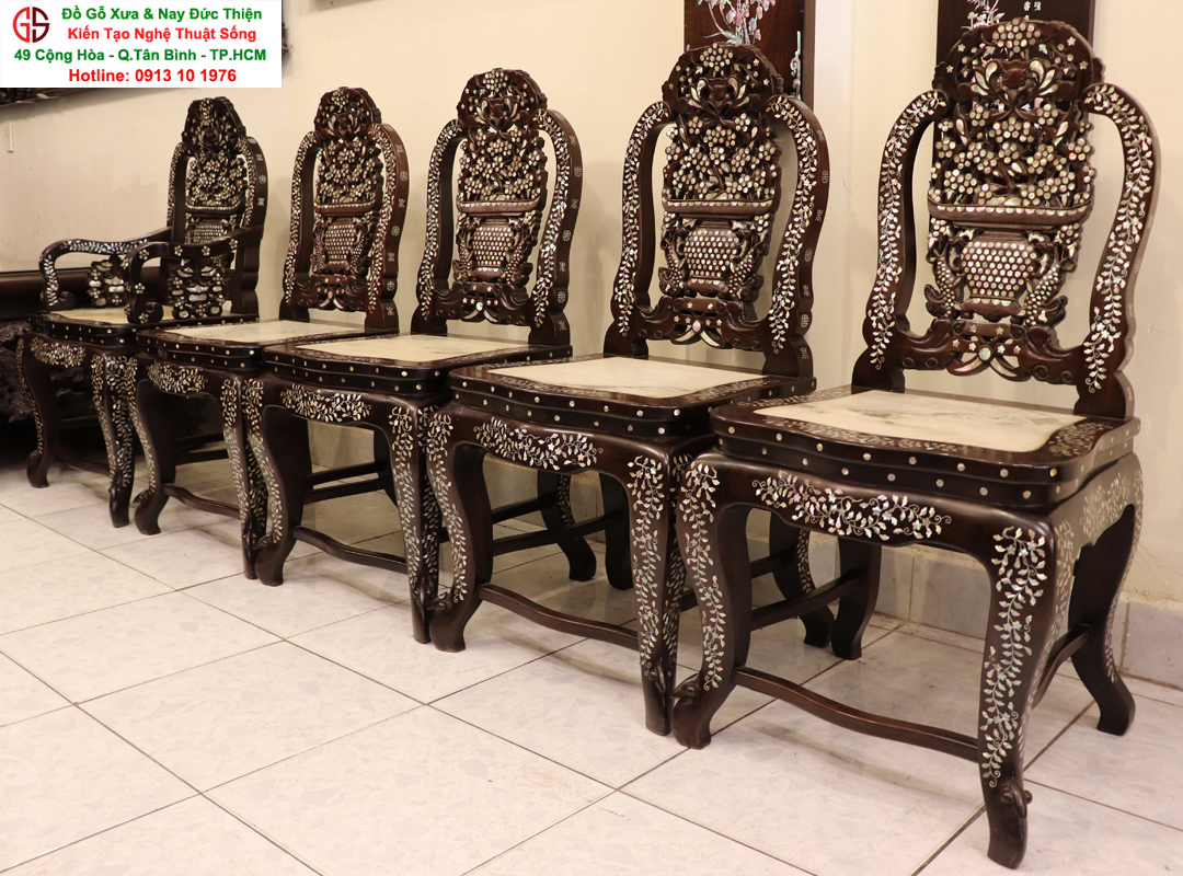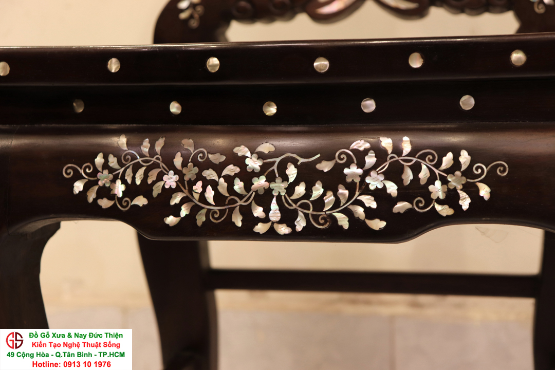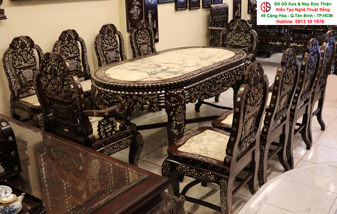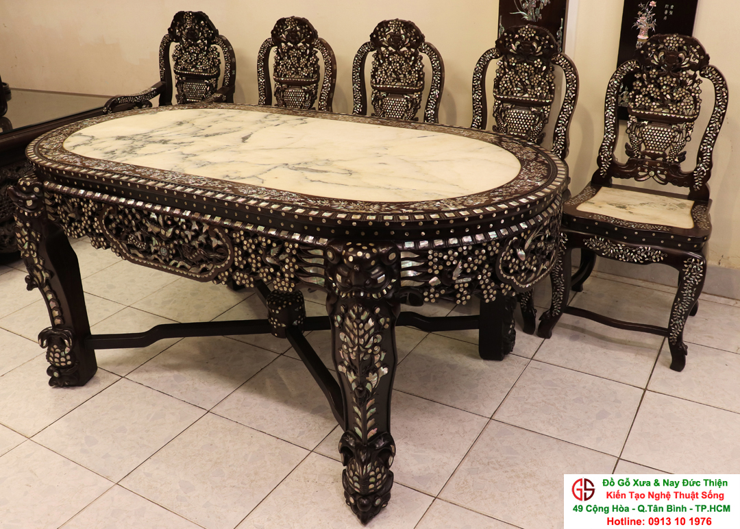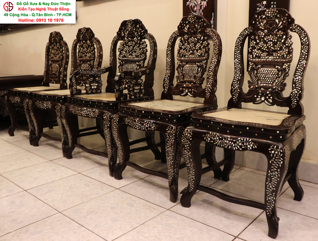 - Bàn ghế Louis, đôn trống gỗ trắc, bộ bàn ăn cẩn ốc, bàn ghế phương kỷ, bàn trung đường cẩn ốc xà cừ