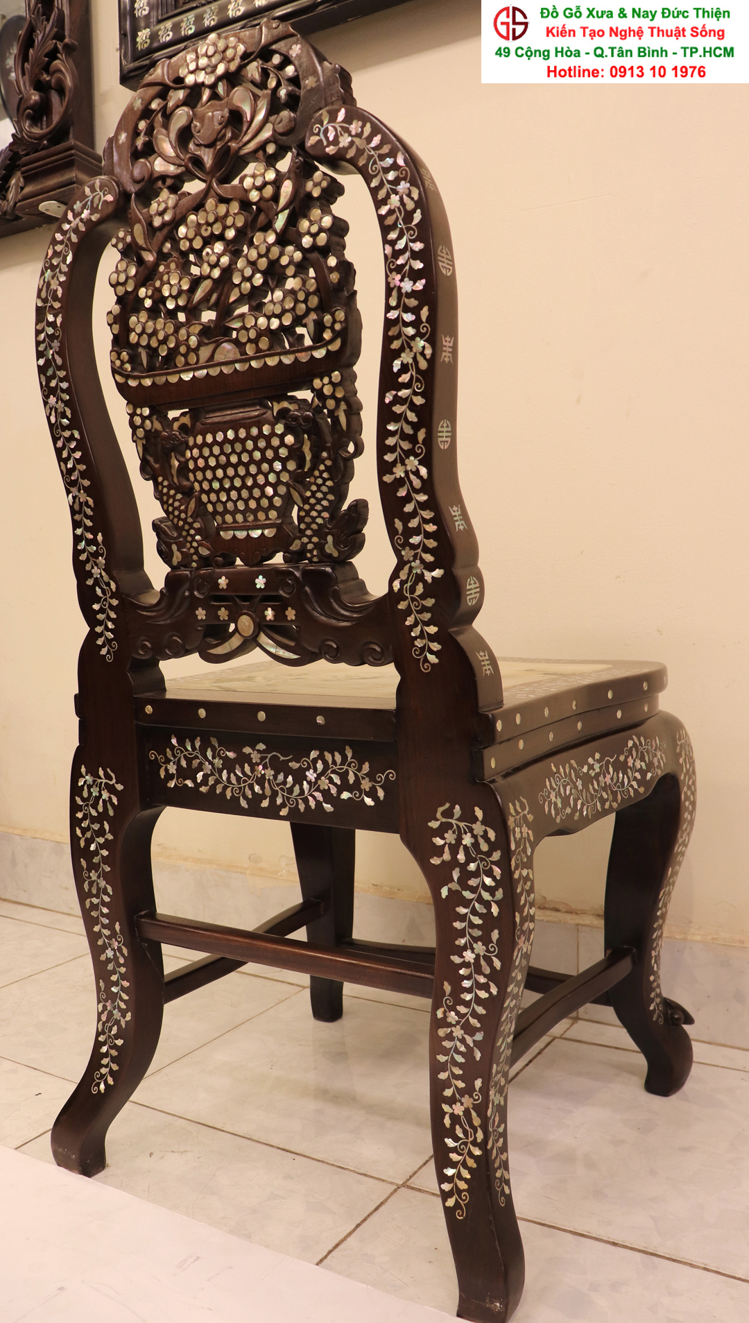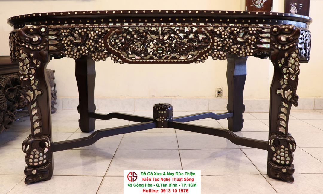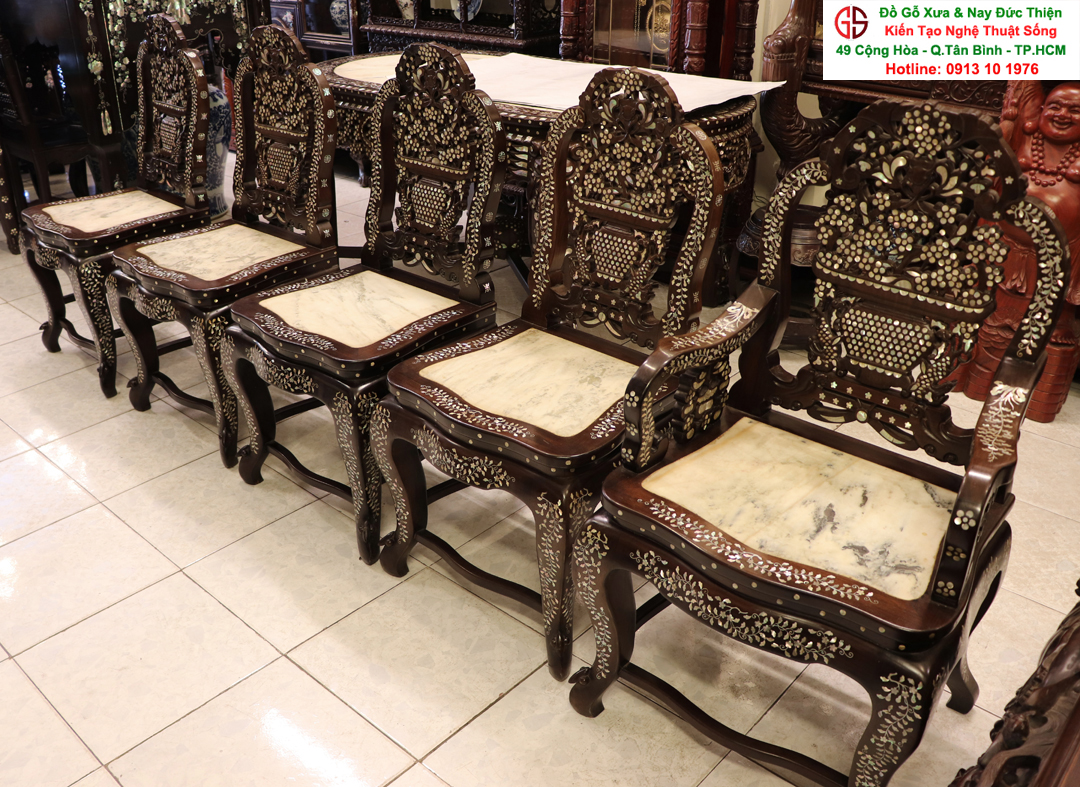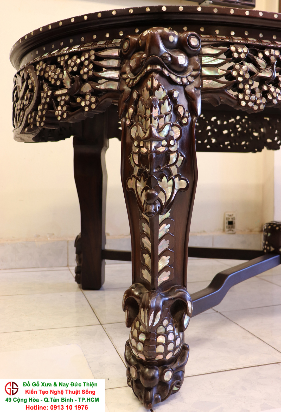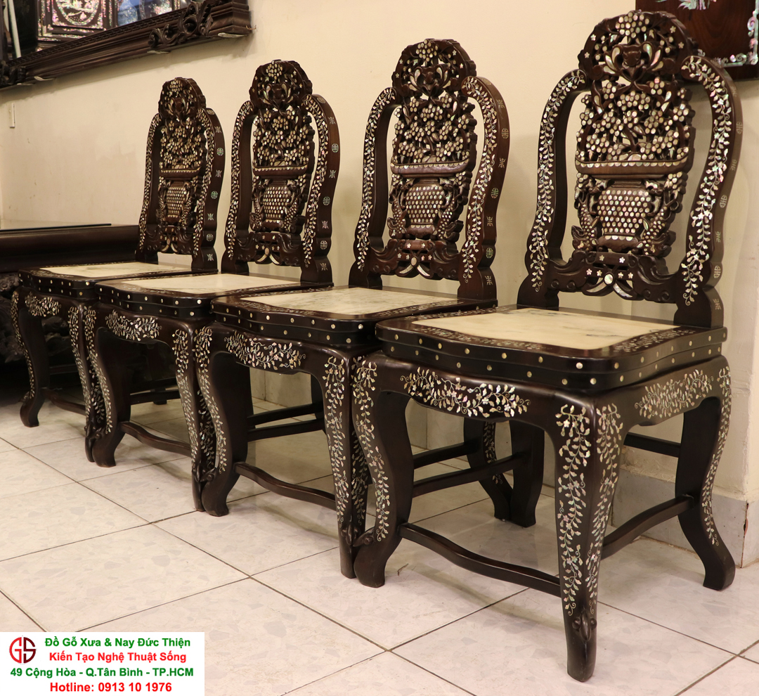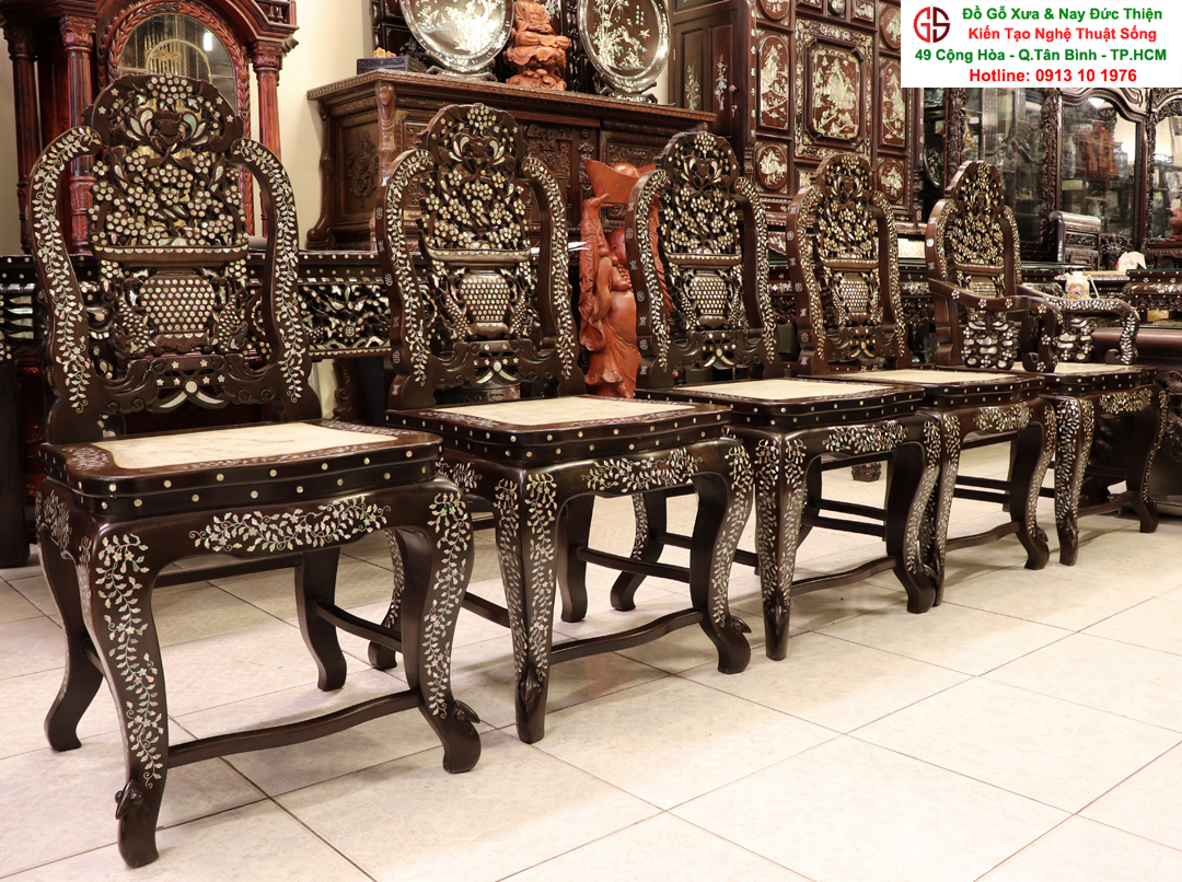 - Bàn ghế Louis, đôn trống gỗ trắc, bộ bàn ăn cẩn ốc, bàn ghế phương kỷ, bàn trung đường cẩn ốc xà cừ