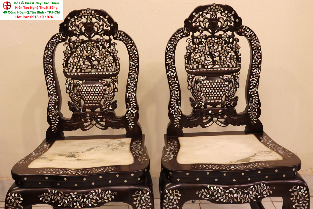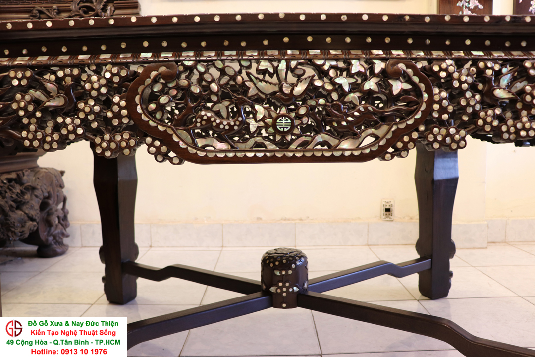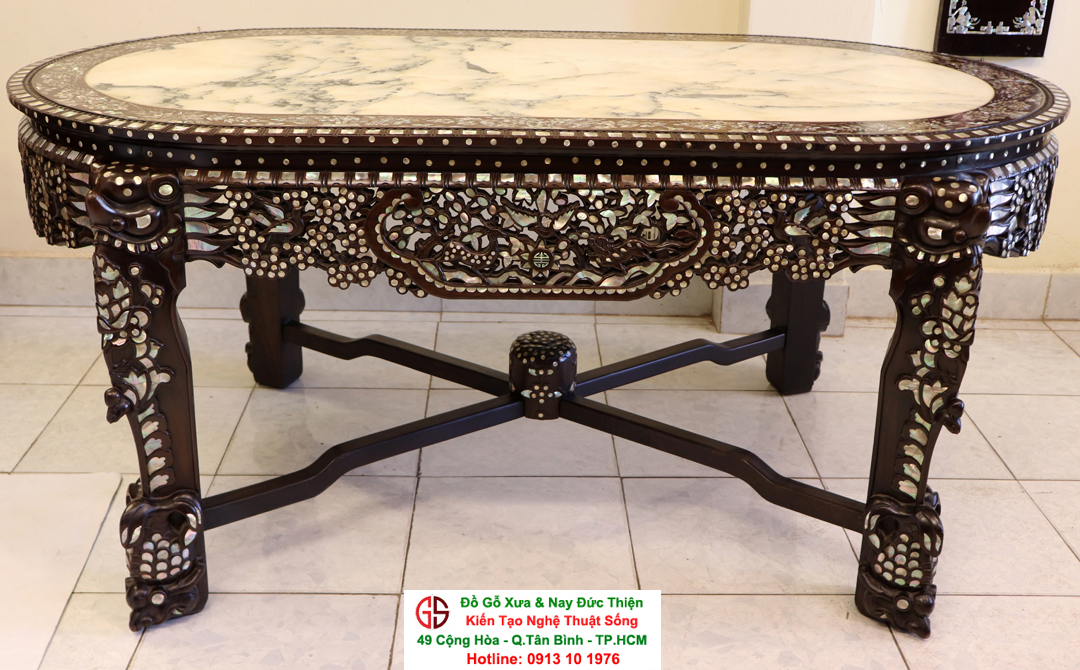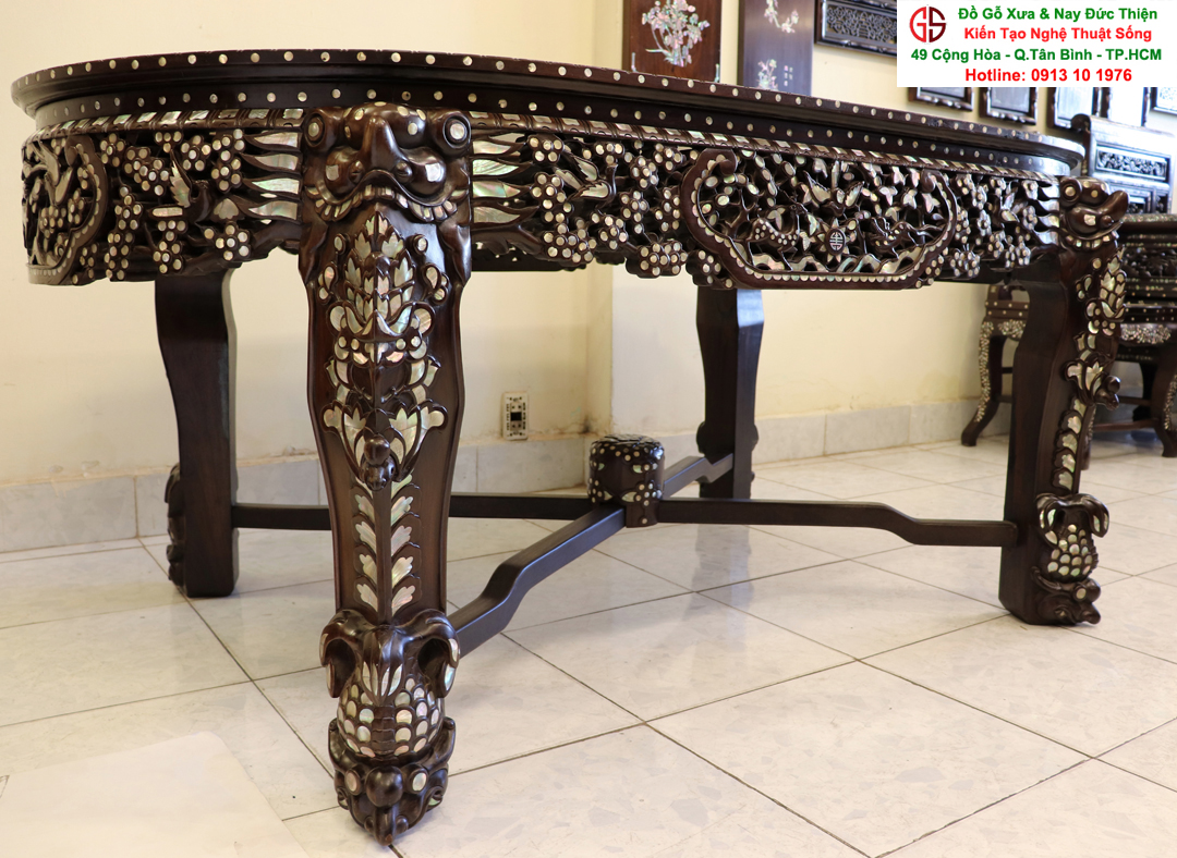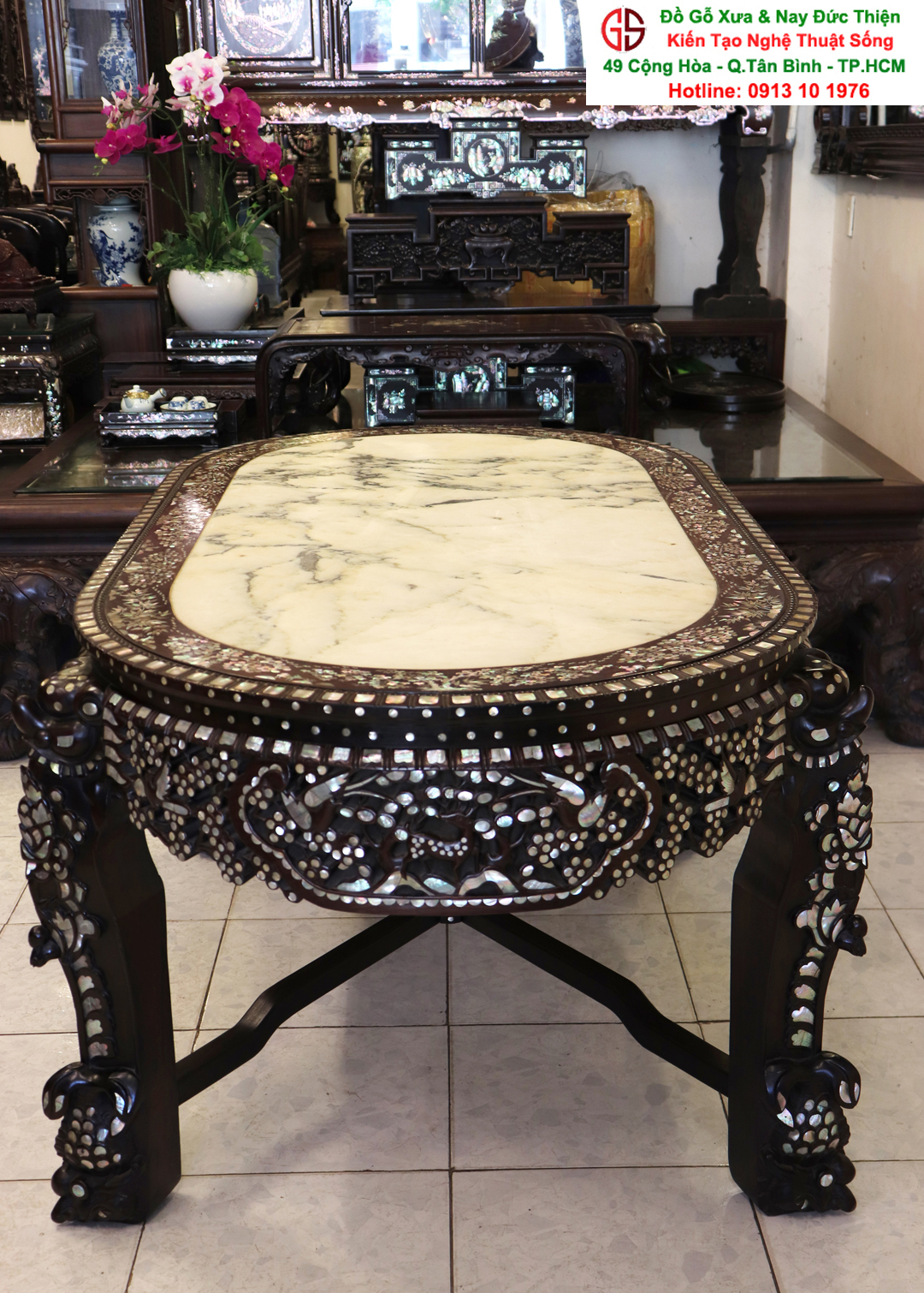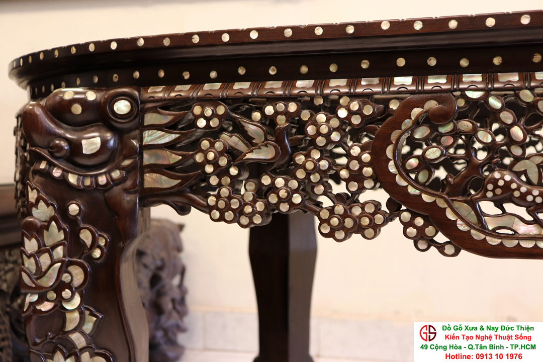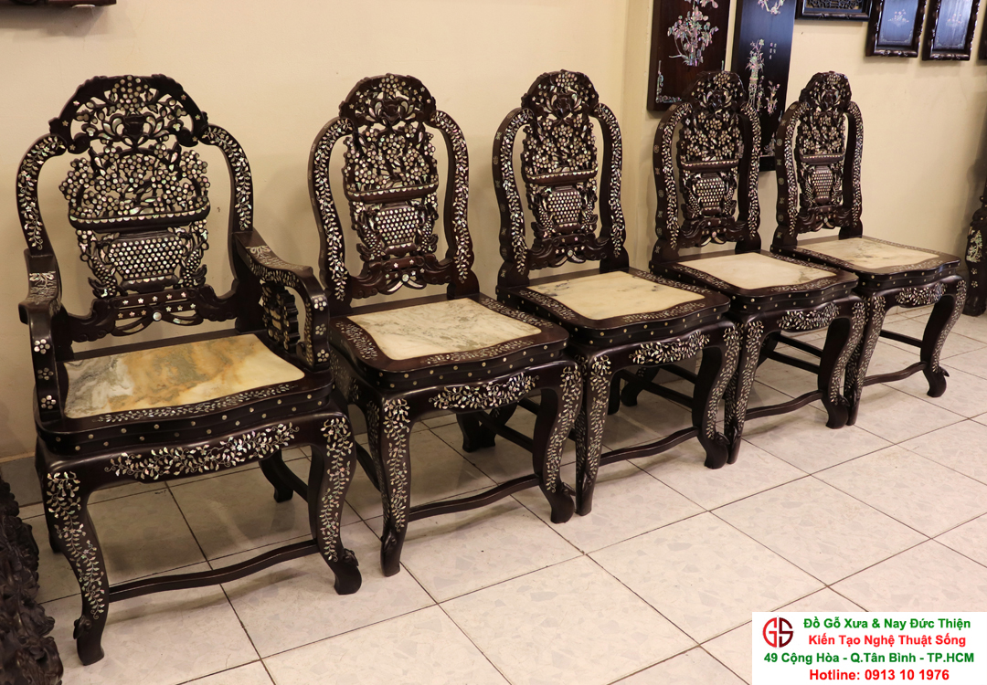 - Bàn ghế Louis, đôn trống gỗ trắc, bộ bàn ăn cẩn ốc, bàn ghế phương kỷ, bàn trung đường cẩn ốc xà cừ