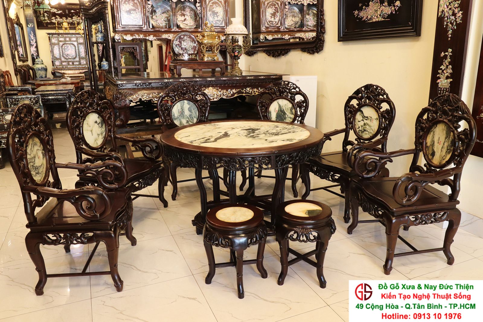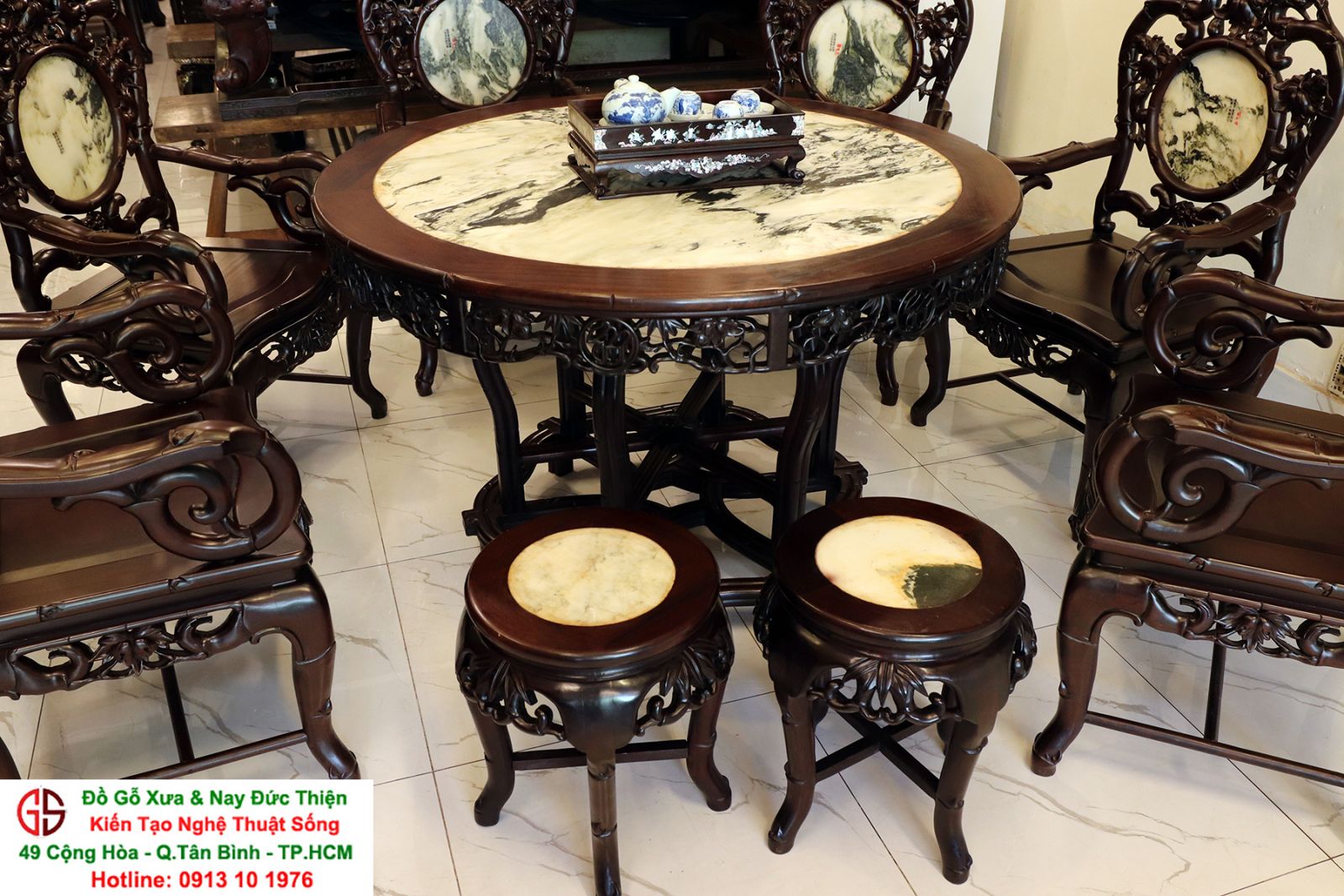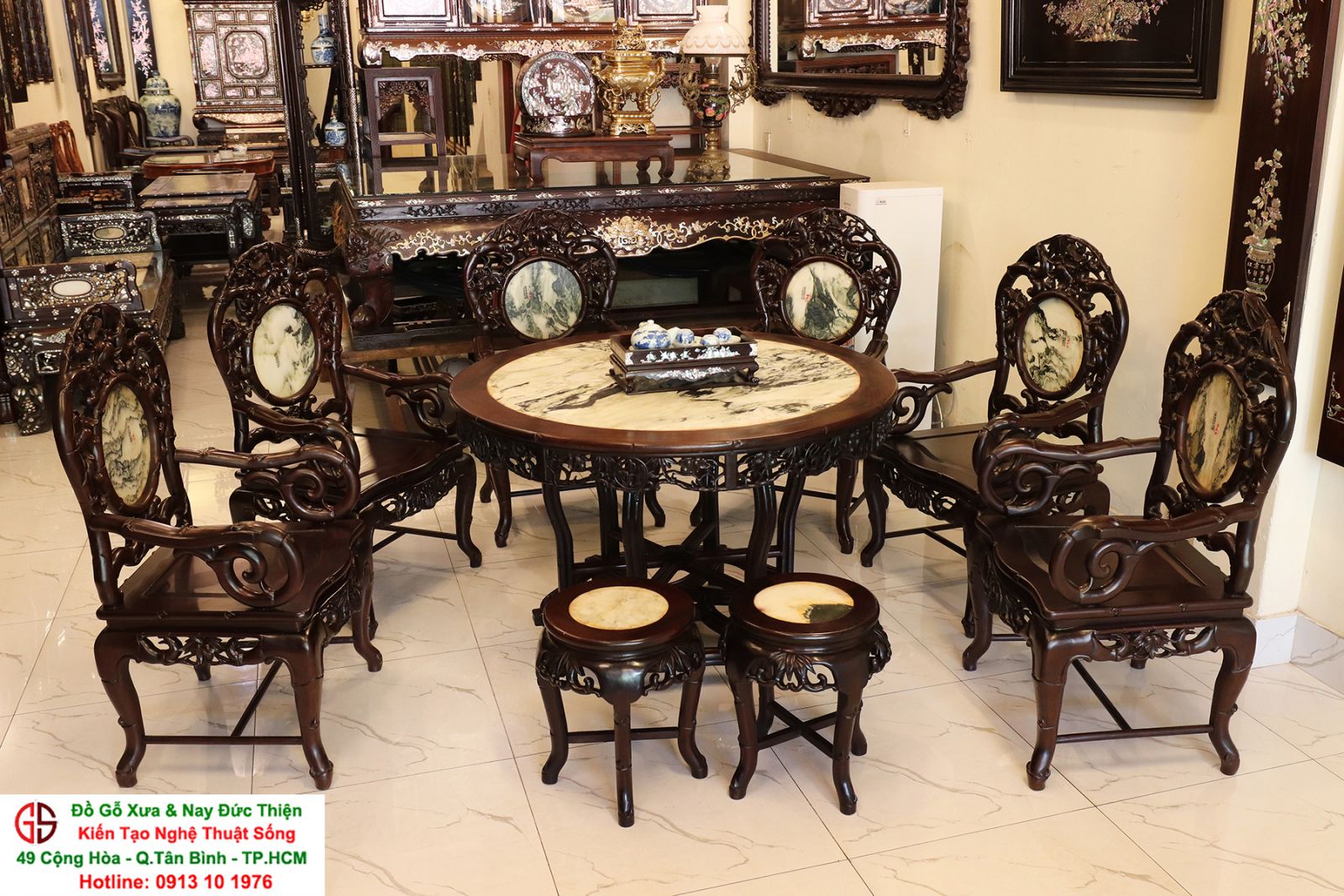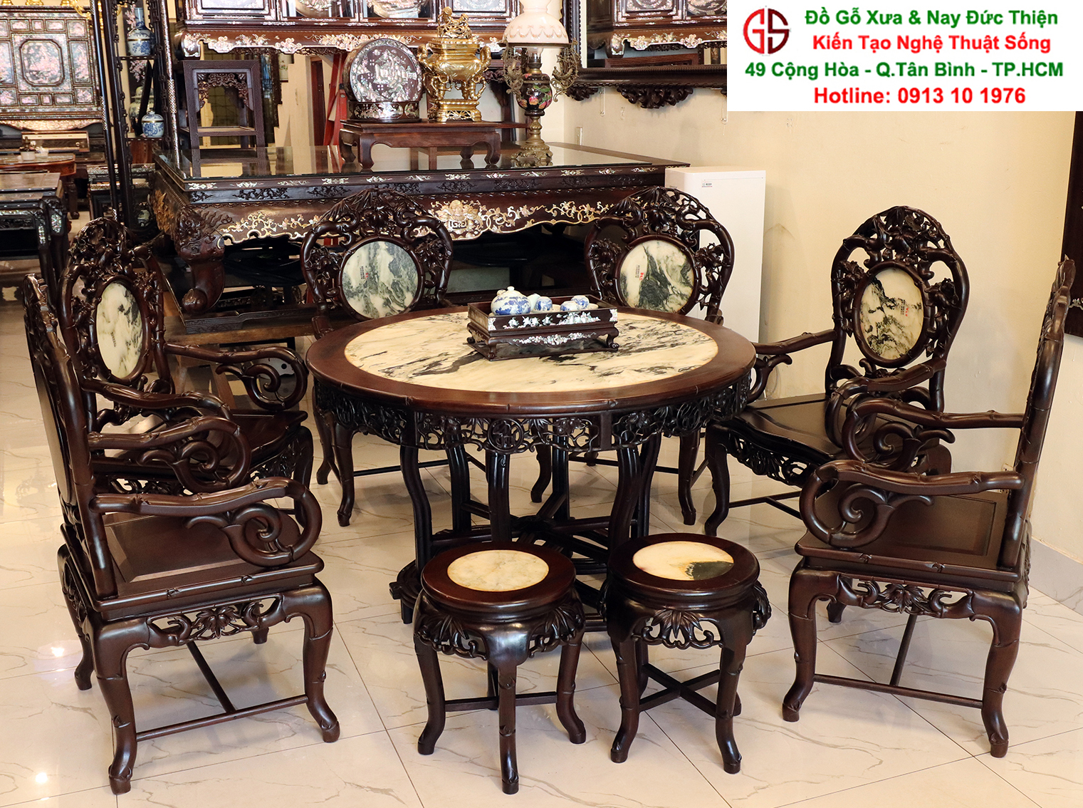 - Bàn ghế Louis, đôn trống gỗ trắc, bộ bàn ăn cẩn ốc, bàn ghế phương kỷ, bàn trung đường cẩn ốc xà cừ