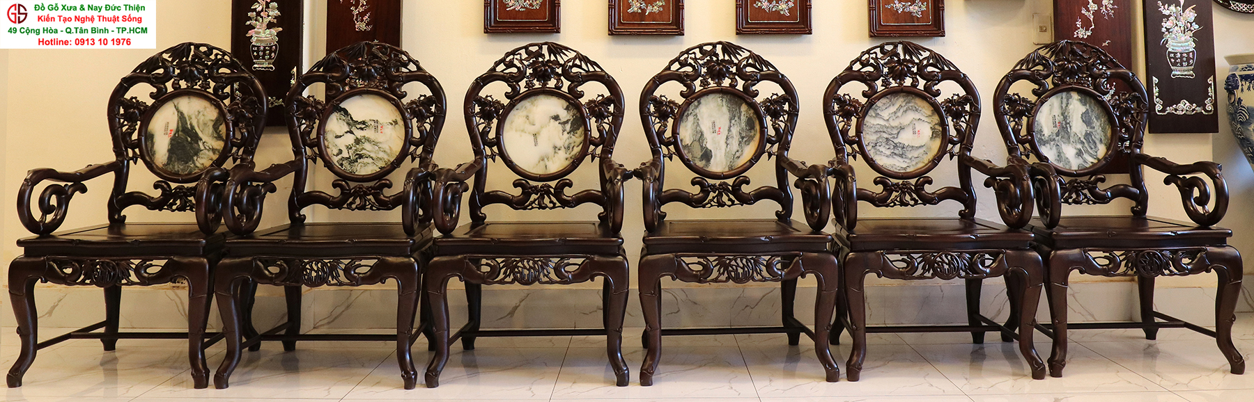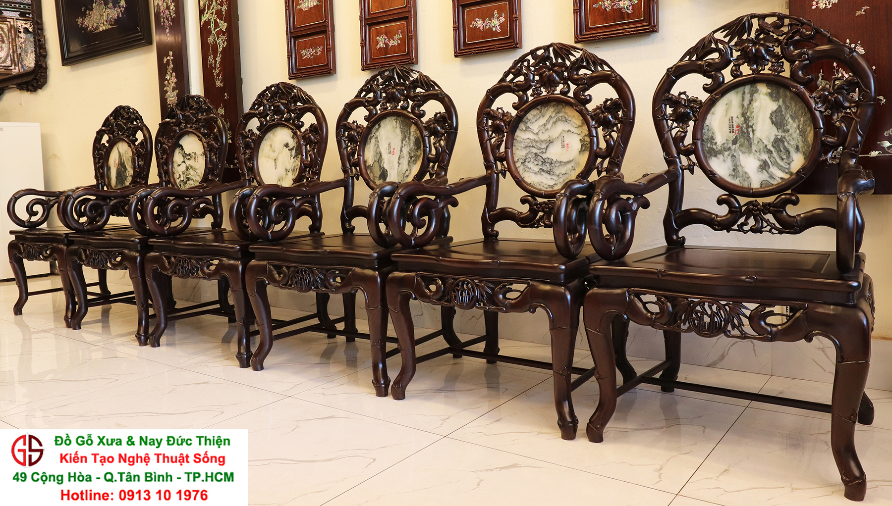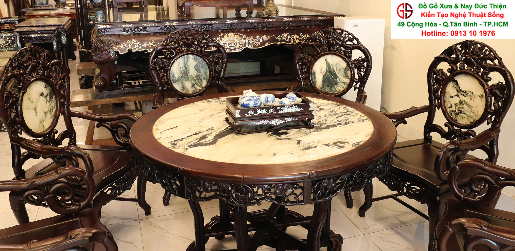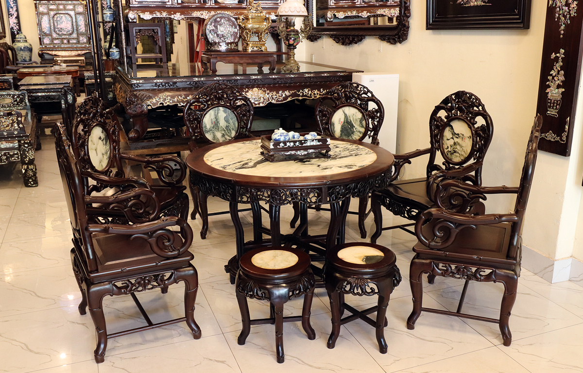- Bàn ghế Louis, đôn trống gỗ trắc, bộ bàn ăn cẩn ốc, bàn ghế phương kỷ, bàn trung đường cẩn ốc xà cừ