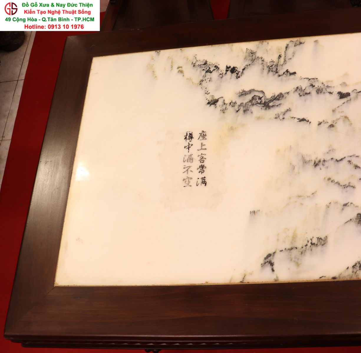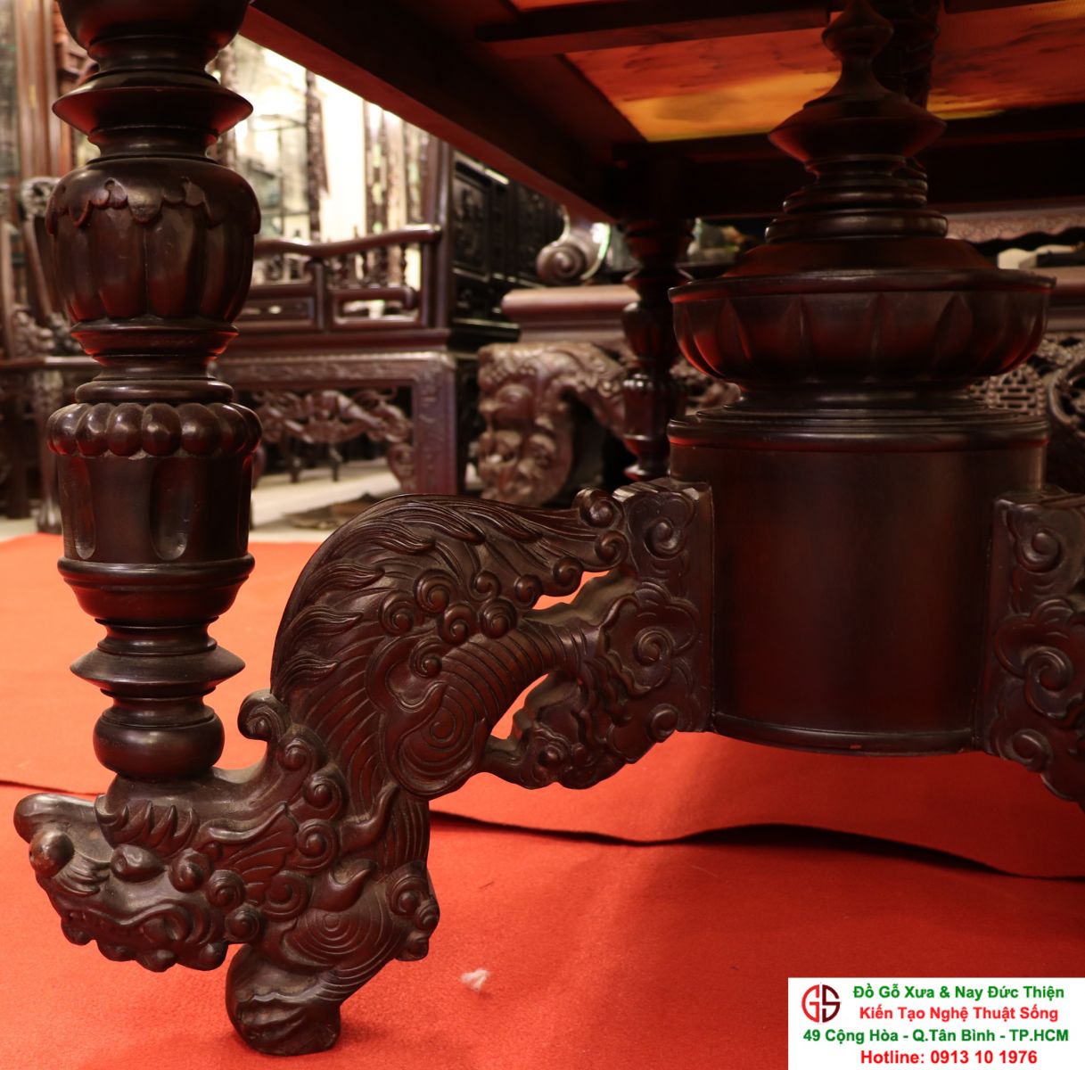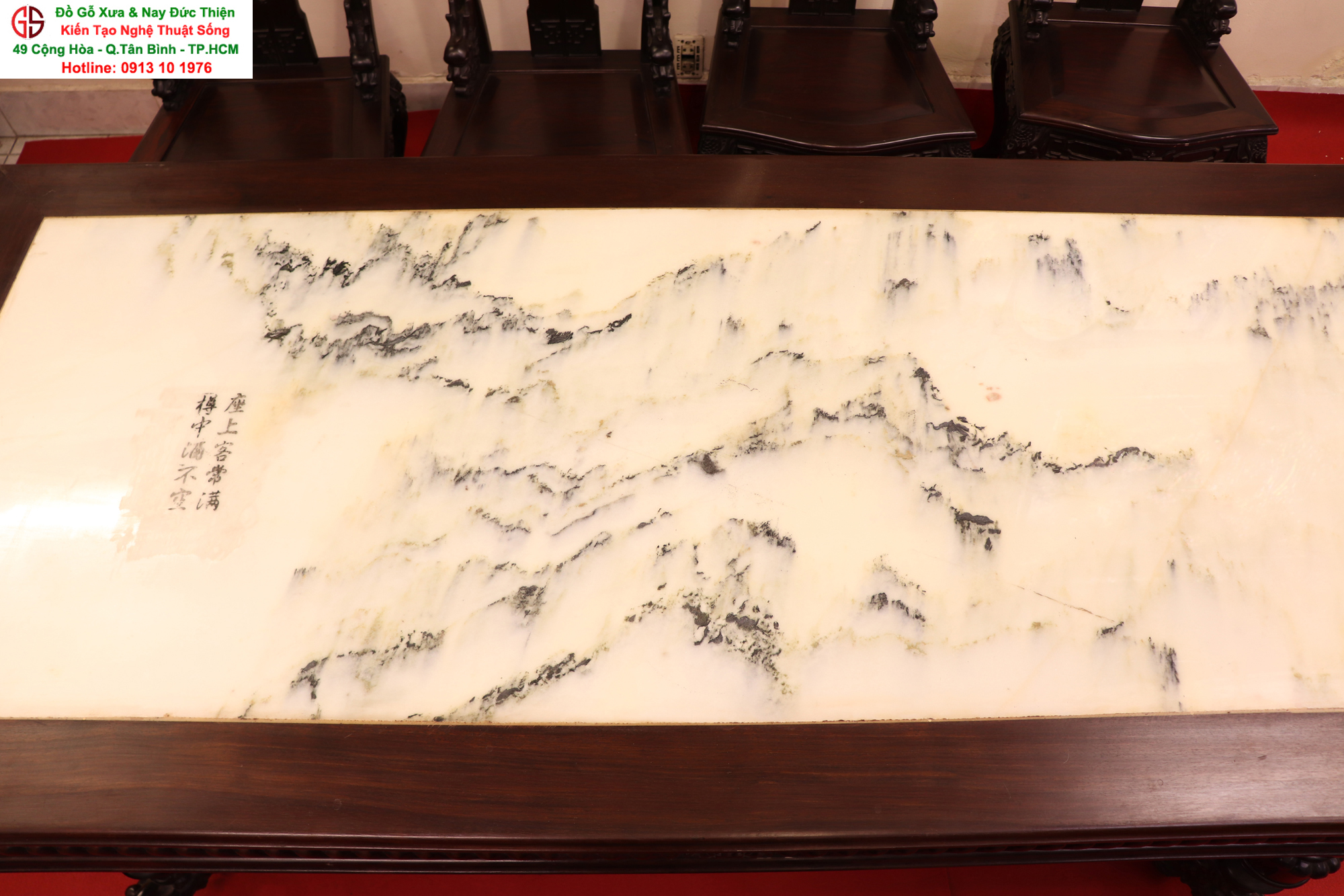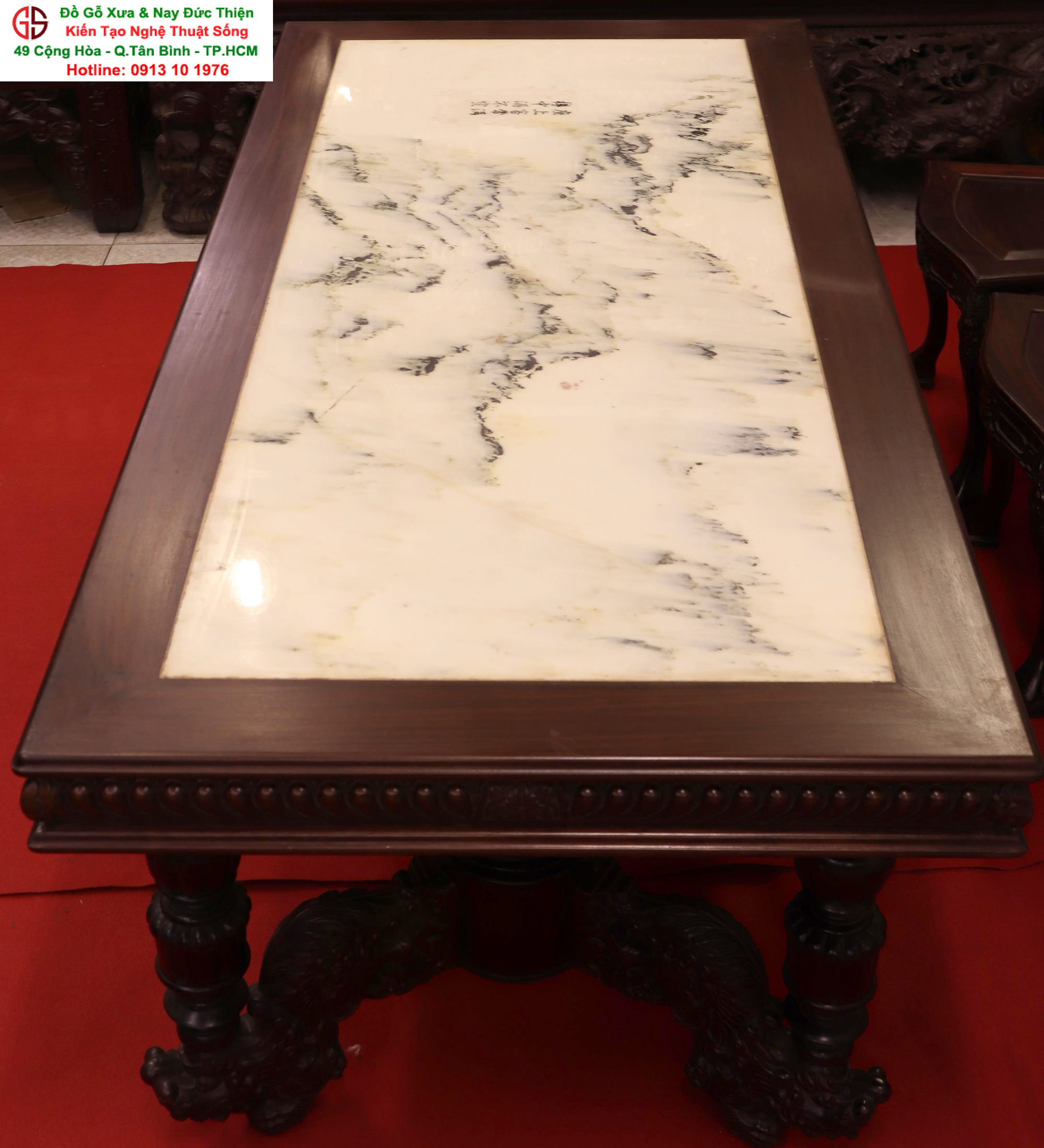 Đồ gỗ xưa và nay Đức Thiện xin trân trọng giới thiệu bộ bàn ghế ăn mặt đá Tàu 9 món : 8 ghế khách + 1 bàn lớn. Tất cả đều được làm bằng gỗ gụ mật 100 %, cầu kỳ, tỉ mỉ trong từng đường nét đem lại vẻ đẹp sang trọng cho phòng ăn, thể hiện được tầm vóc, đẳng cấp quý tộc, giàu có của gia chủ.