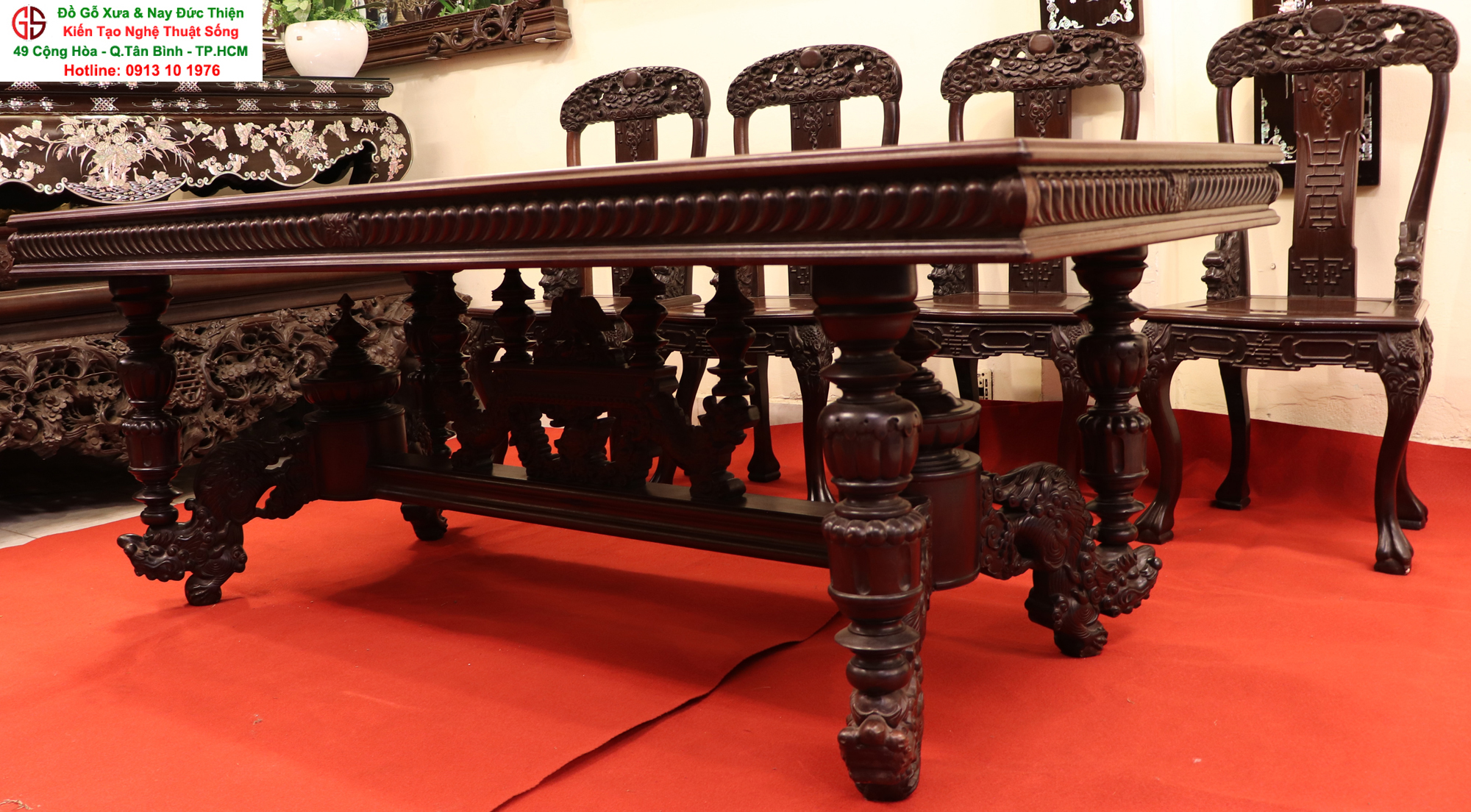 Bộ Bàn Ăn Gỗ Cẩm Nu Quý Hiếm - Phong Cách Pháp Sang Trọng