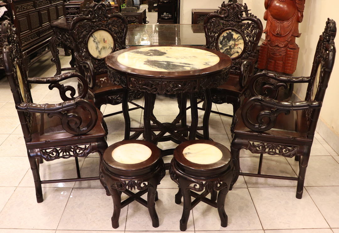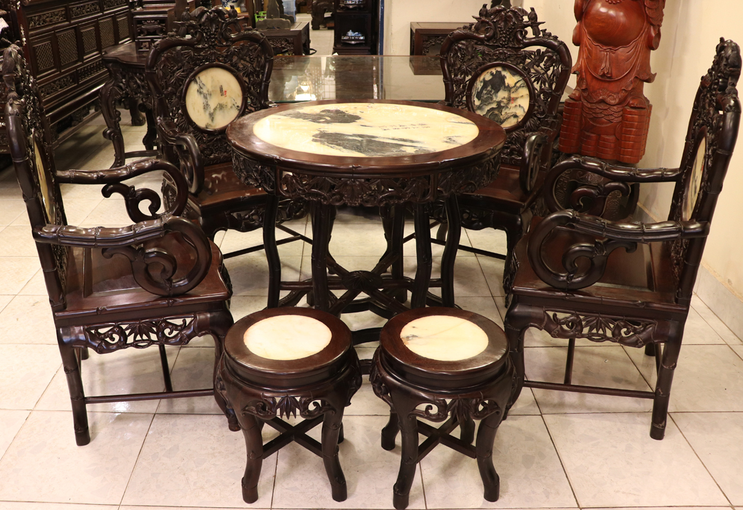 - Bàn ghế Louis, đôn trống gỗ trắc, bộ bàn ăn cẩn ốc, bàn ghế phương kỷ, bàn trung đường cẩn ốc xà cừ