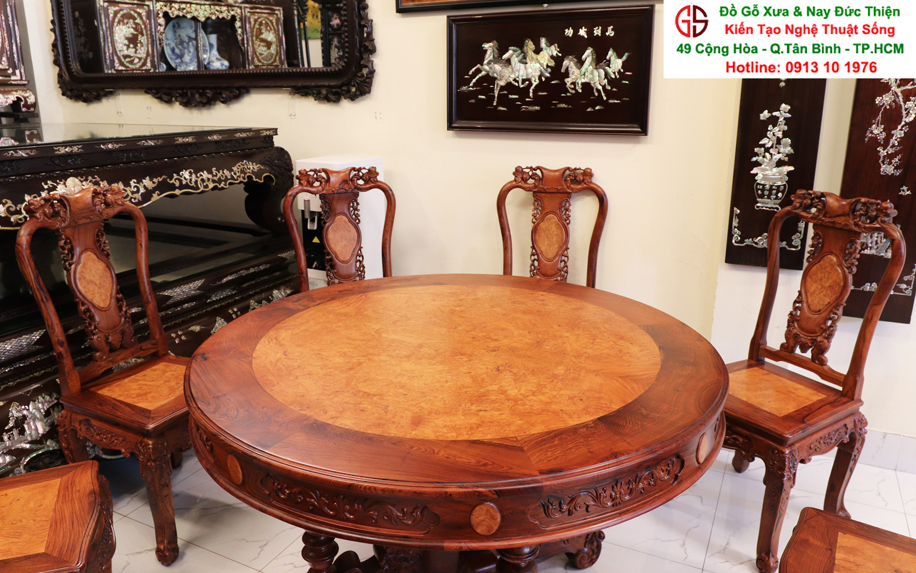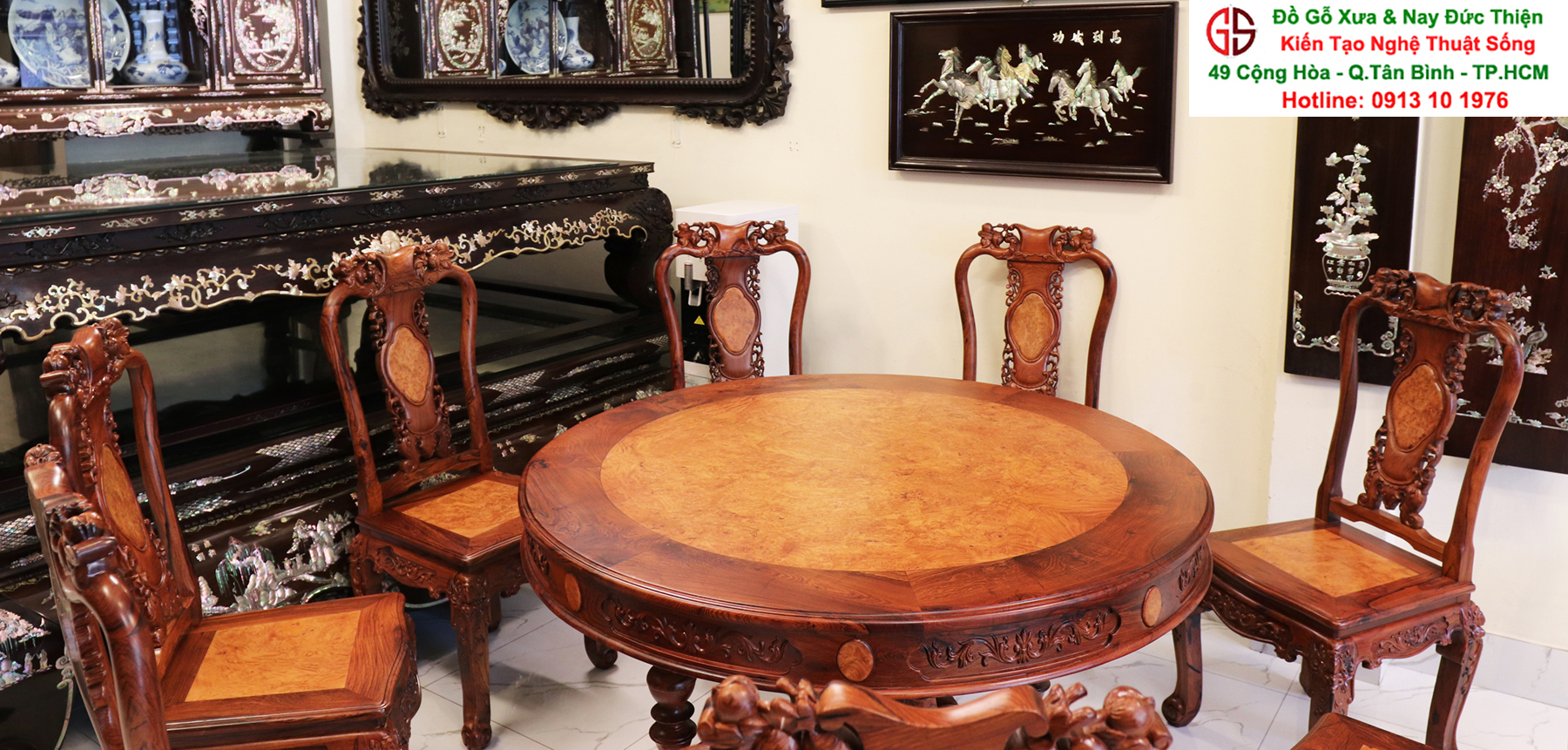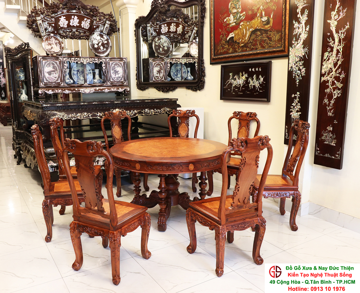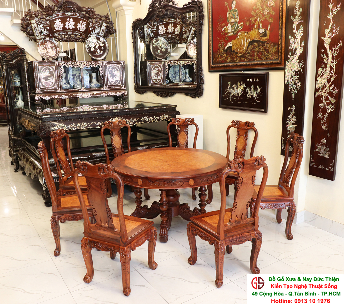 - Bàn ghế Louis, đôn trống gỗ trắc, bộ bàn ăn cẩn ốc, bàn ghế phương kỷ, bàn trung đường cẩn ốc xà cừ