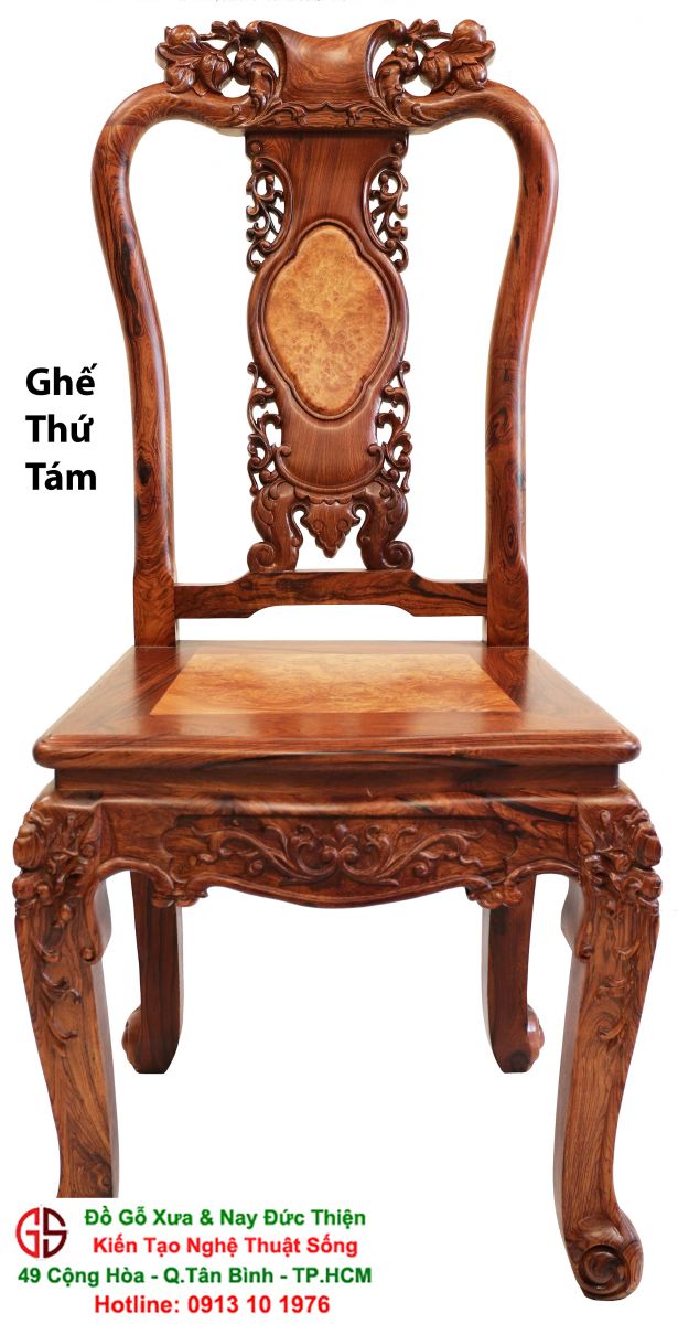 BỘ BÀN CÙ LÁ 8 GHẾ GỖ CẨM NU