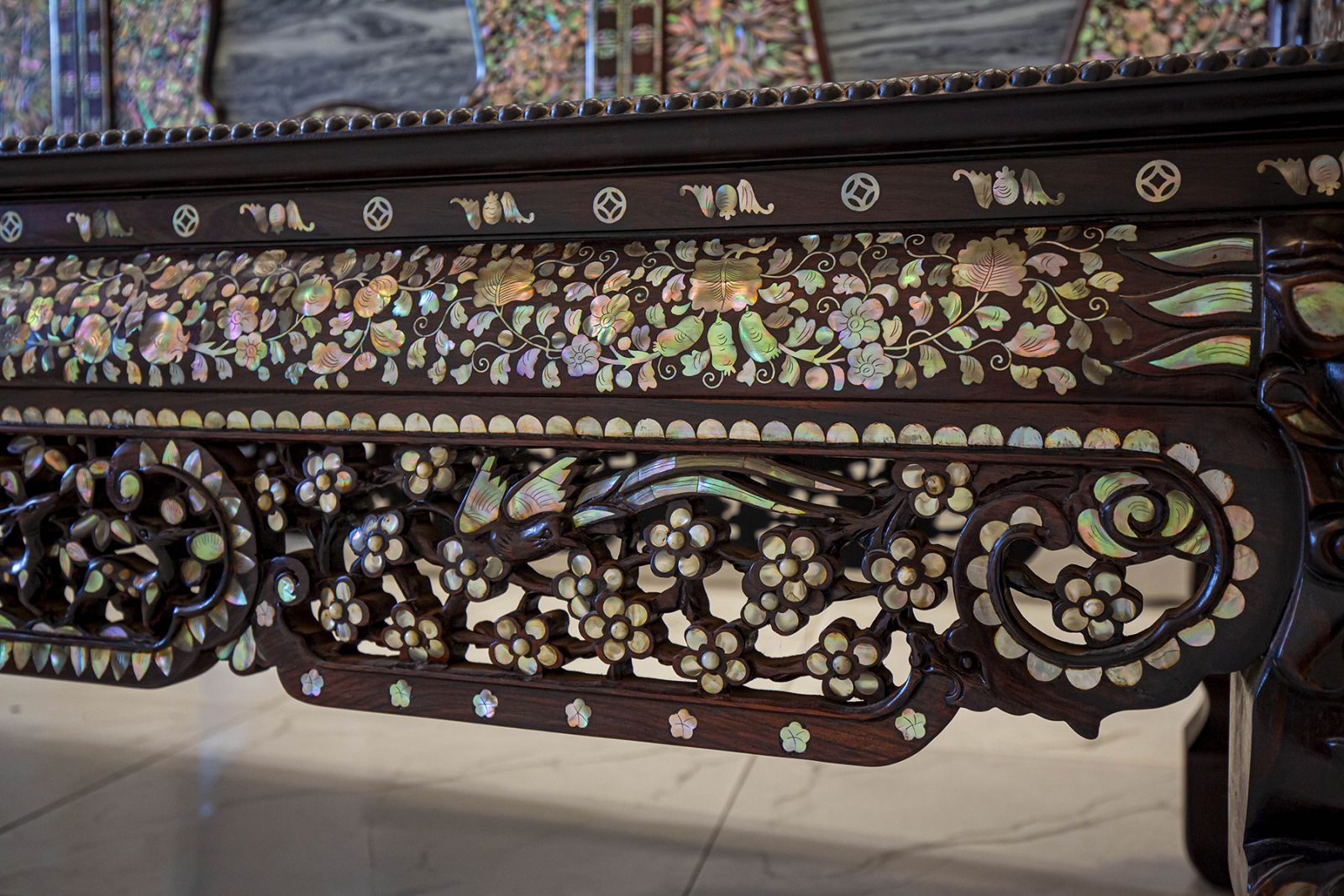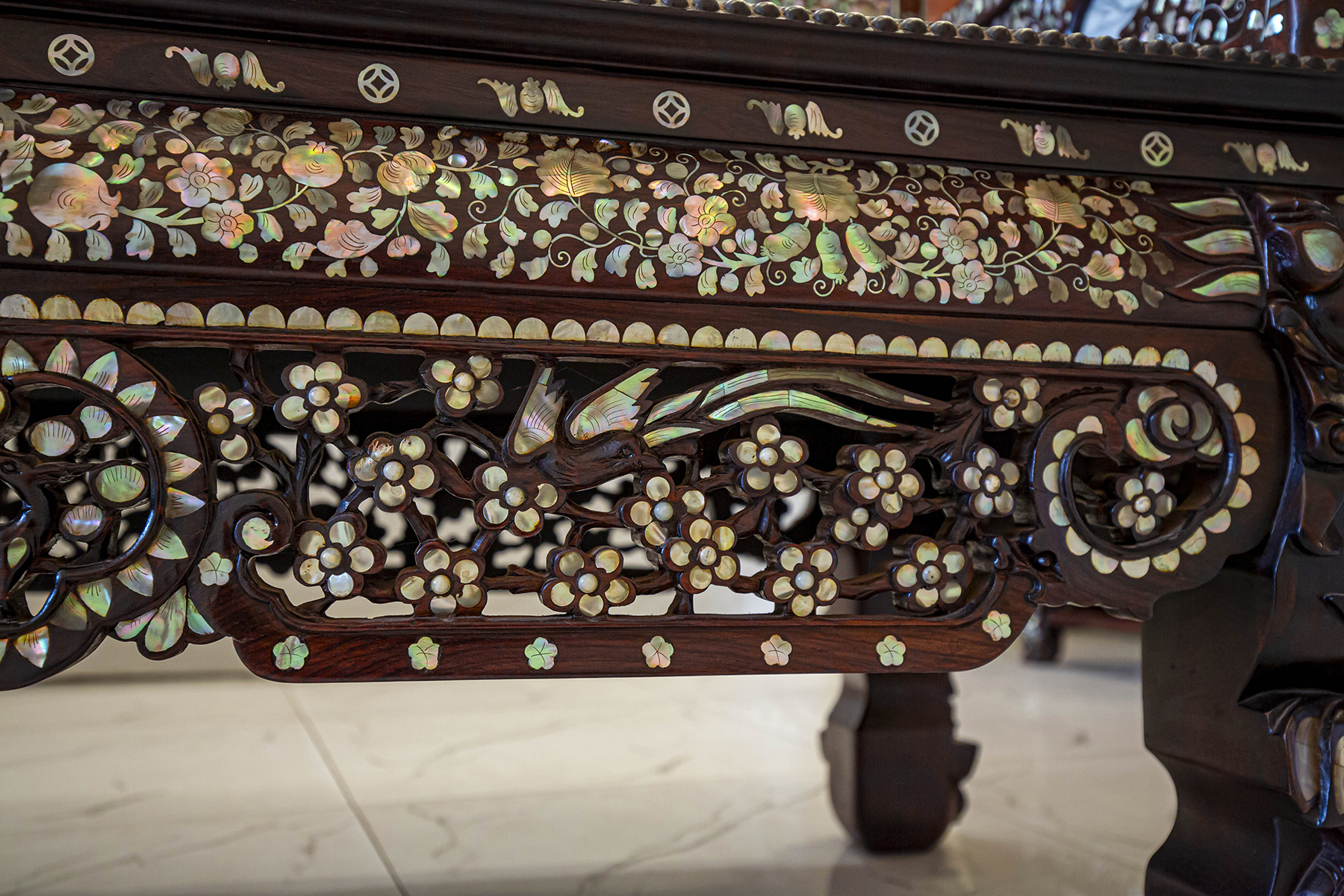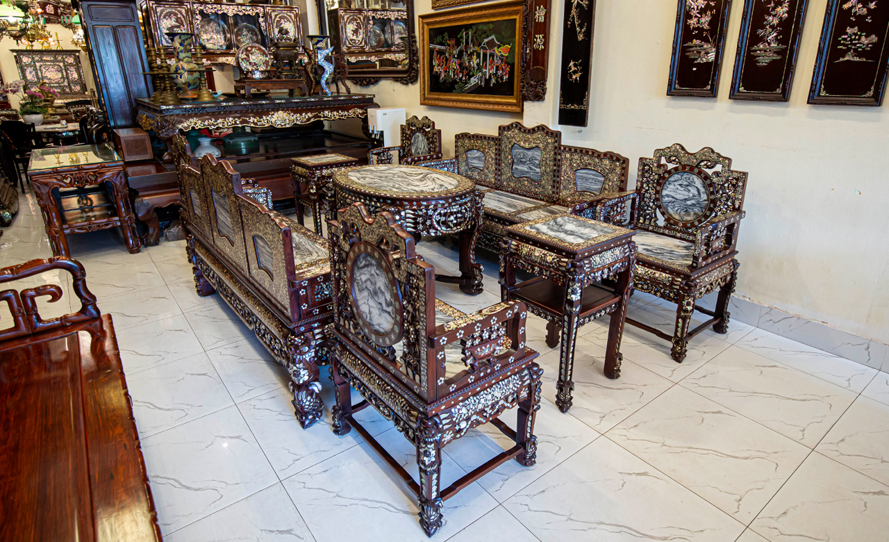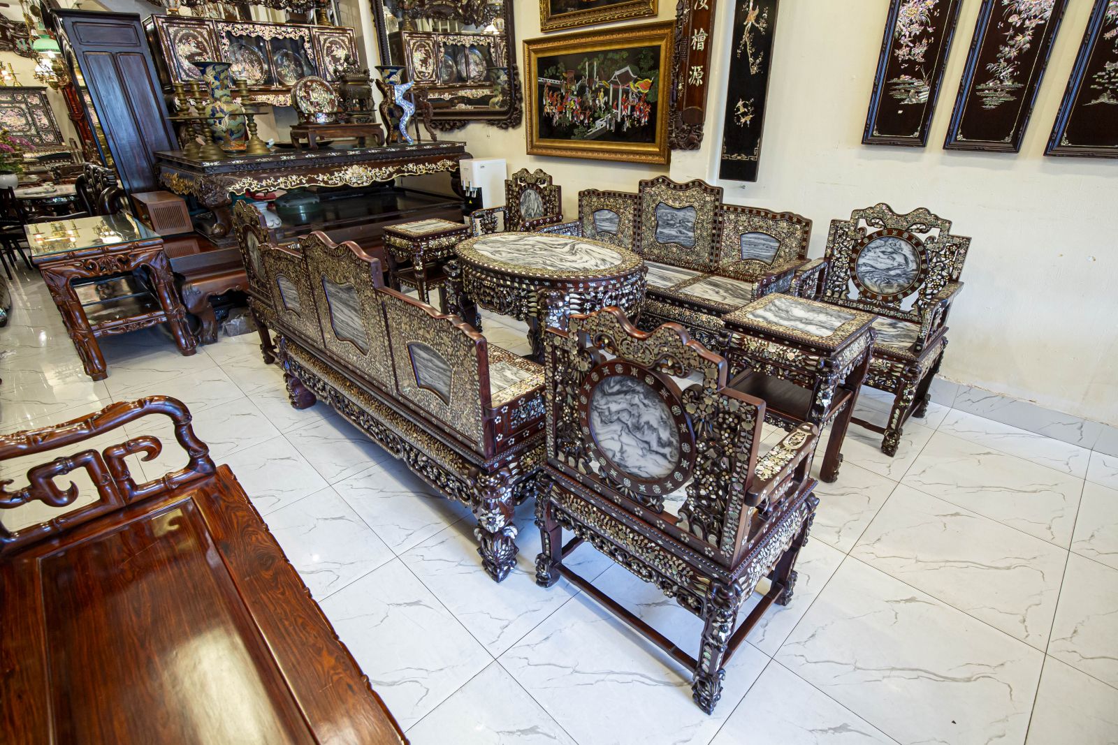 - Bàn ghế Louis, đôn trống gỗ trắc, bộ bàn ăn cẩn ốc, bàn ghế phương kỷ, bàn trung đường cẩn ốc xà cừ
