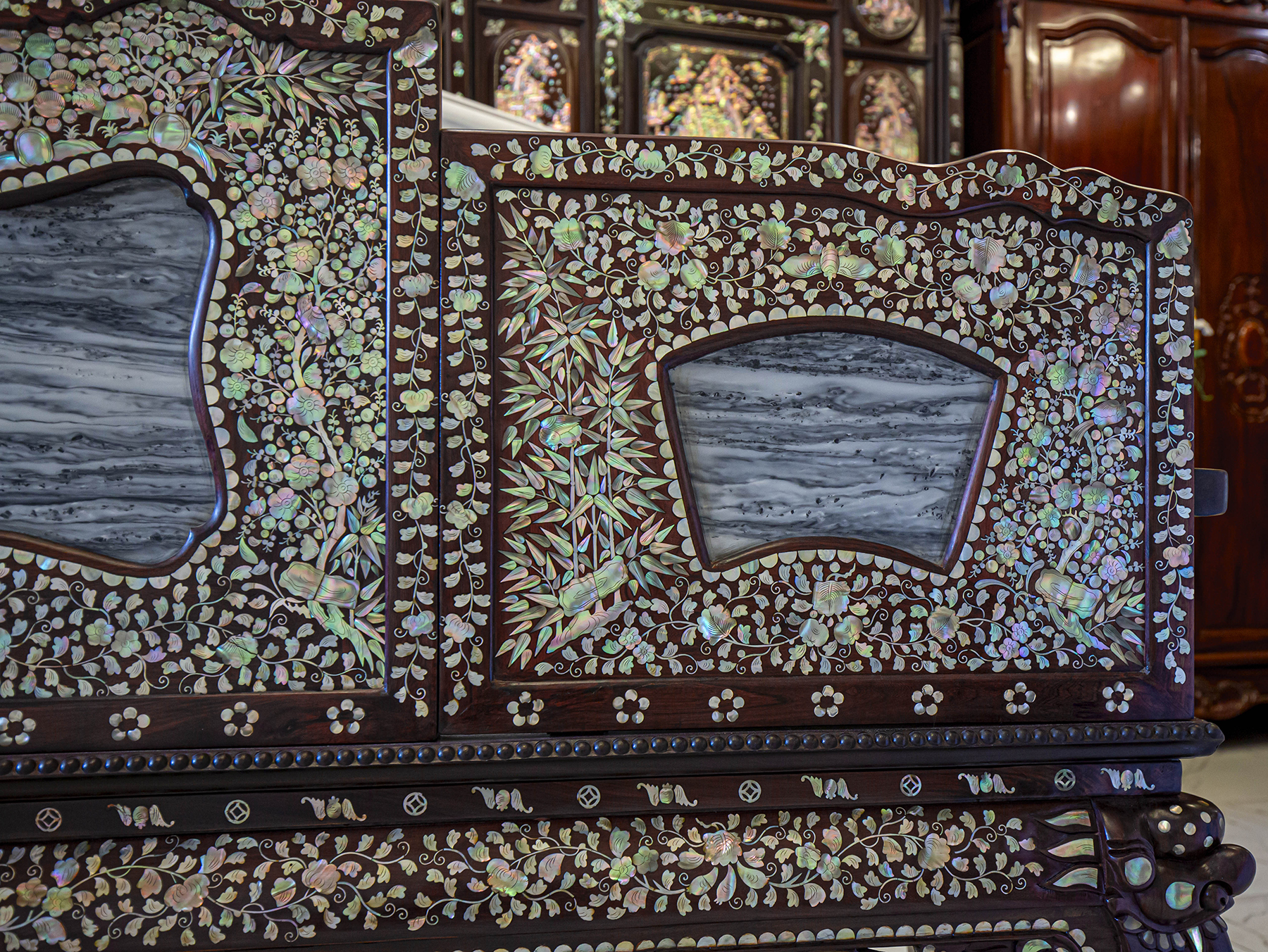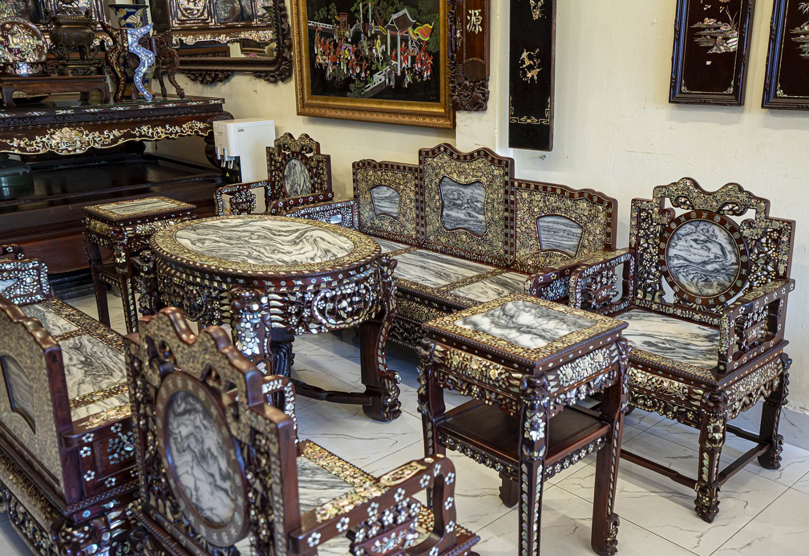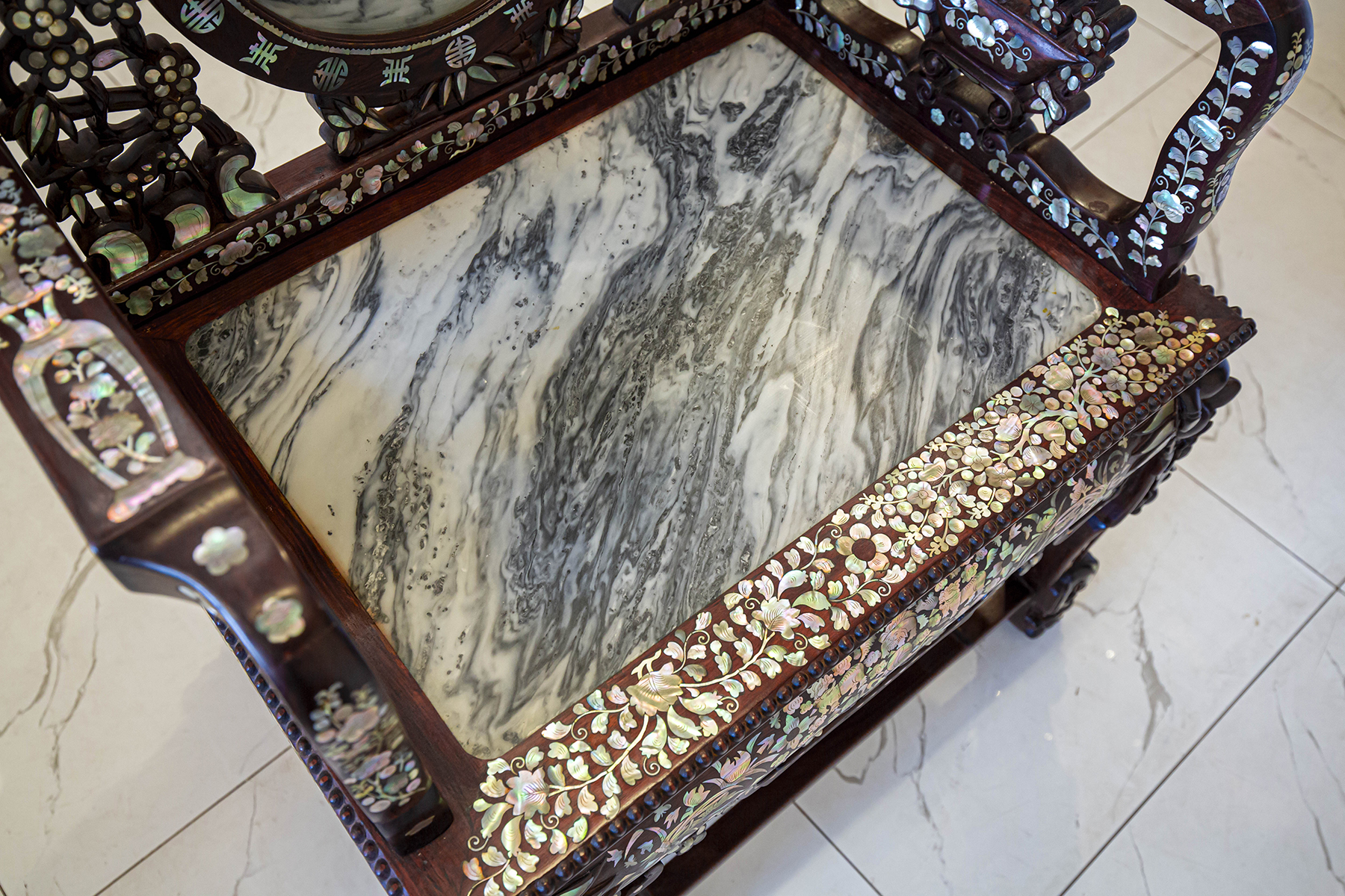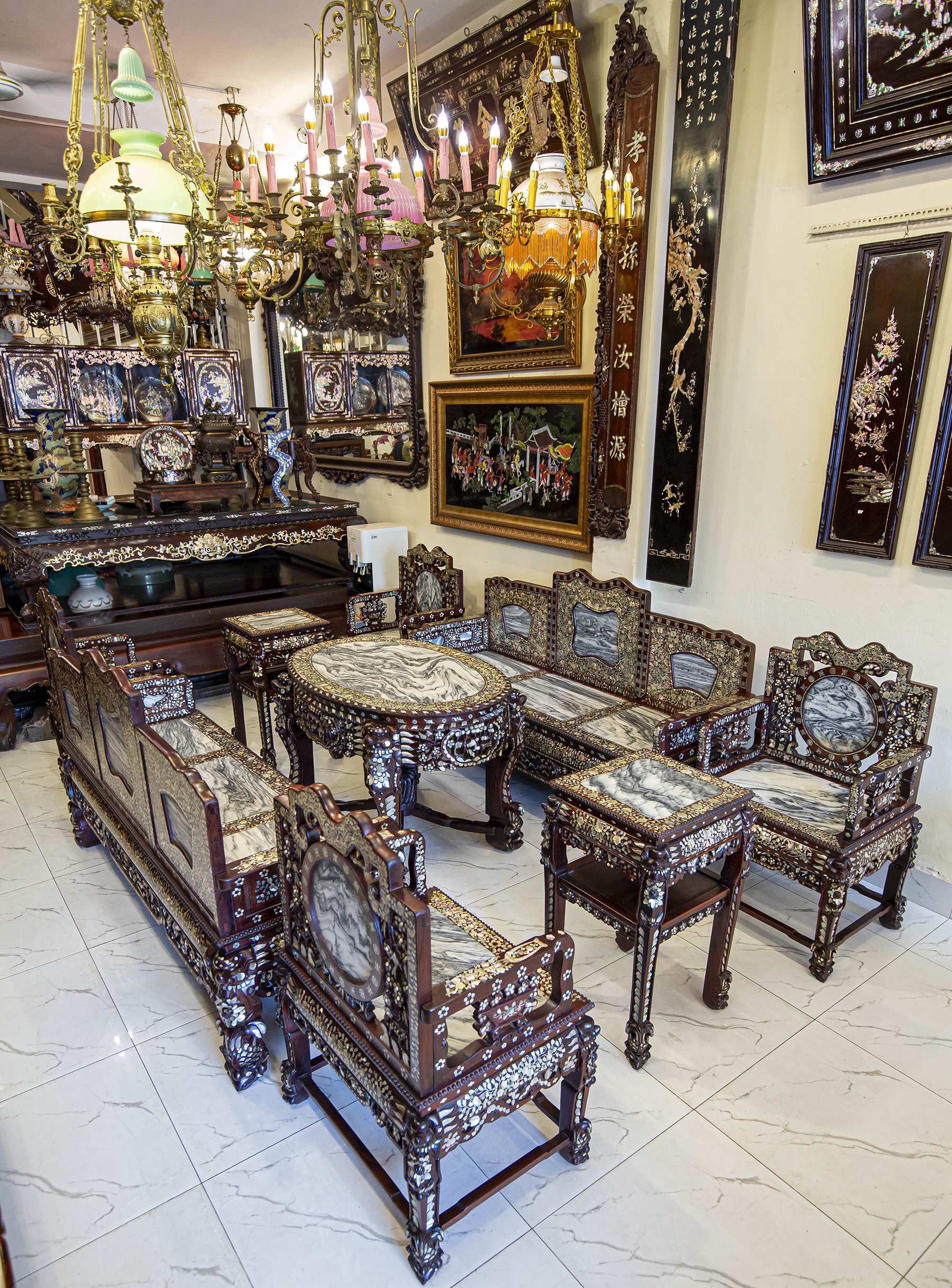 - Bàn ghế Louis, đôn trống gỗ trắc, bộ bàn ăn cẩn ốc, bàn ghế phương kỷ, bàn trung đường cẩn ốc xà cừ