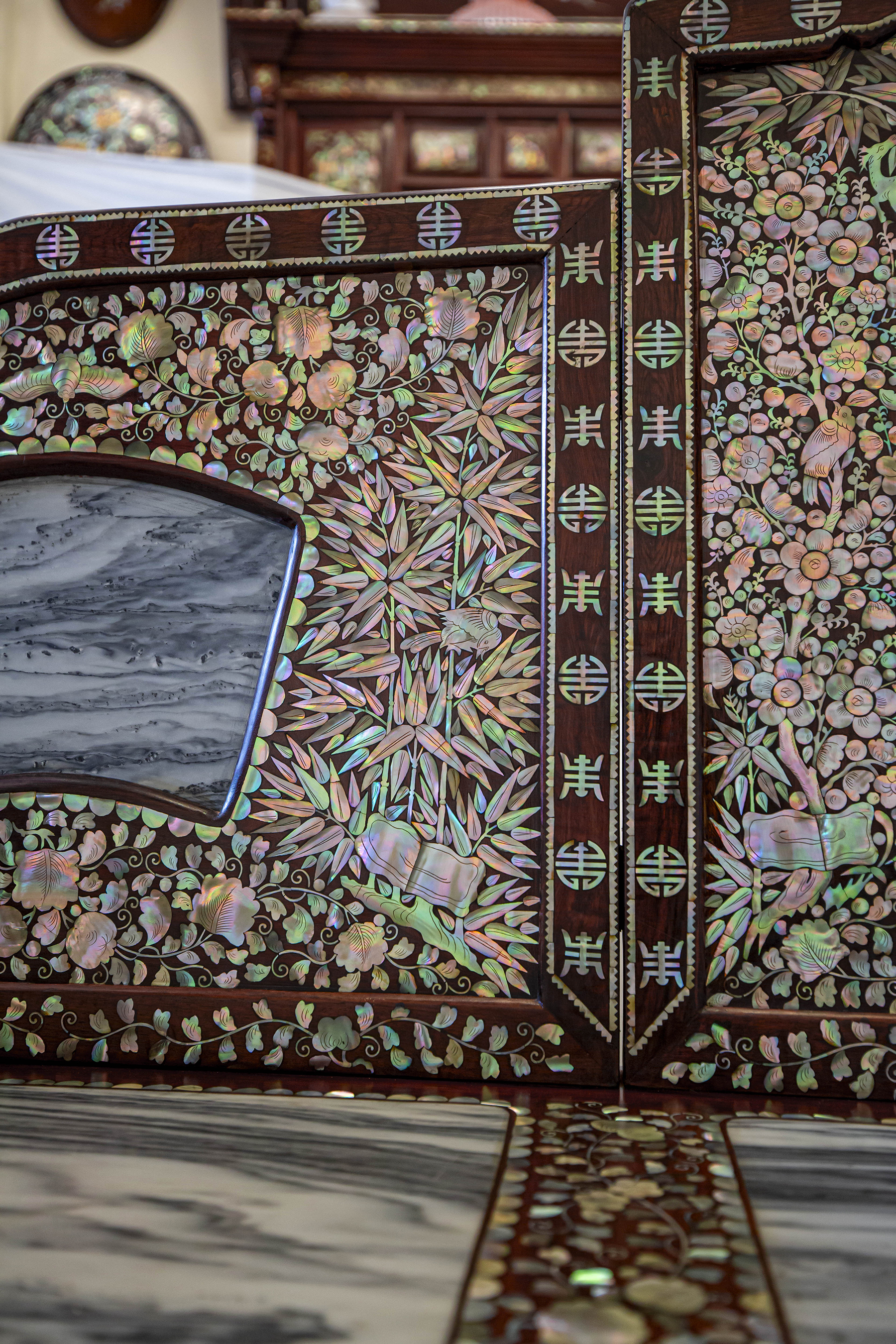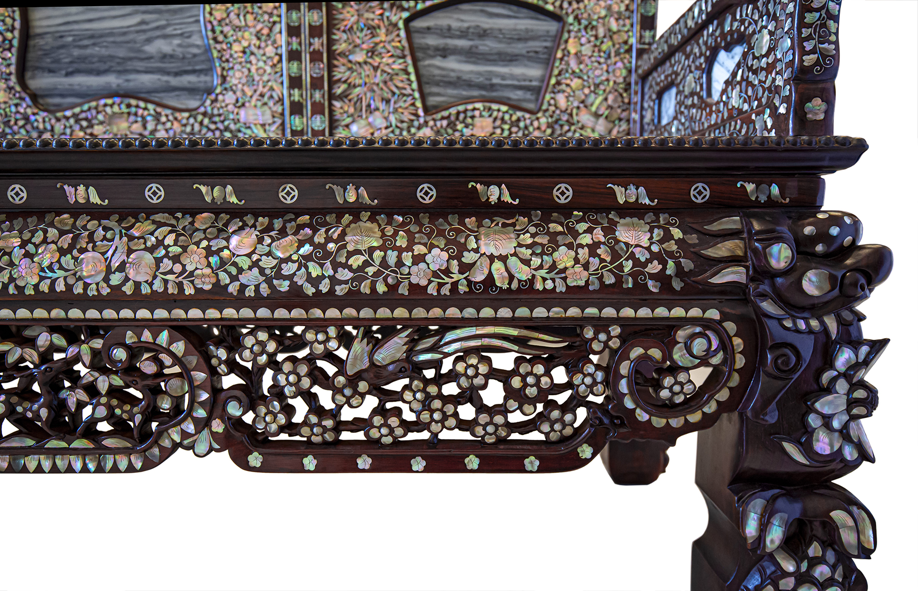 - Sập cẩn ốc xà cừ: sập cẩn ốc sen vịt, sập sen vịt tùng hạc.