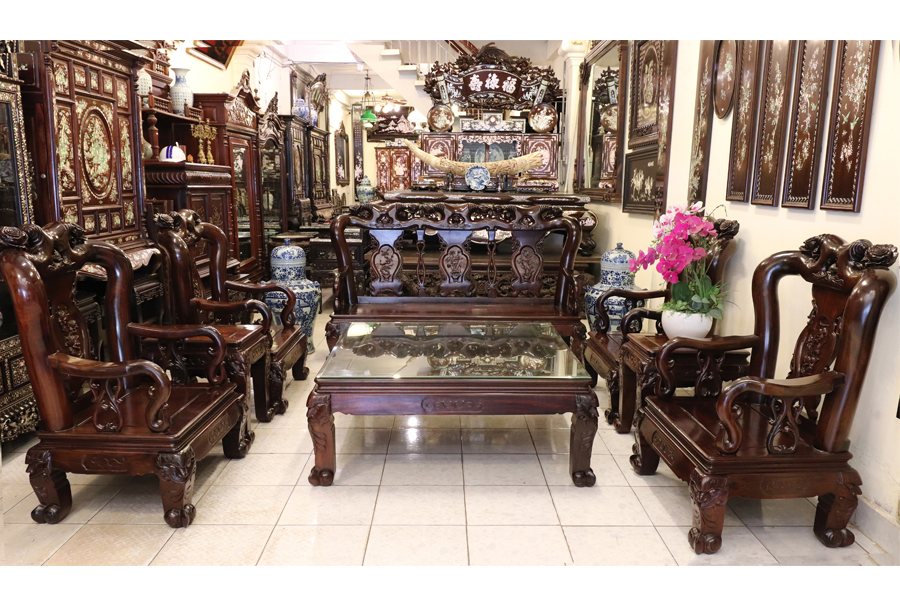 - Bàn ghế Louis, đôn trống gỗ trắc, bộ bàn ăn cẩn ốc, bàn ghế phương kỷ, bàn trung đường cẩn ốc xà cừ