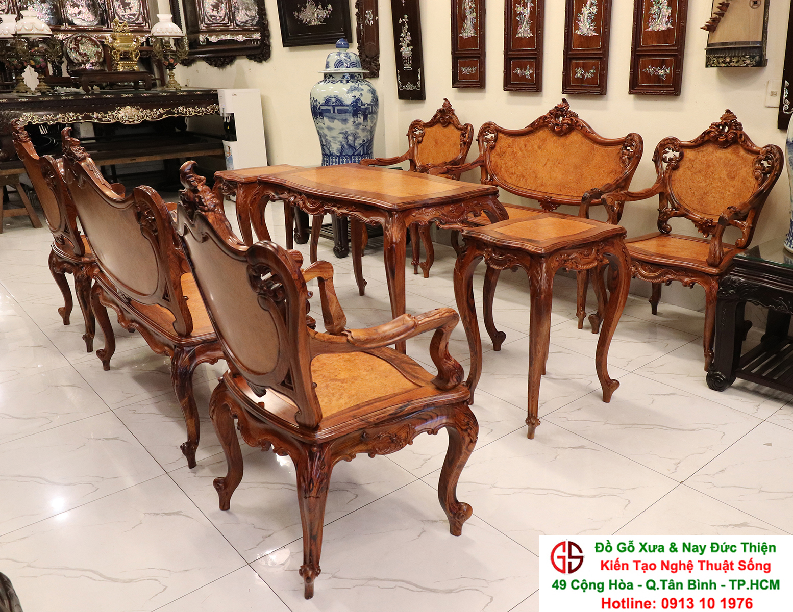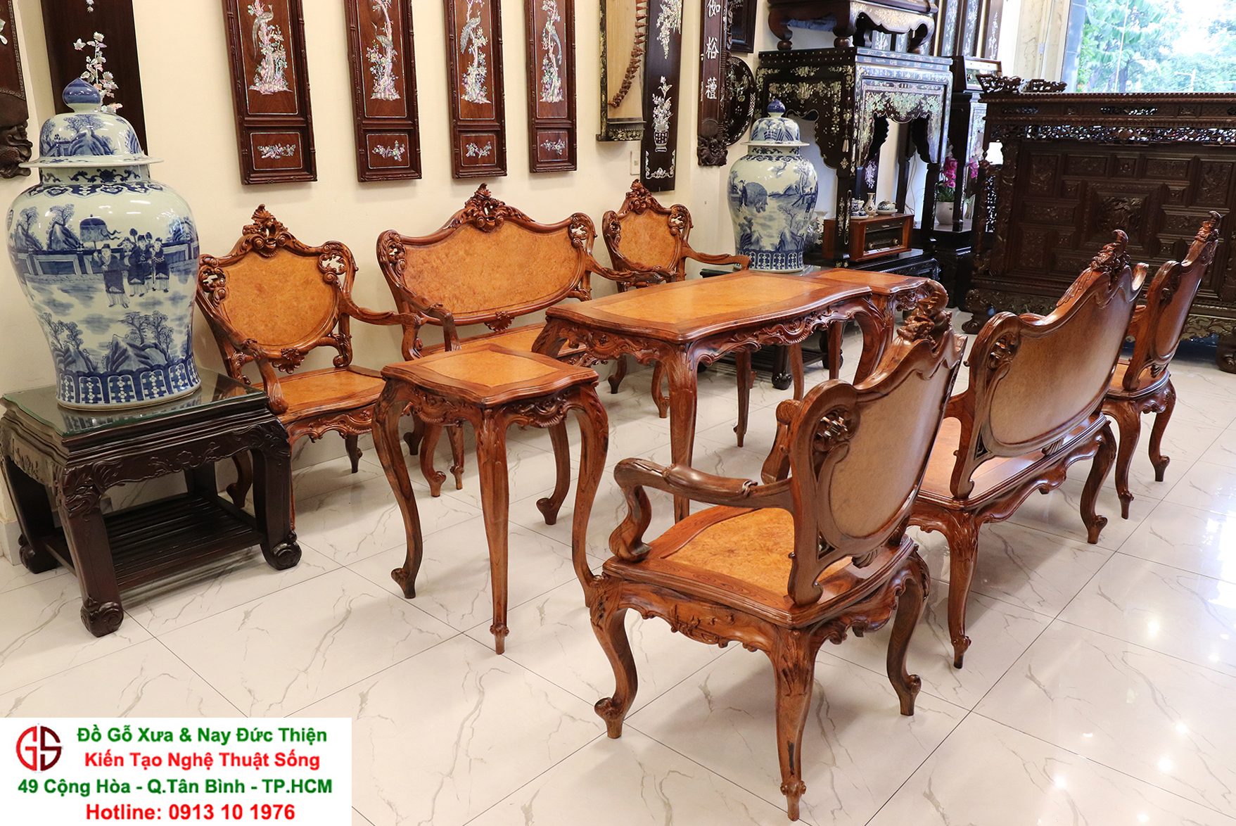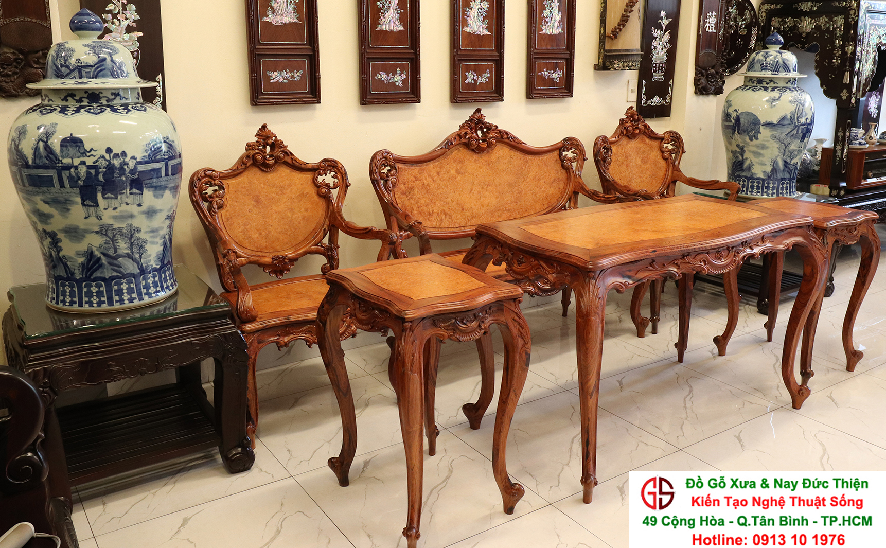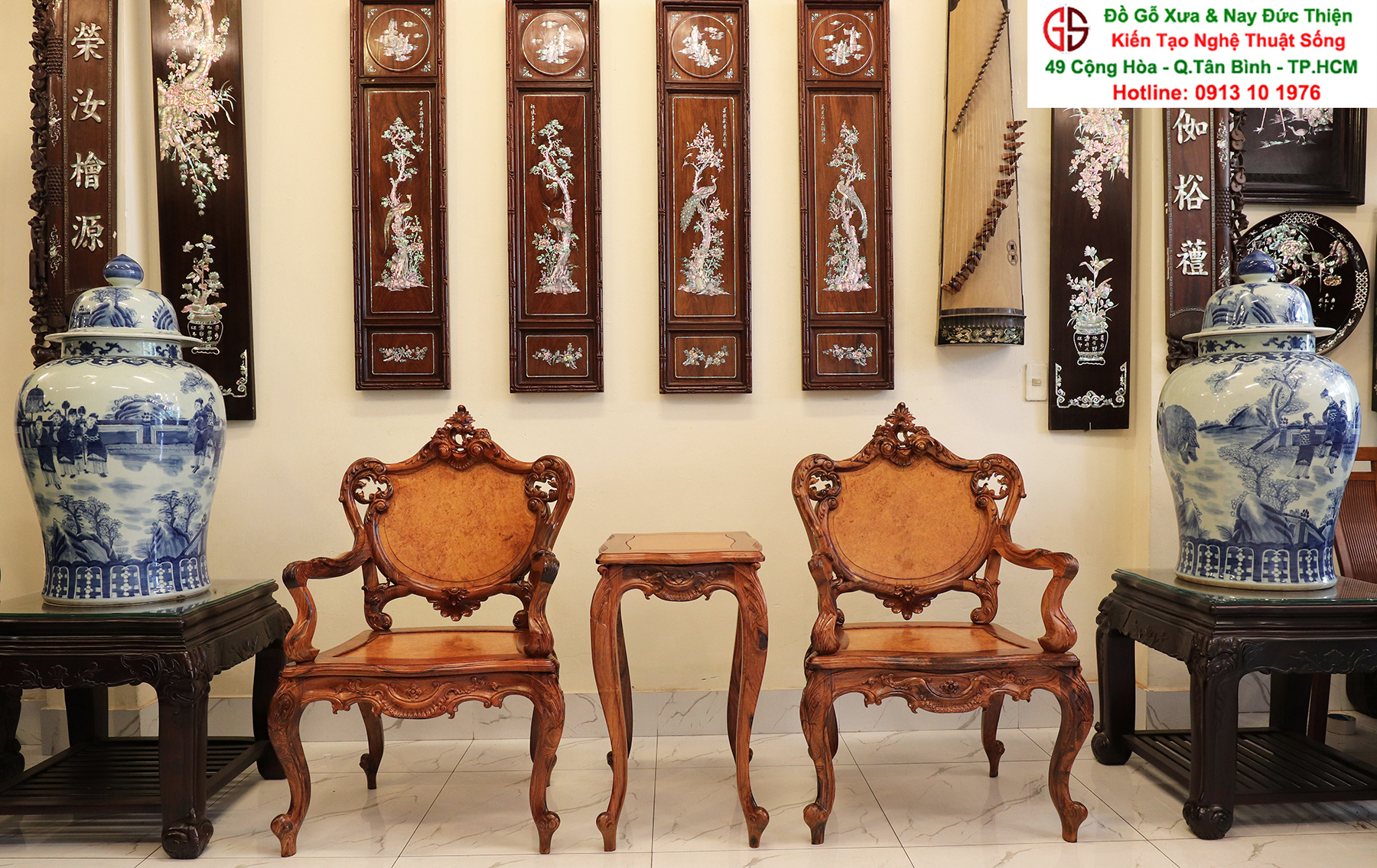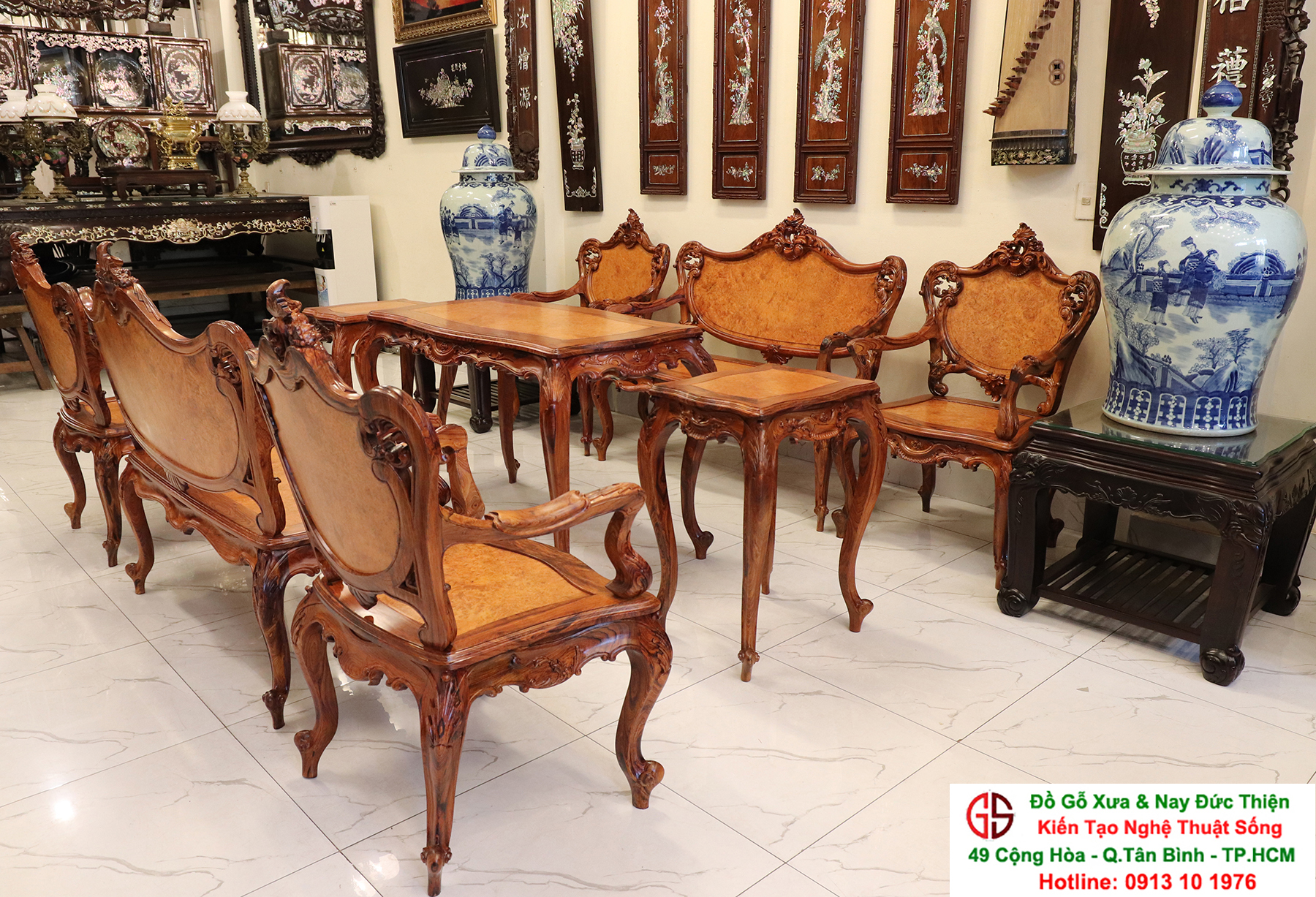 - Bàn ghế Louis, đôn trống gỗ trắc, bộ bàn ăn cẩn ốc, bàn ghế phương kỷ, bàn trung đường cẩn ốc xà cừ