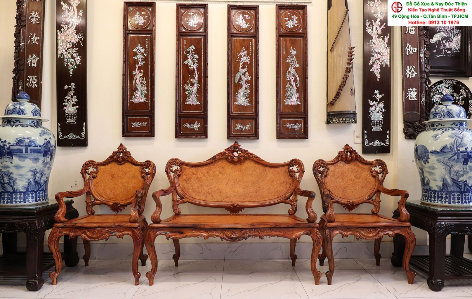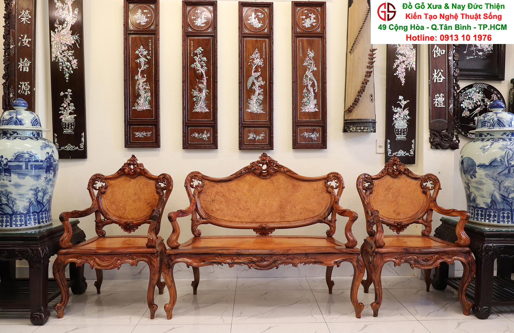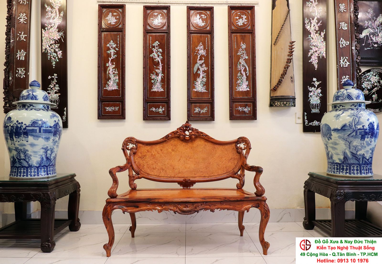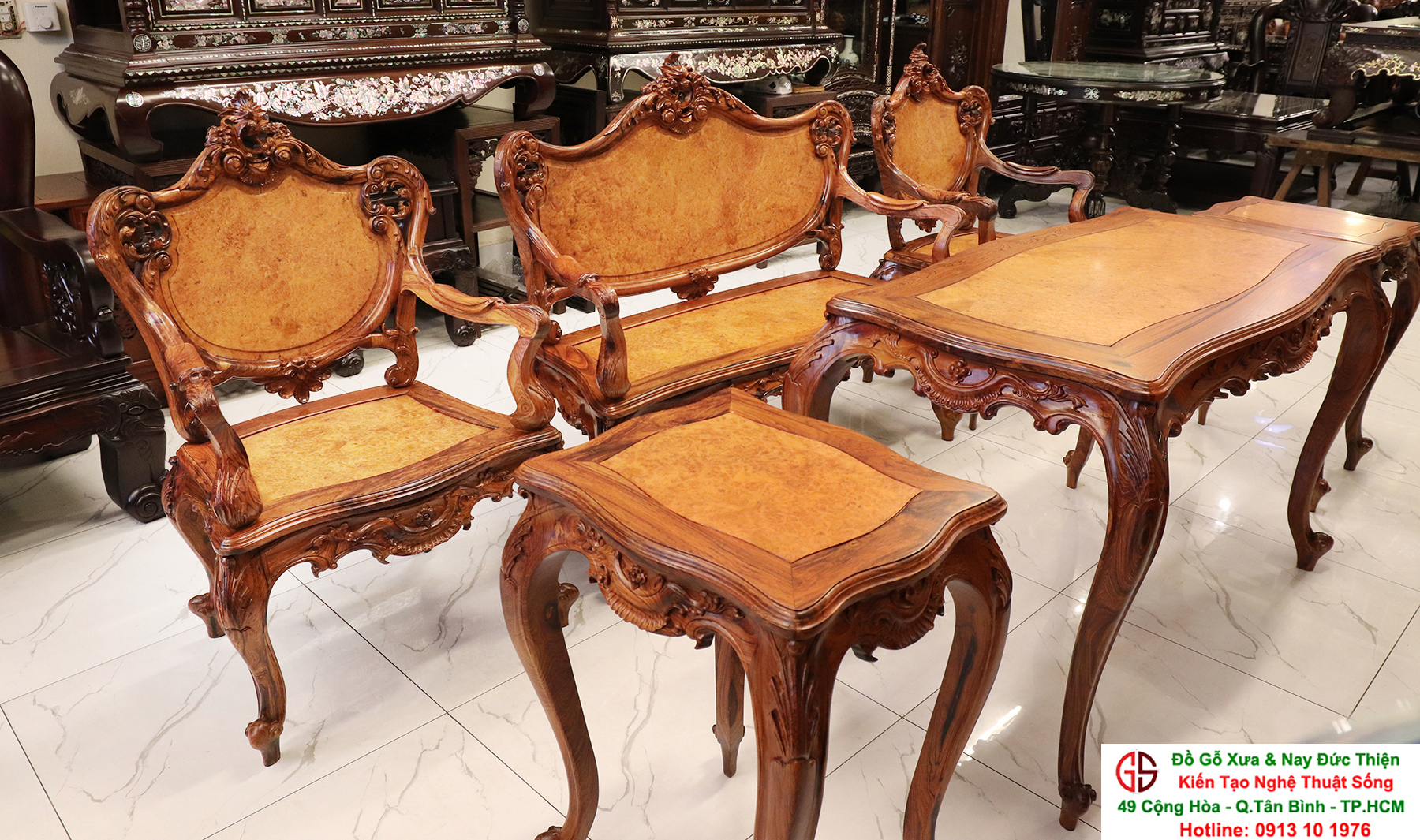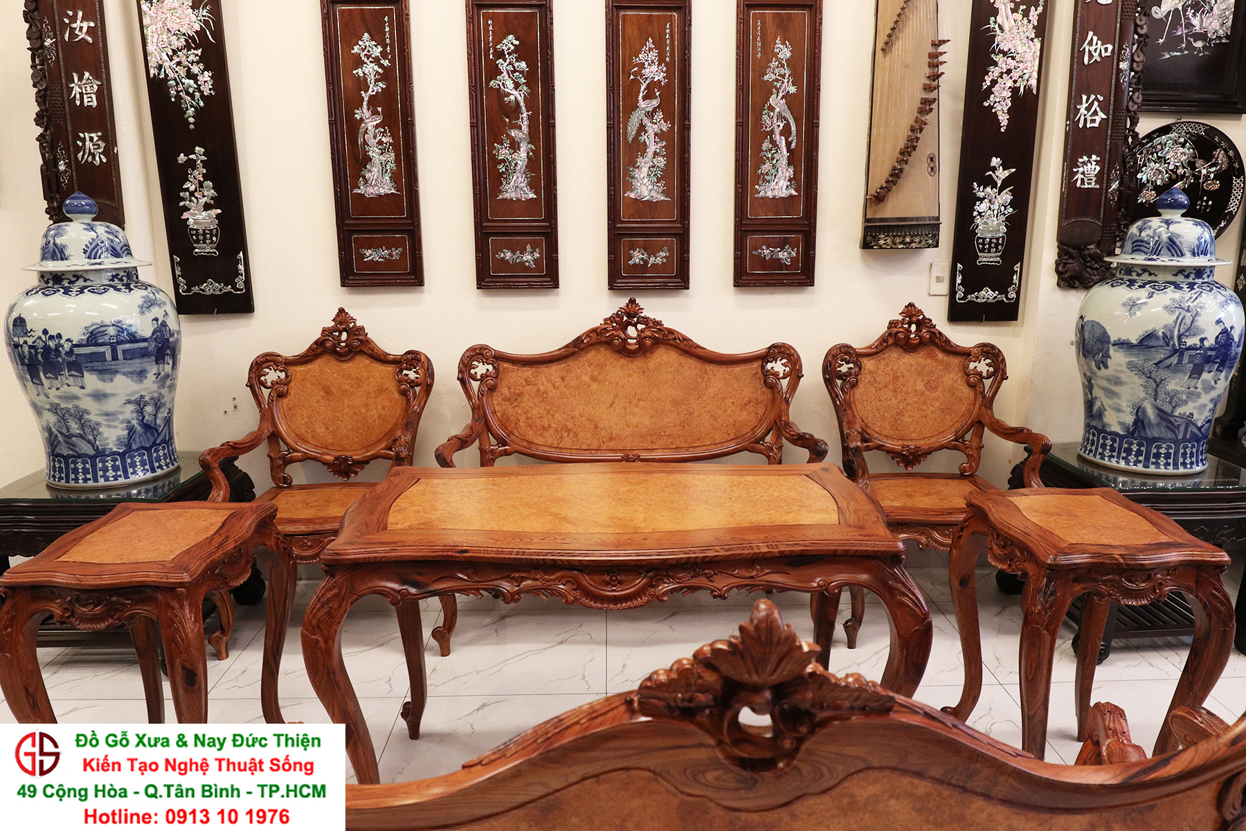 - Bàn ghế Louis, đôn trống gỗ trắc, bộ bàn ăn cẩn ốc, bàn ghế phương kỷ, bàn trung đường cẩn ốc xà cừ