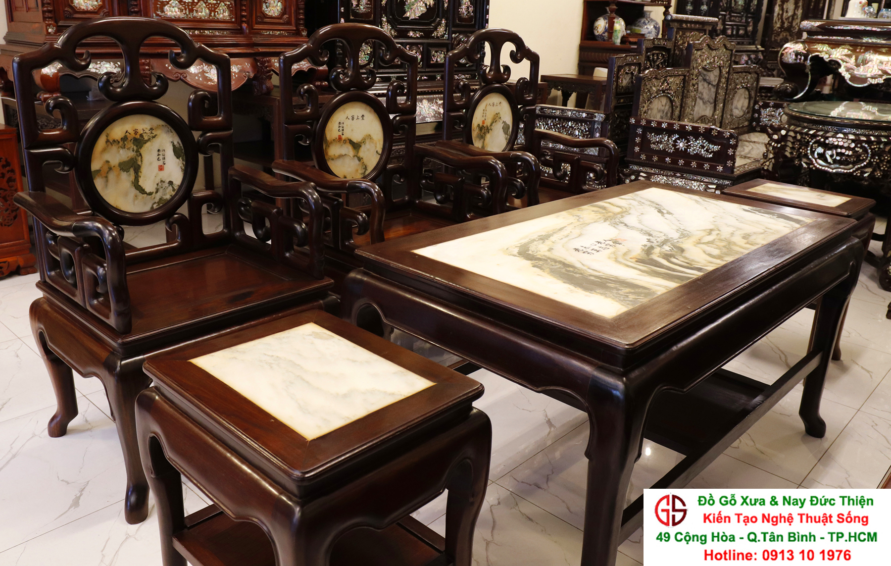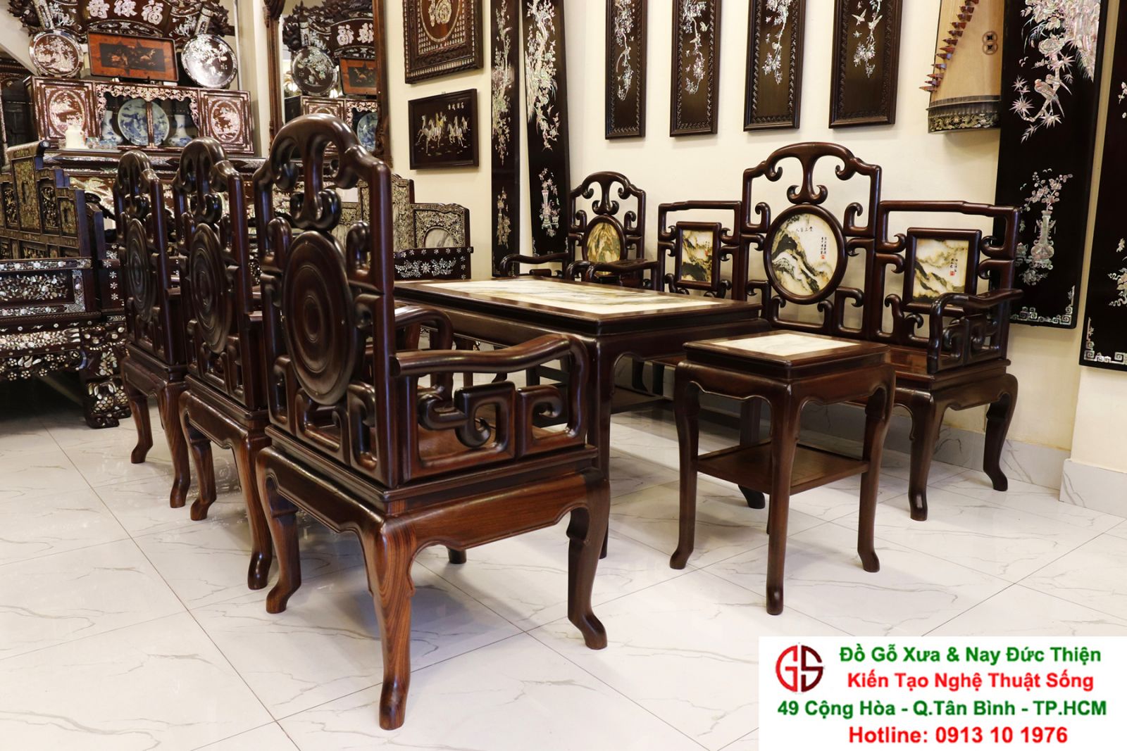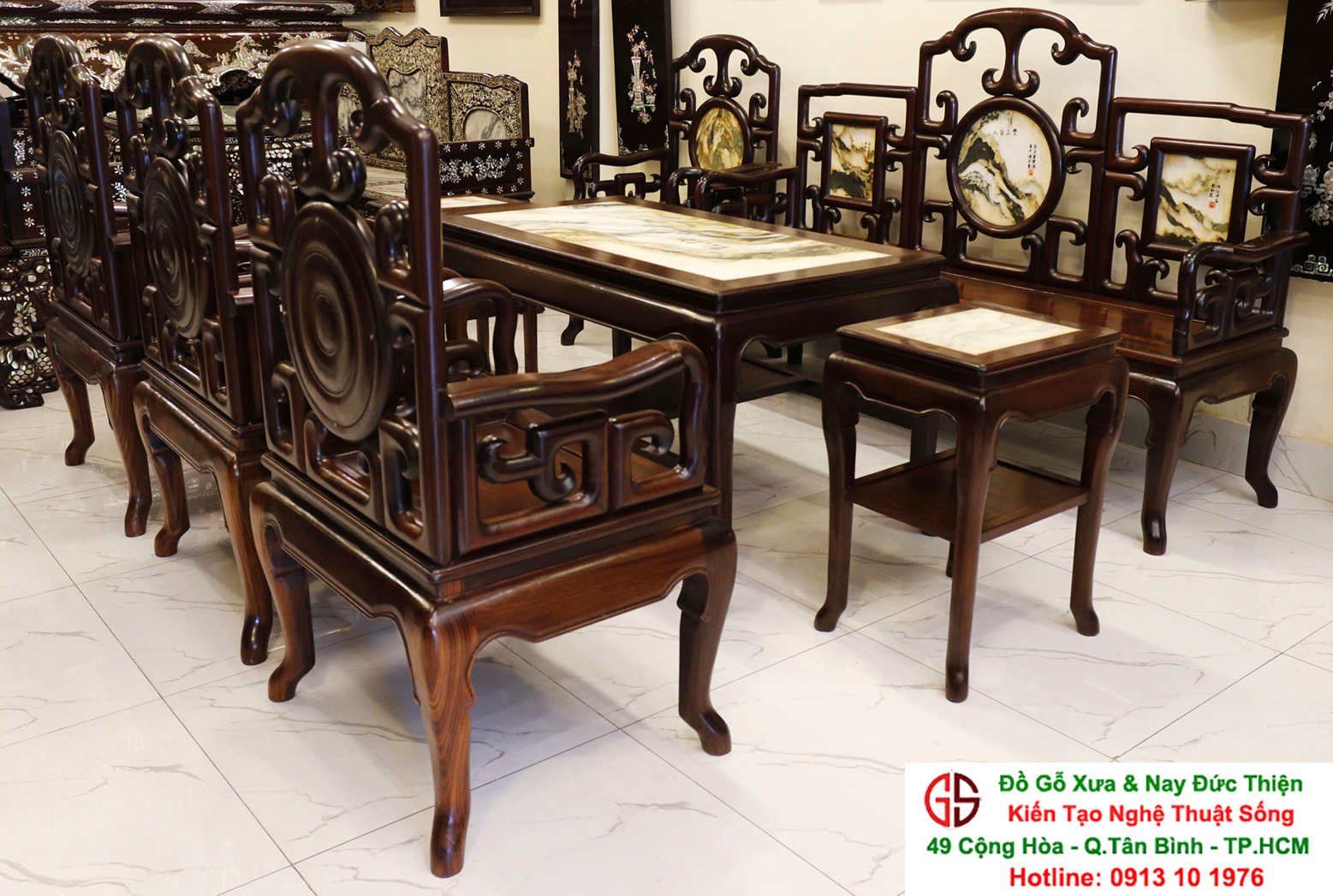 - Bàn ghế Louis, đôn trống gỗ trắc, bộ bàn ăn cẩn ốc, bàn ghế phương kỷ, bàn trung đường cẩn ốc xà cừ
