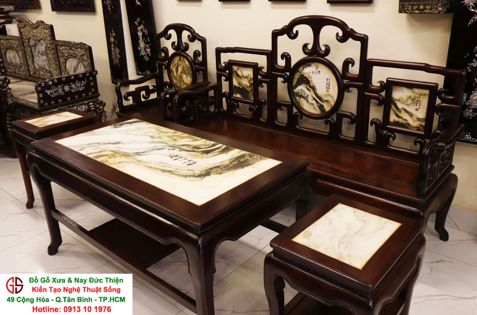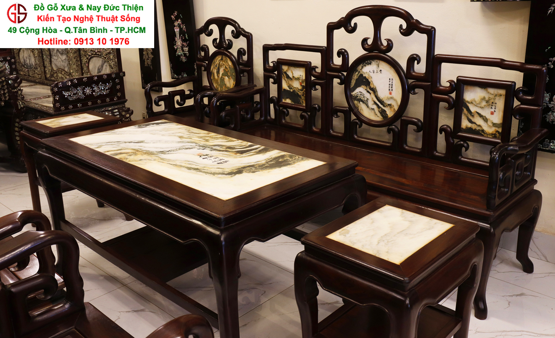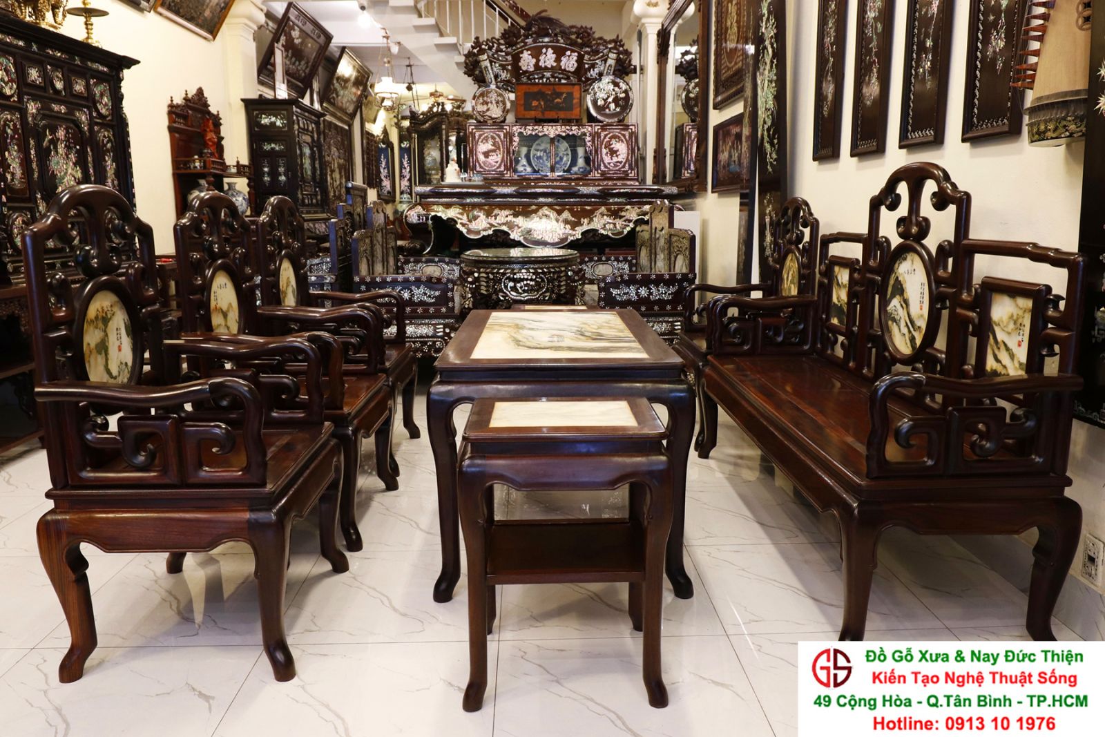 - Bàn ghế Louis, đôn trống gỗ trắc, bộ bàn ăn cẩn ốc, bàn ghế phương kỷ, bàn trung đường cẩn ốc xà cừ