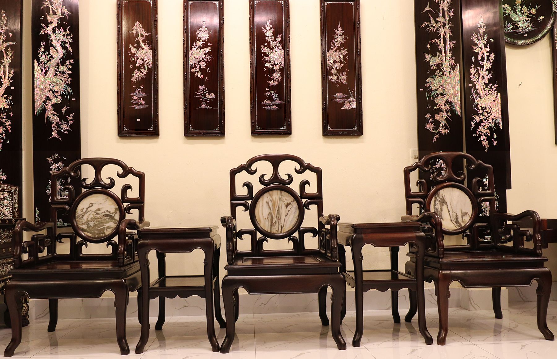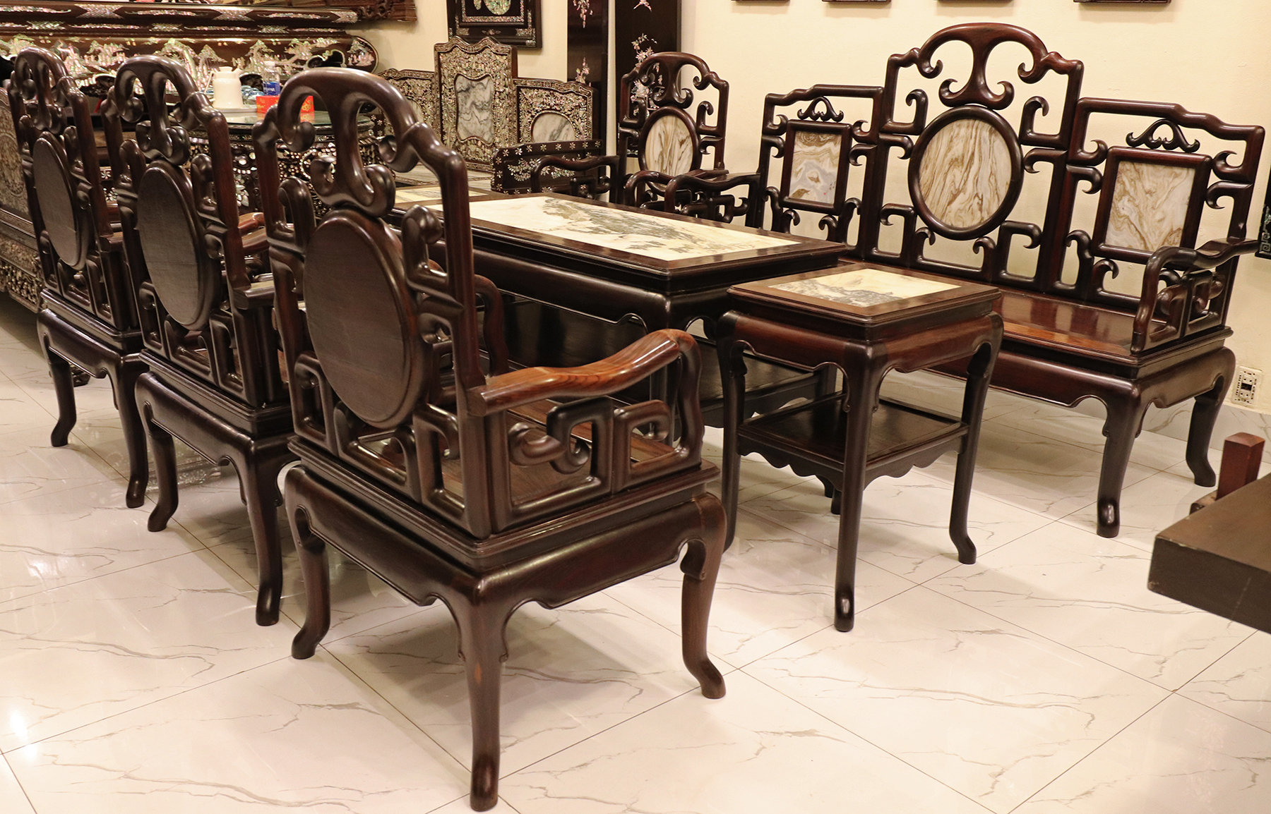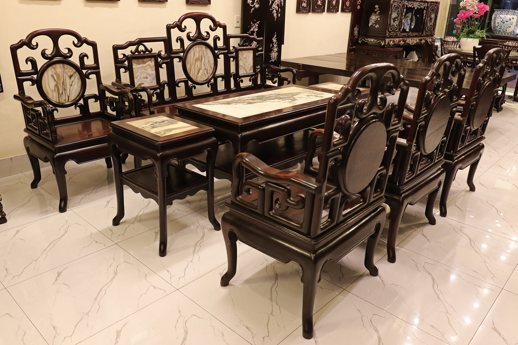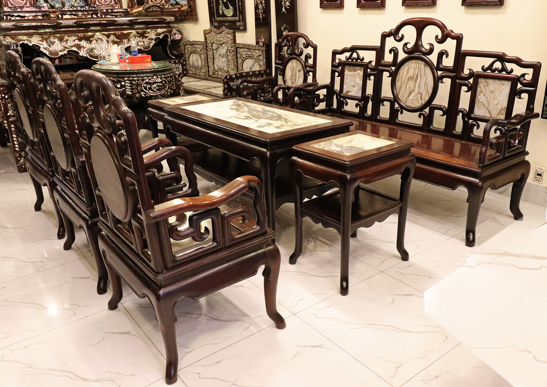 - Bàn ghế Louis, đôn trống gỗ trắc, bộ bàn ăn cẩn ốc, bàn ghế phương kỷ, bàn trung đường cẩn ốc xà cừ