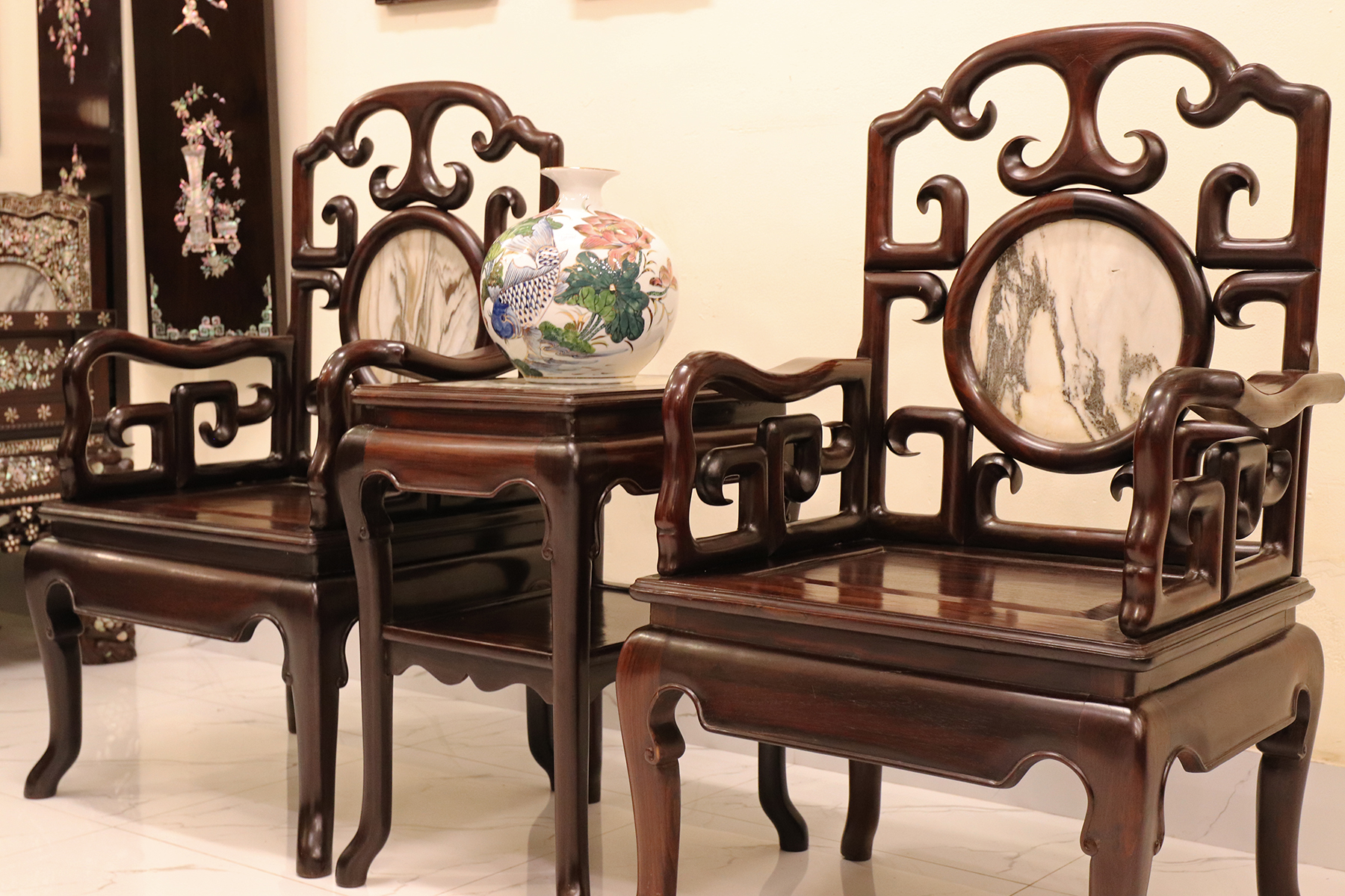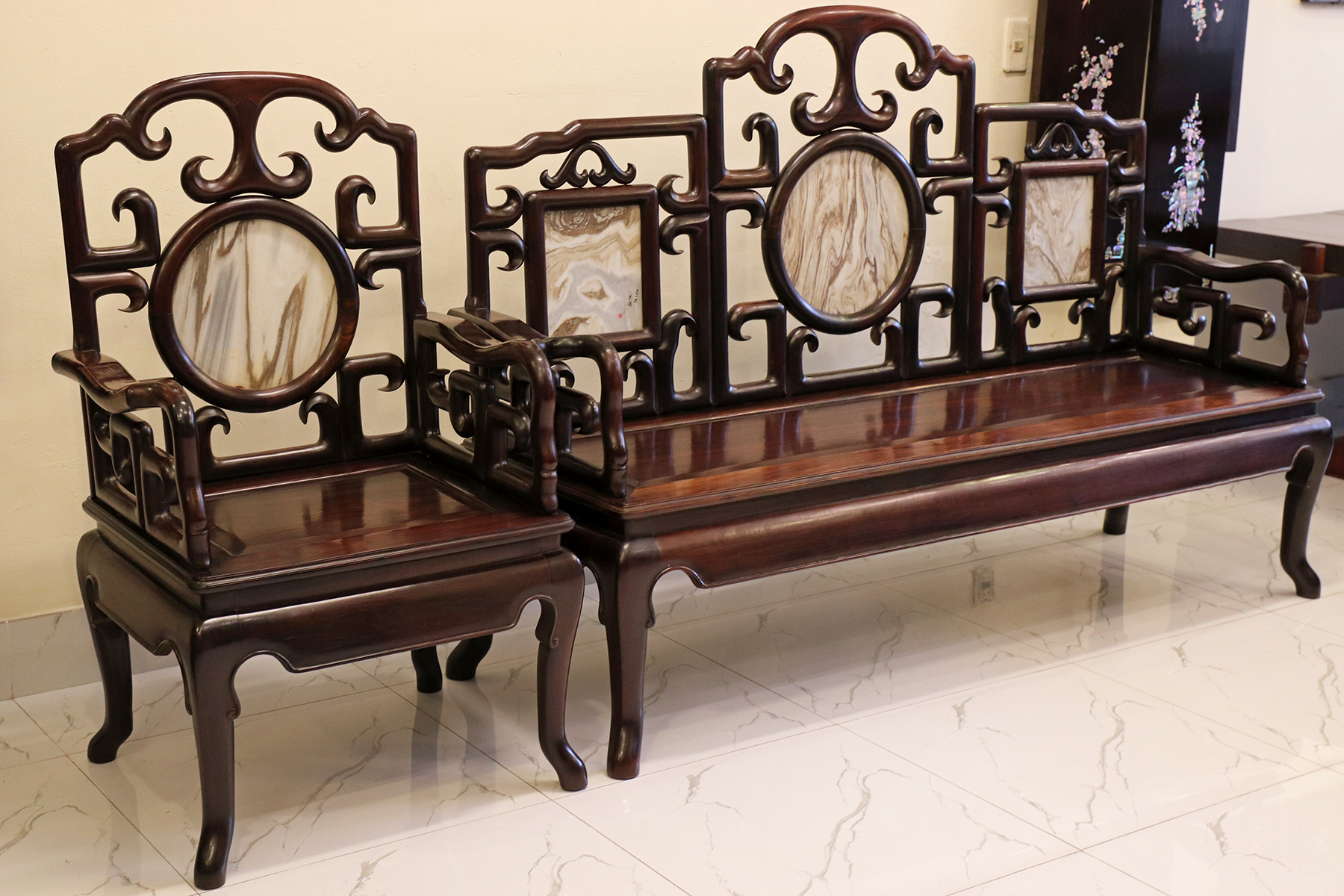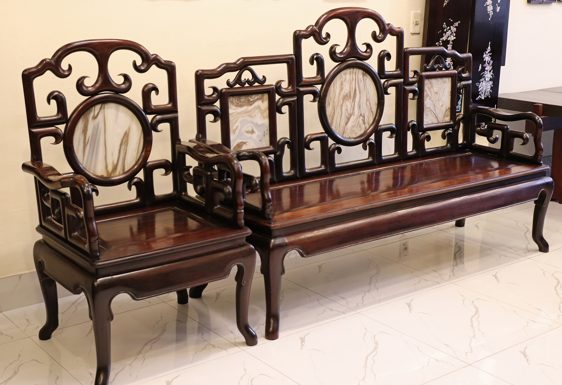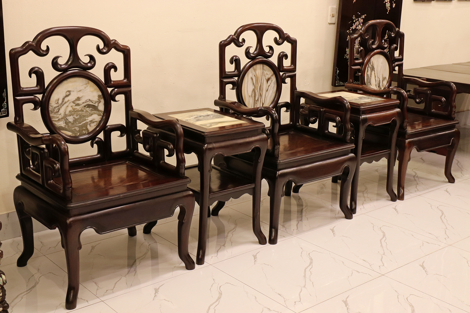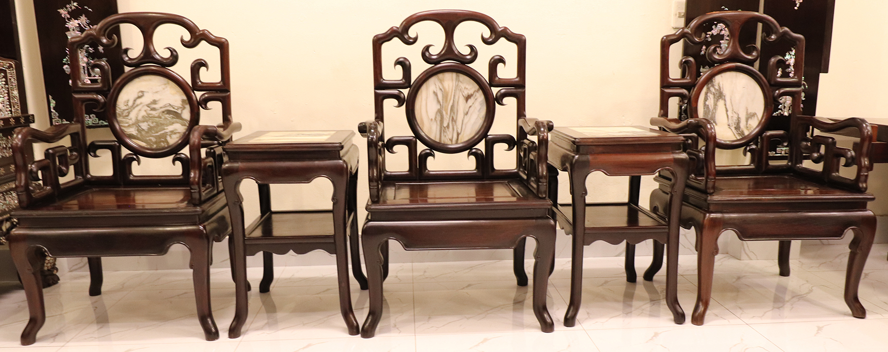- Bàn ghế Louis, đôn trống gỗ trắc, bộ bàn ăn cẩn ốc, bàn ghế phương kỷ, bàn trung đường cẩn ốc xà cừ