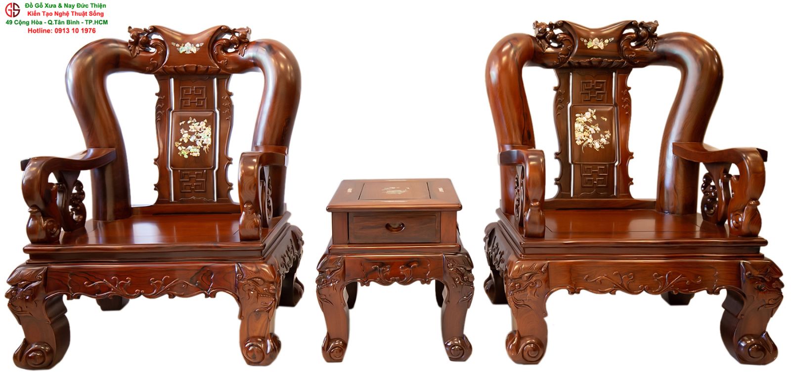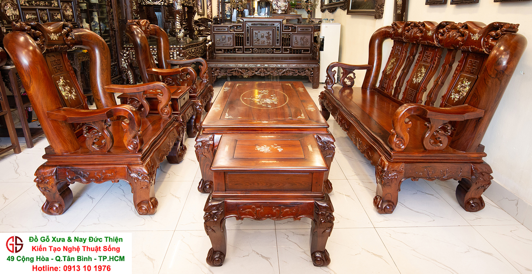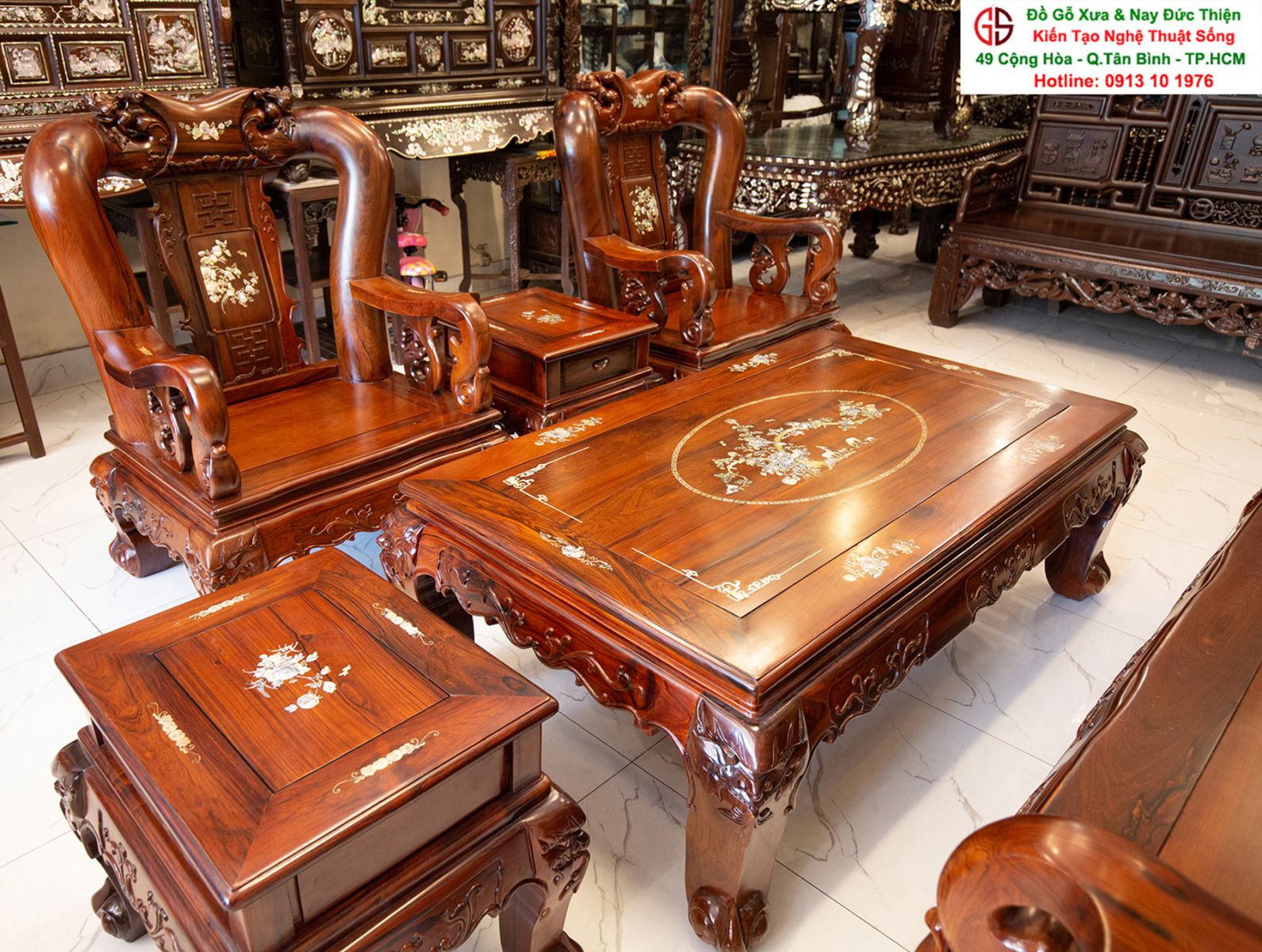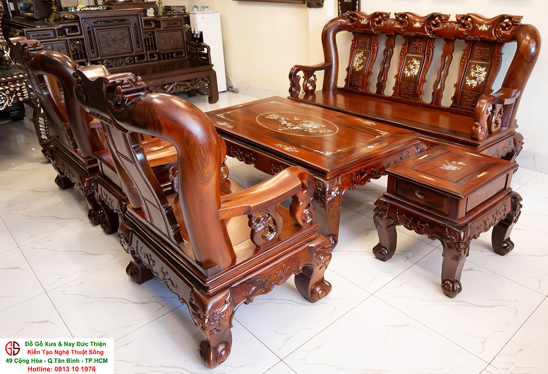 - Bàn ghế Louis, đôn trống gỗ trắc, bộ bàn ăn cẩn ốc, bàn ghế phương kỷ, bàn trung đường cẩn ốc xà cừ