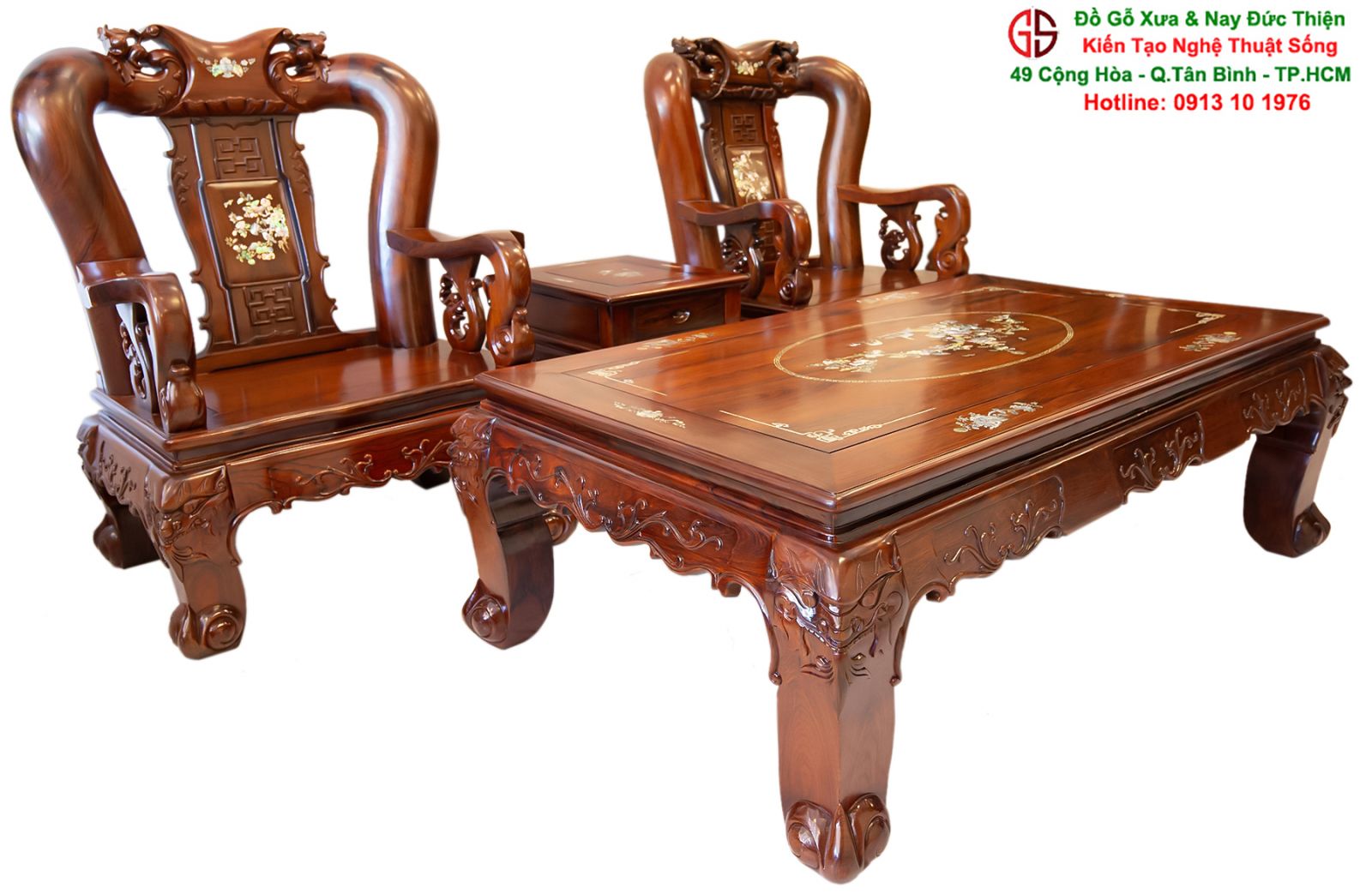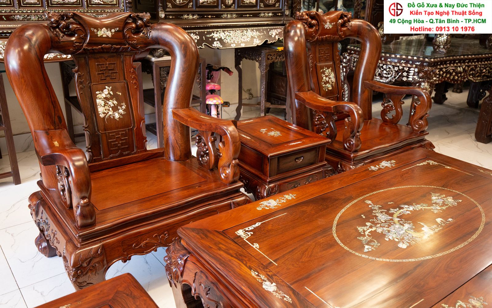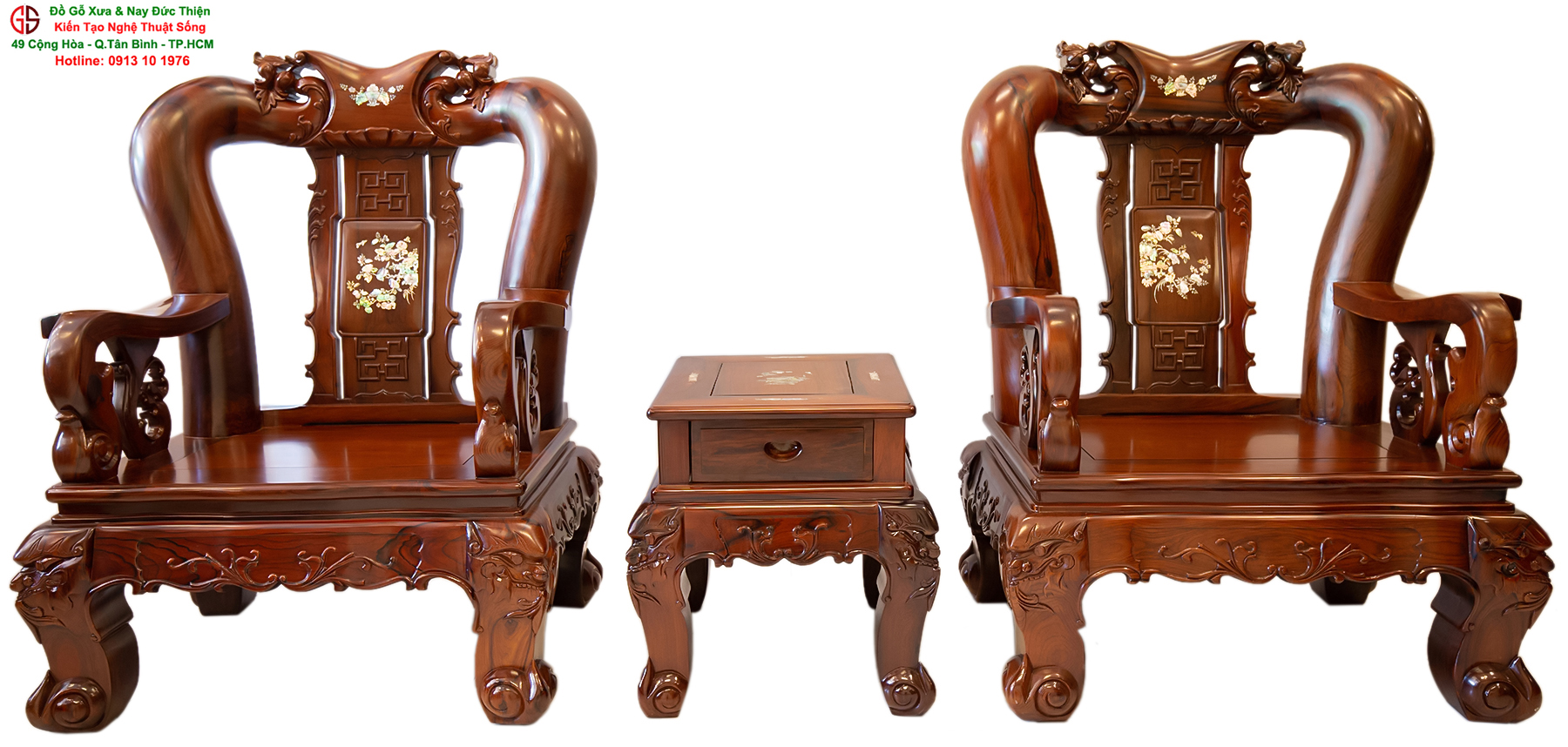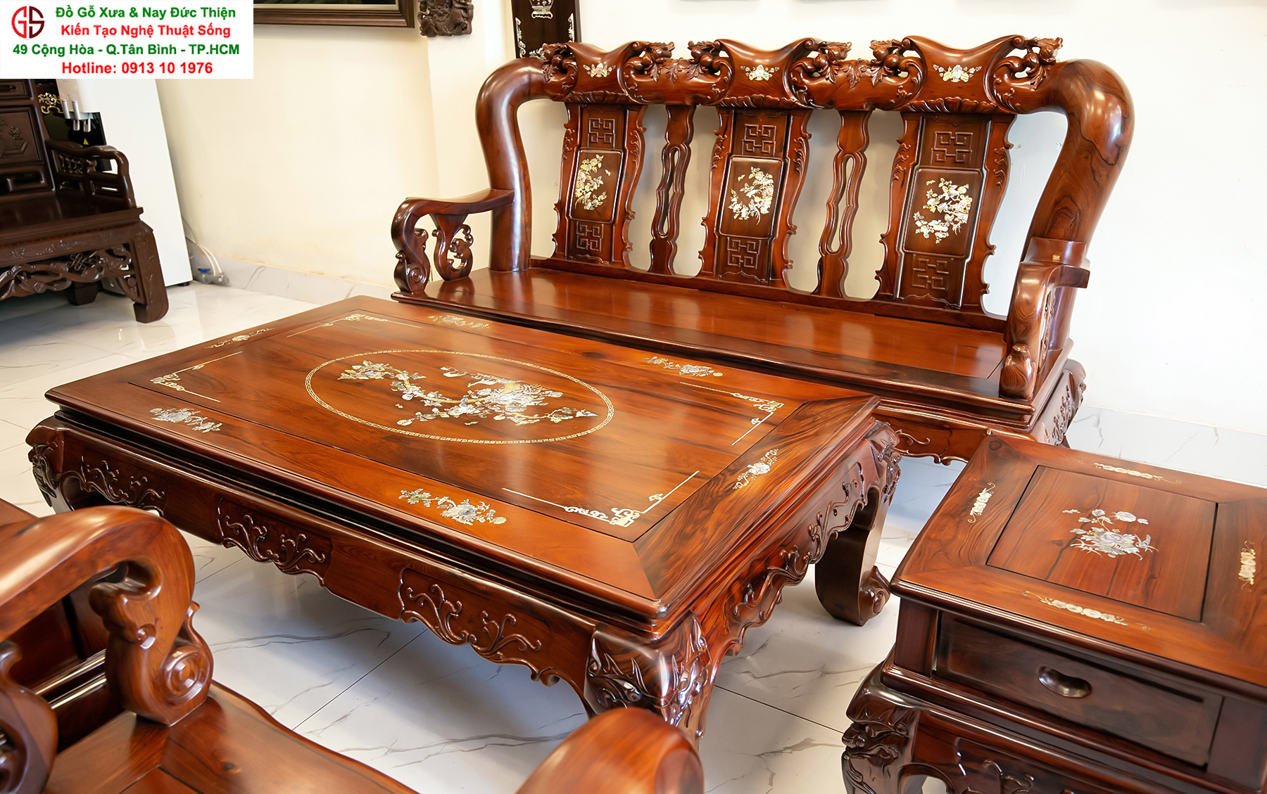 - Bàn ghế Louis, đôn trống gỗ trắc, bộ bàn ăn cẩn ốc, bàn ghế phương kỷ, bàn trung đường cẩn ốc xà cừ