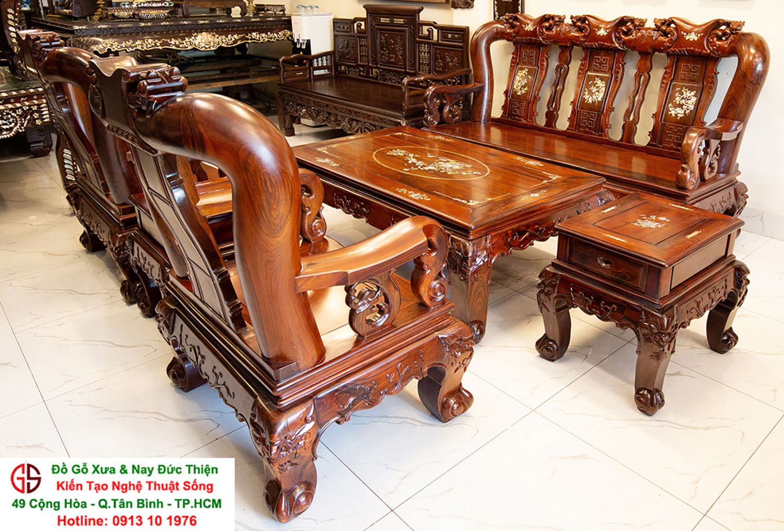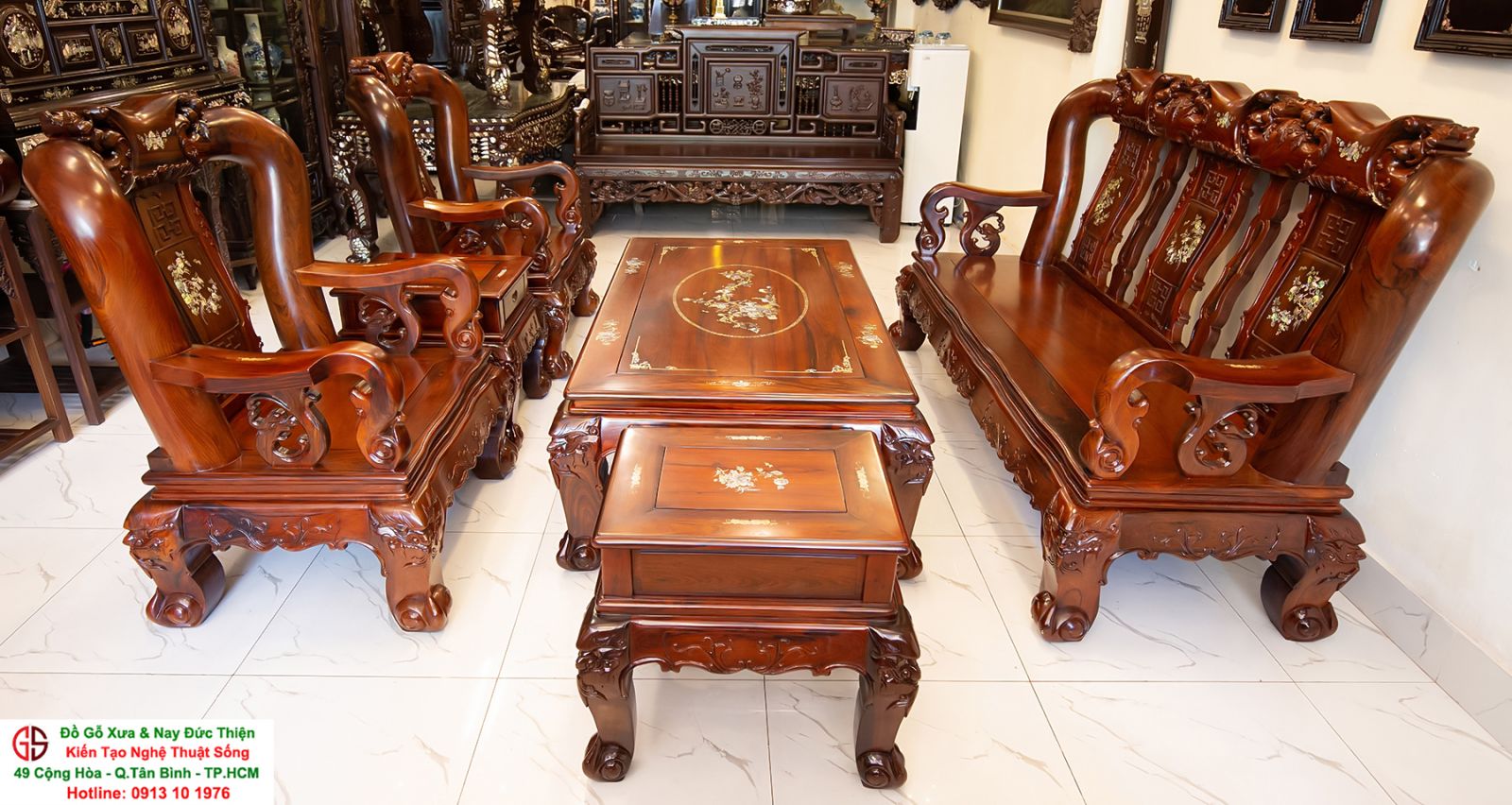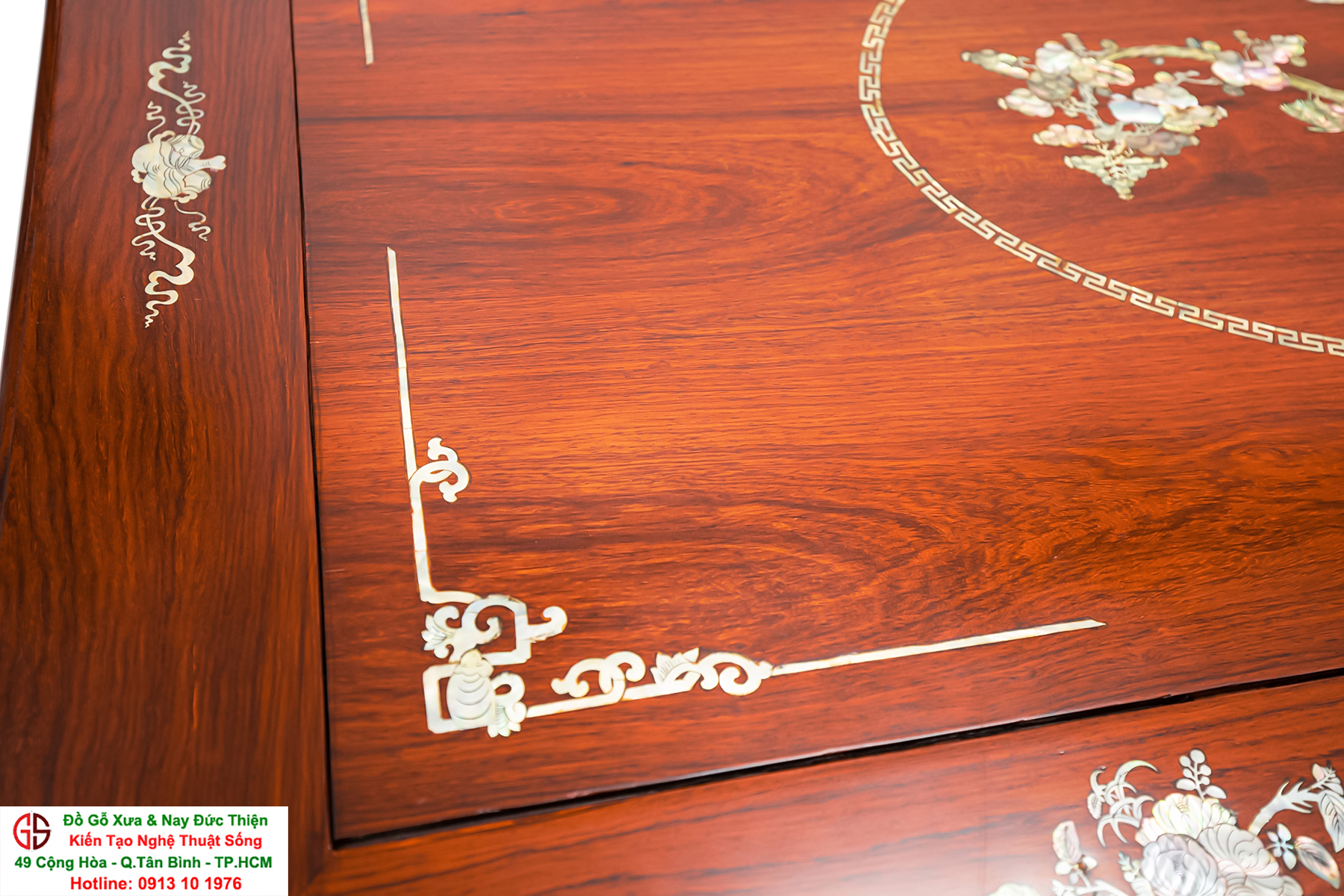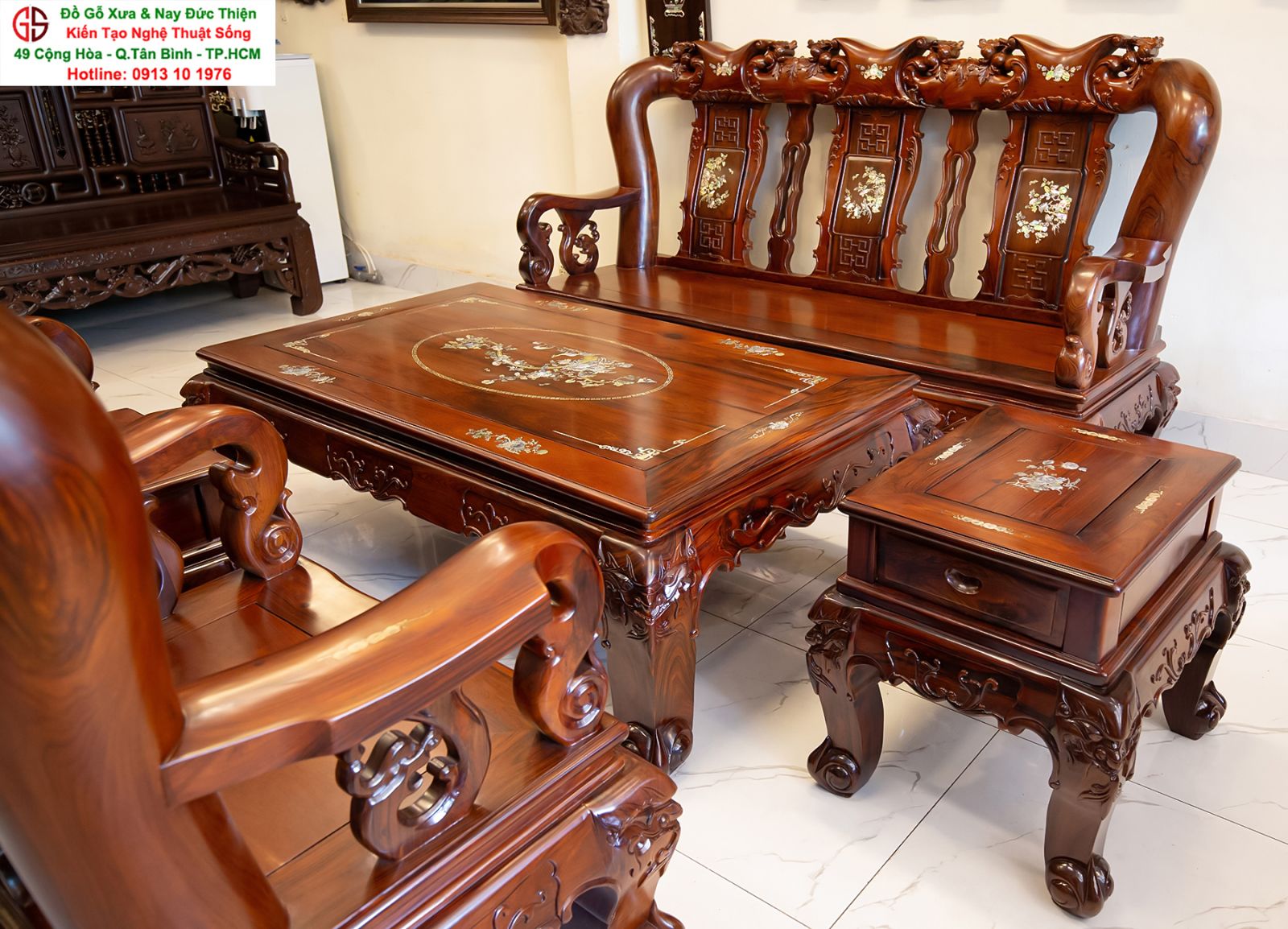 - Bàn ghế Louis, đôn trống gỗ trắc, bộ bàn ăn cẩn ốc, bàn ghế phương kỷ, bàn trung đường cẩn ốc xà cừ