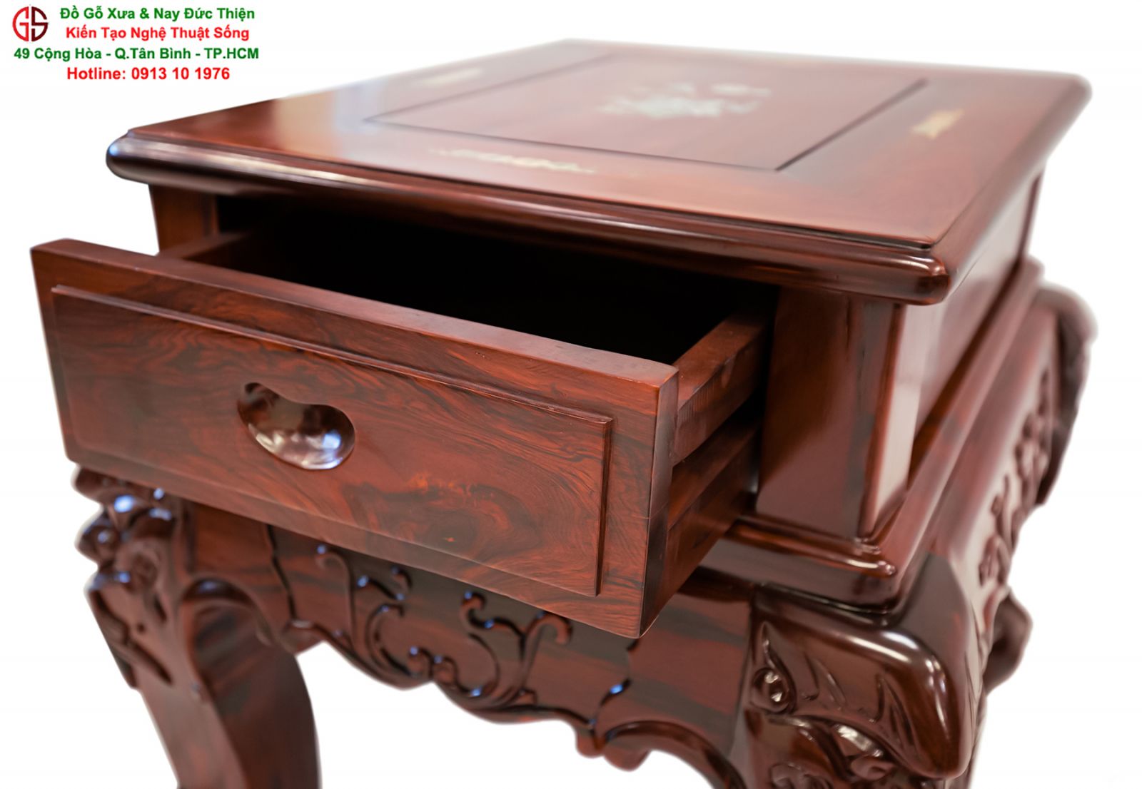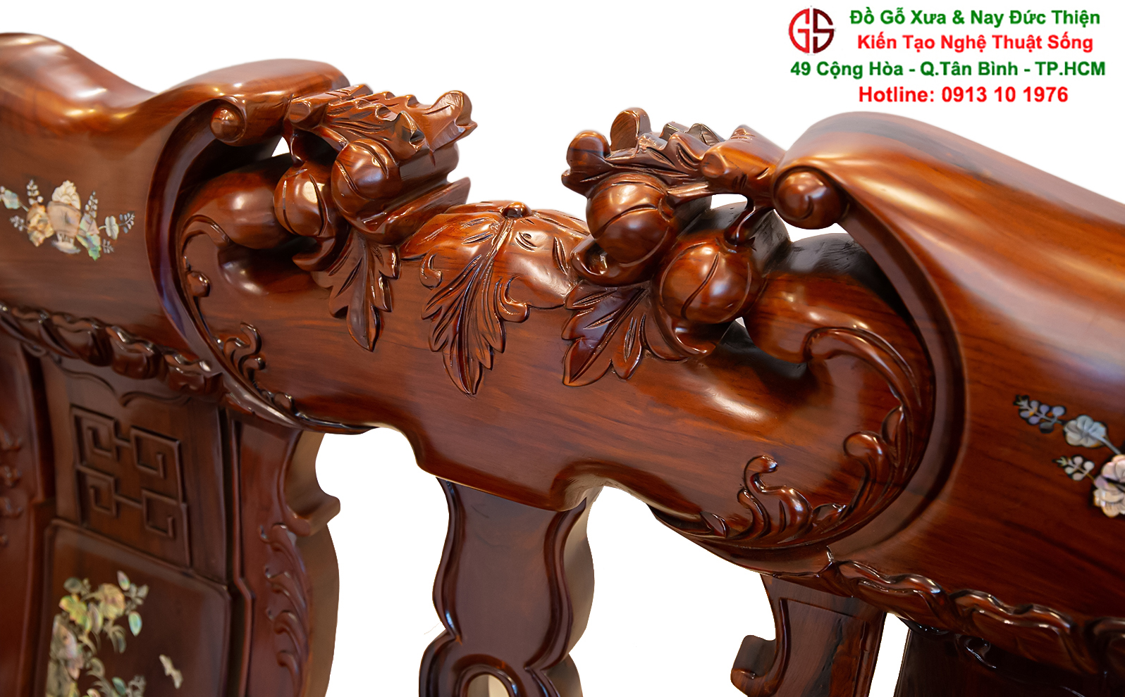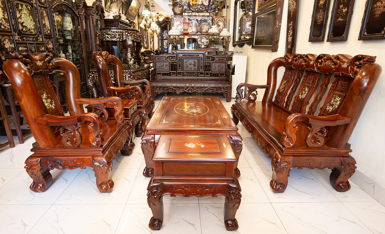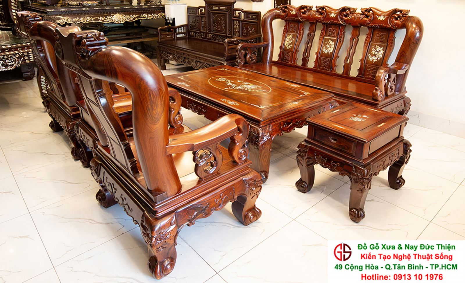 - Bàn ghế Louis, đôn trống gỗ trắc, bộ bàn ăn cẩn ốc, bàn ghế phương kỷ, bàn trung đường cẩn ốc xà cừ