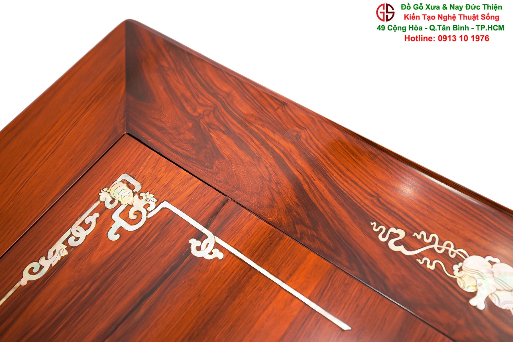 -Chất liệu: Tất cả đều được làm từ gỗ cẩm lai 100%, gỗ lục lõi, không chắp ghép và không bám rác ( bảo hành Gỗ Cẩm Lai Ta).