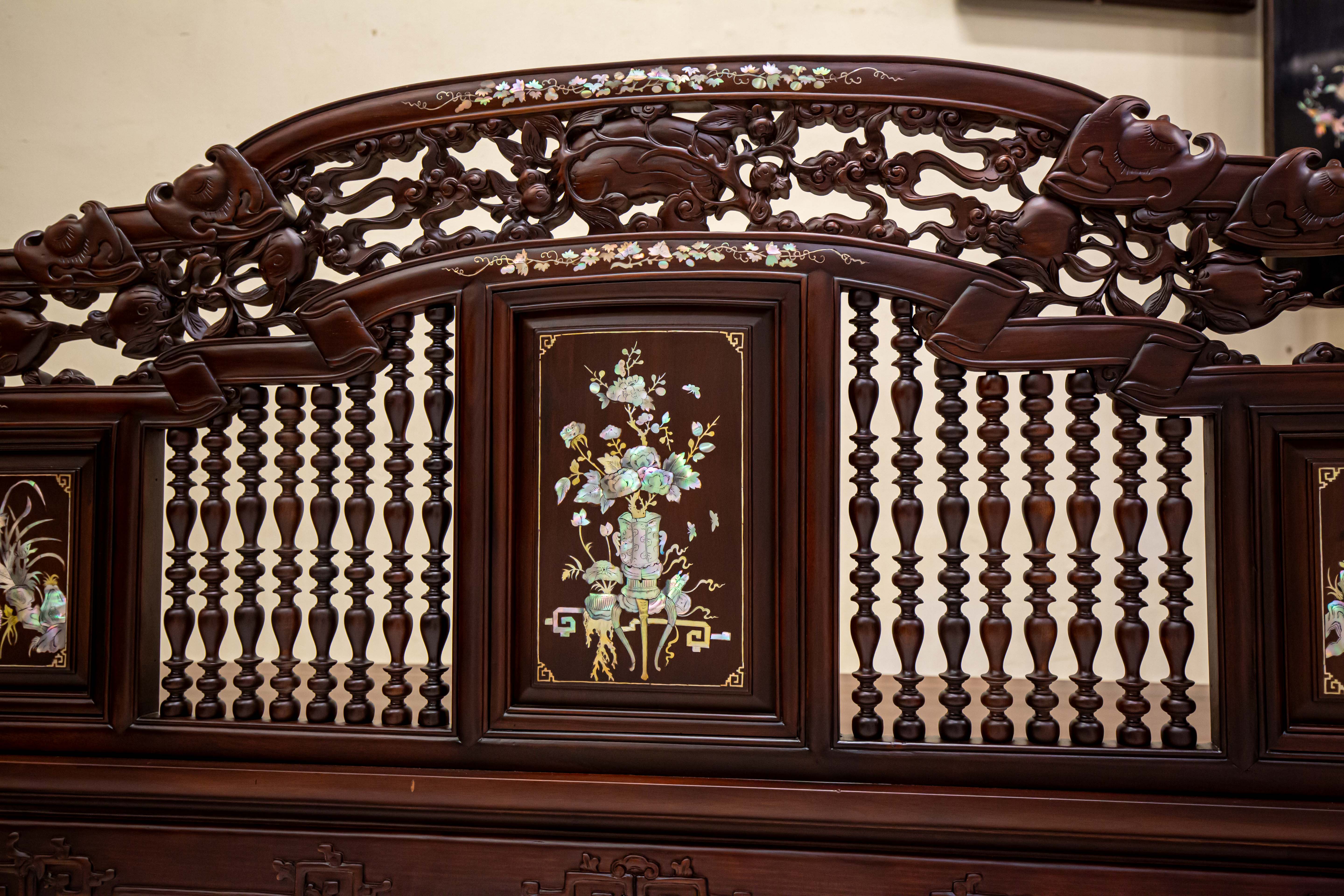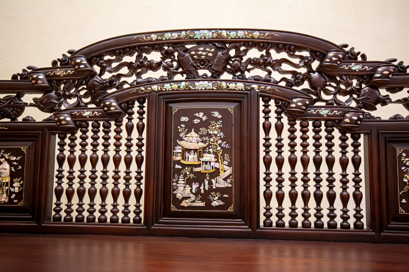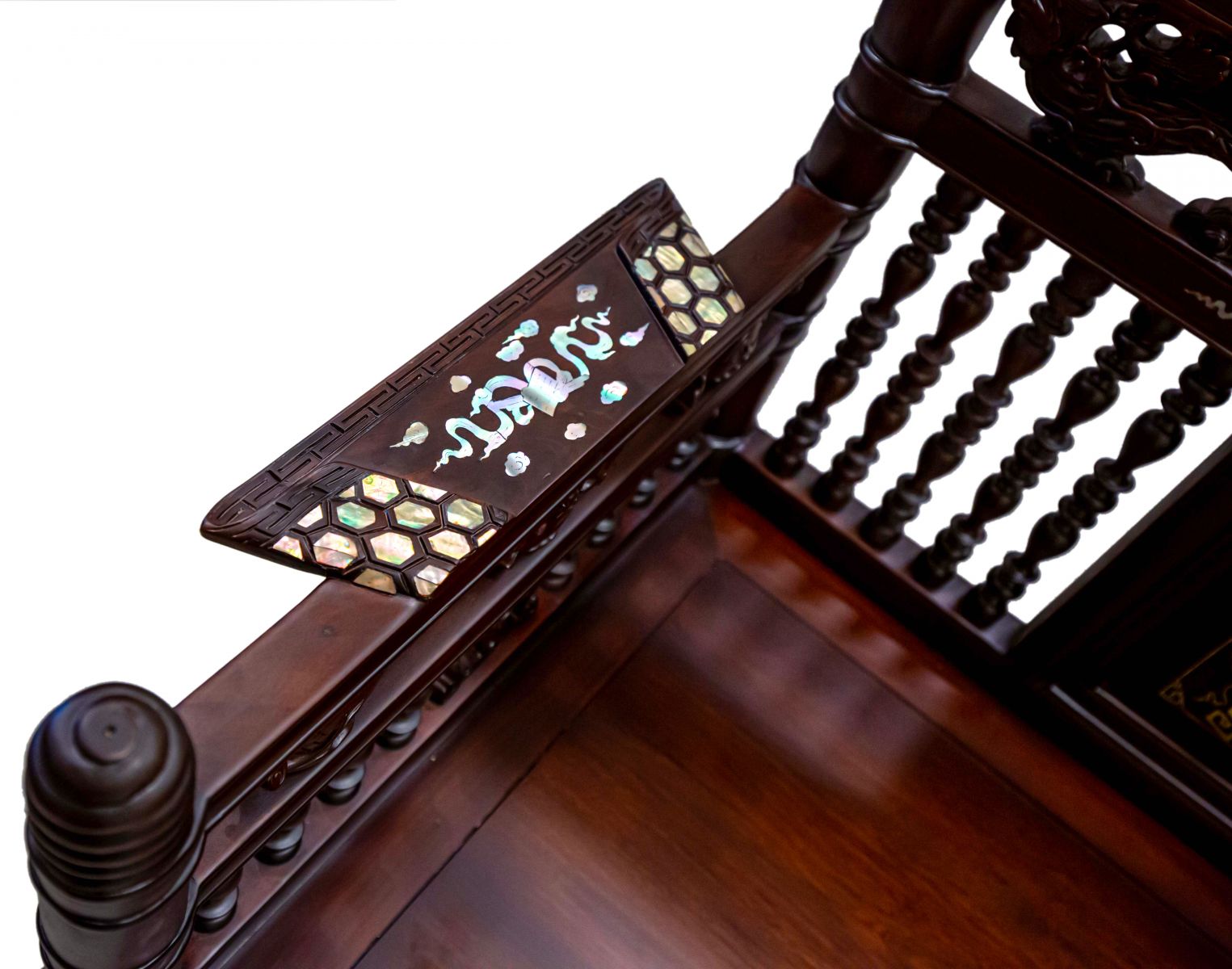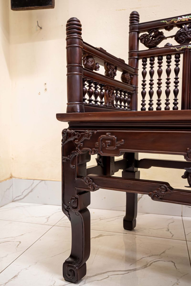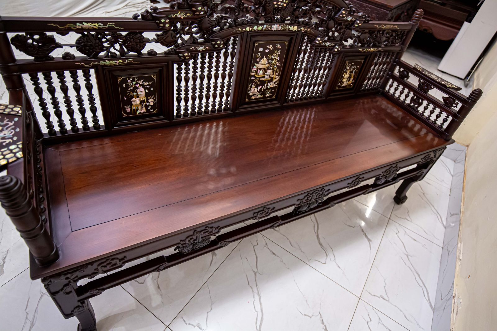 Bộ trường kỷ Huế xịn khảm nổi là dòng sản phẩm cao cấp, thể hiện đỉnh cao của nghệ thuật chạm khảm truyền thống. Mỗi chi tiết được chạm trổ tinh xảo, khảm nổi bằng ốc xà cừ sắc sảo và nổi bật. Gỗ quý dày dặn, kiểu dáng bề thế, toát lên vẻ sang trọng, quyền quý chuẩn phong cách hoàng gia xưa